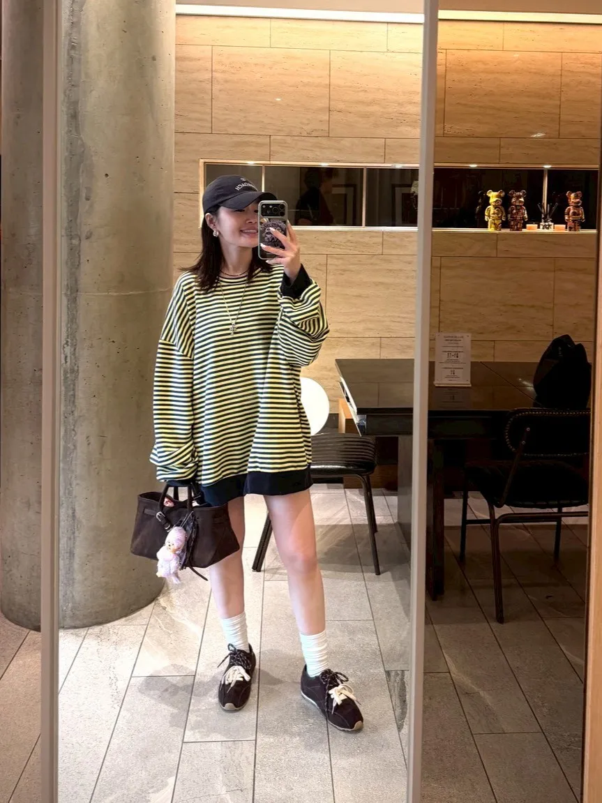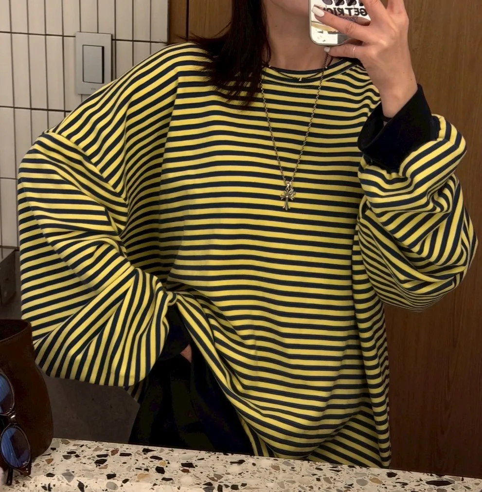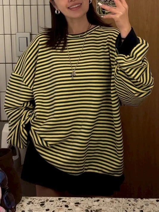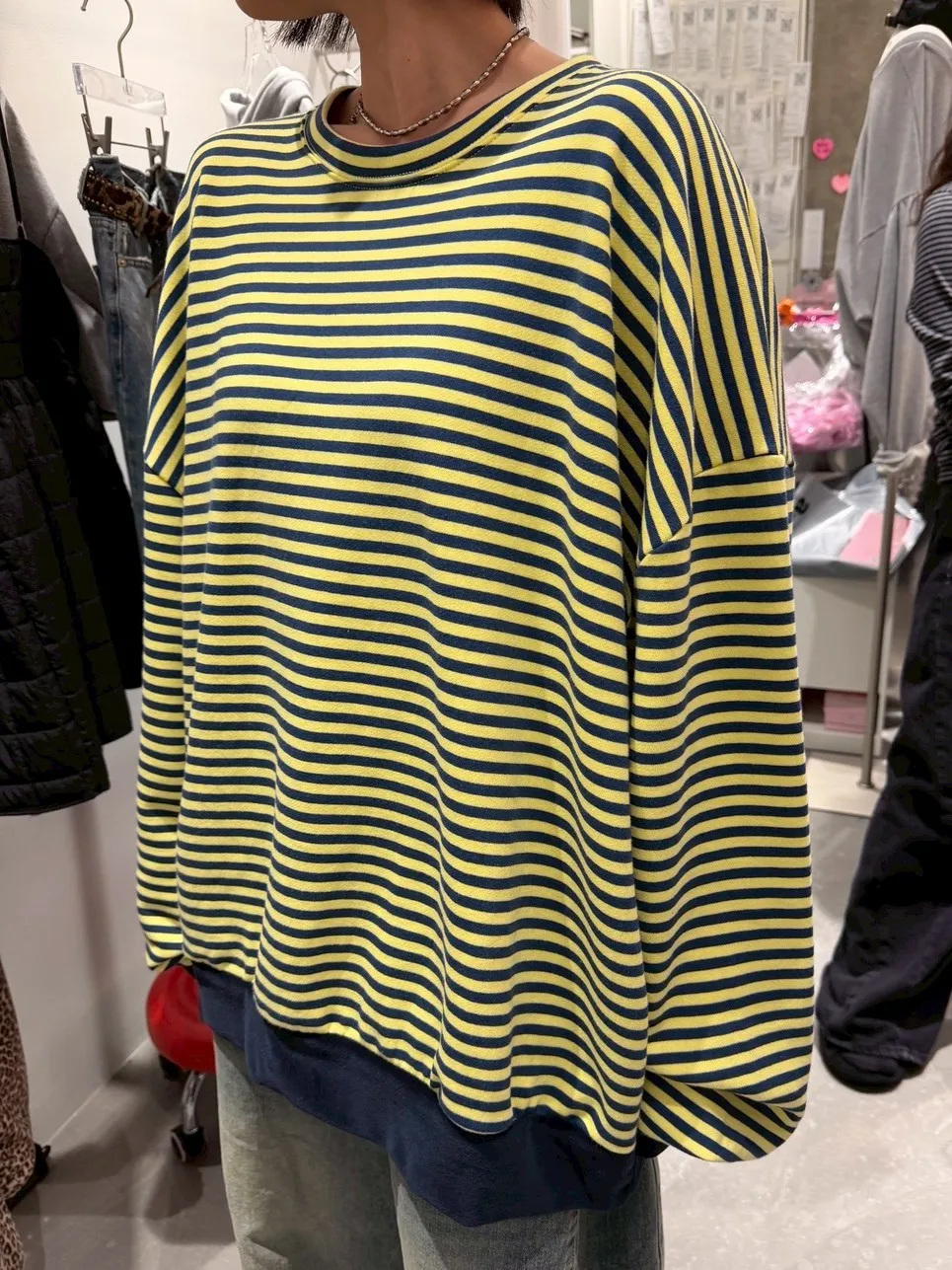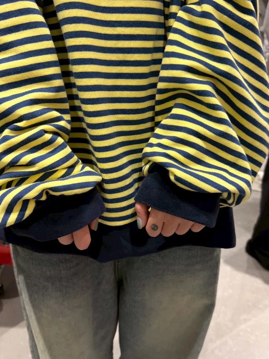 A10042 冬天的小清新~條紋絨面袖衛衣