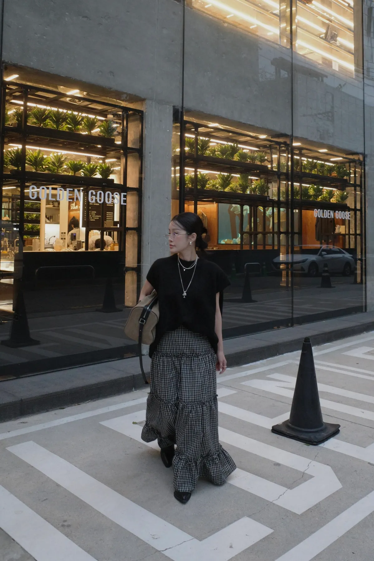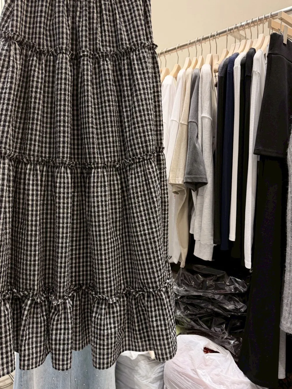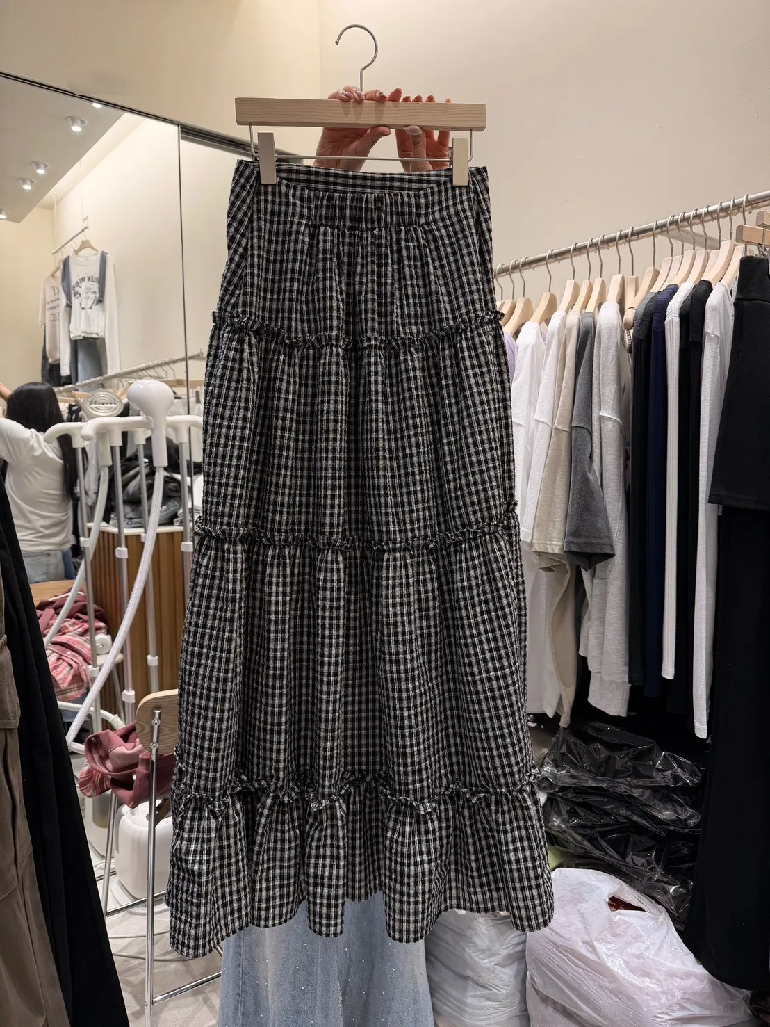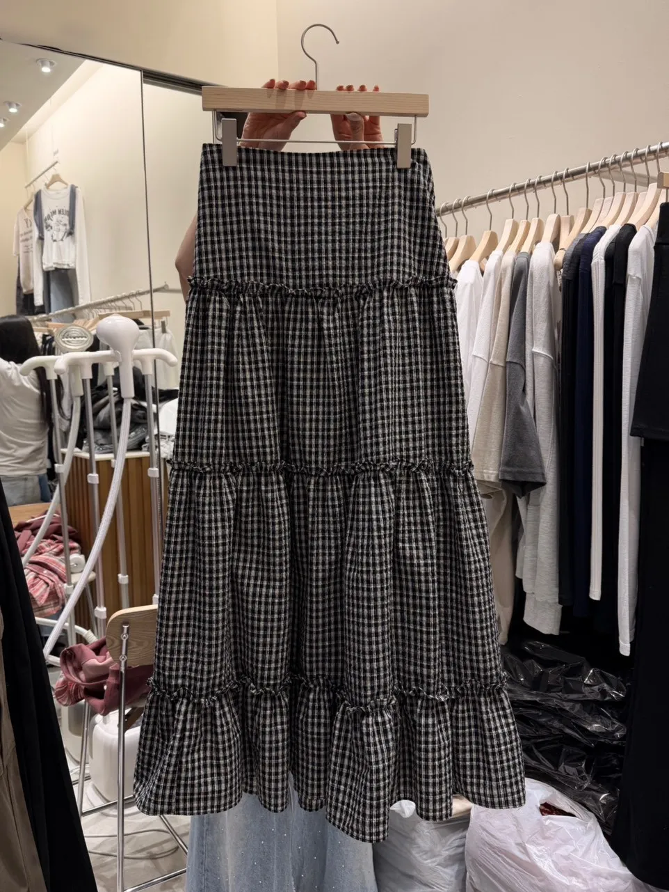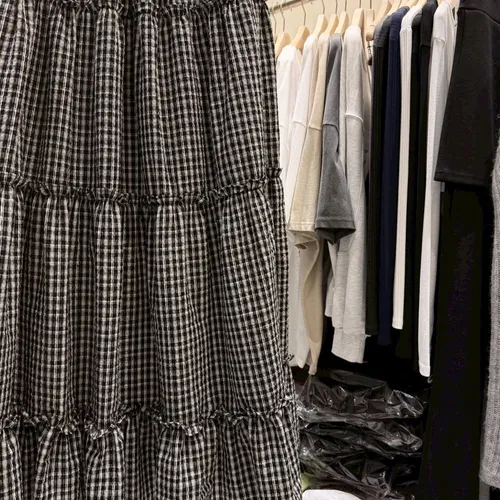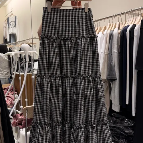A10055 代官山風格 質感紋理格子長裙