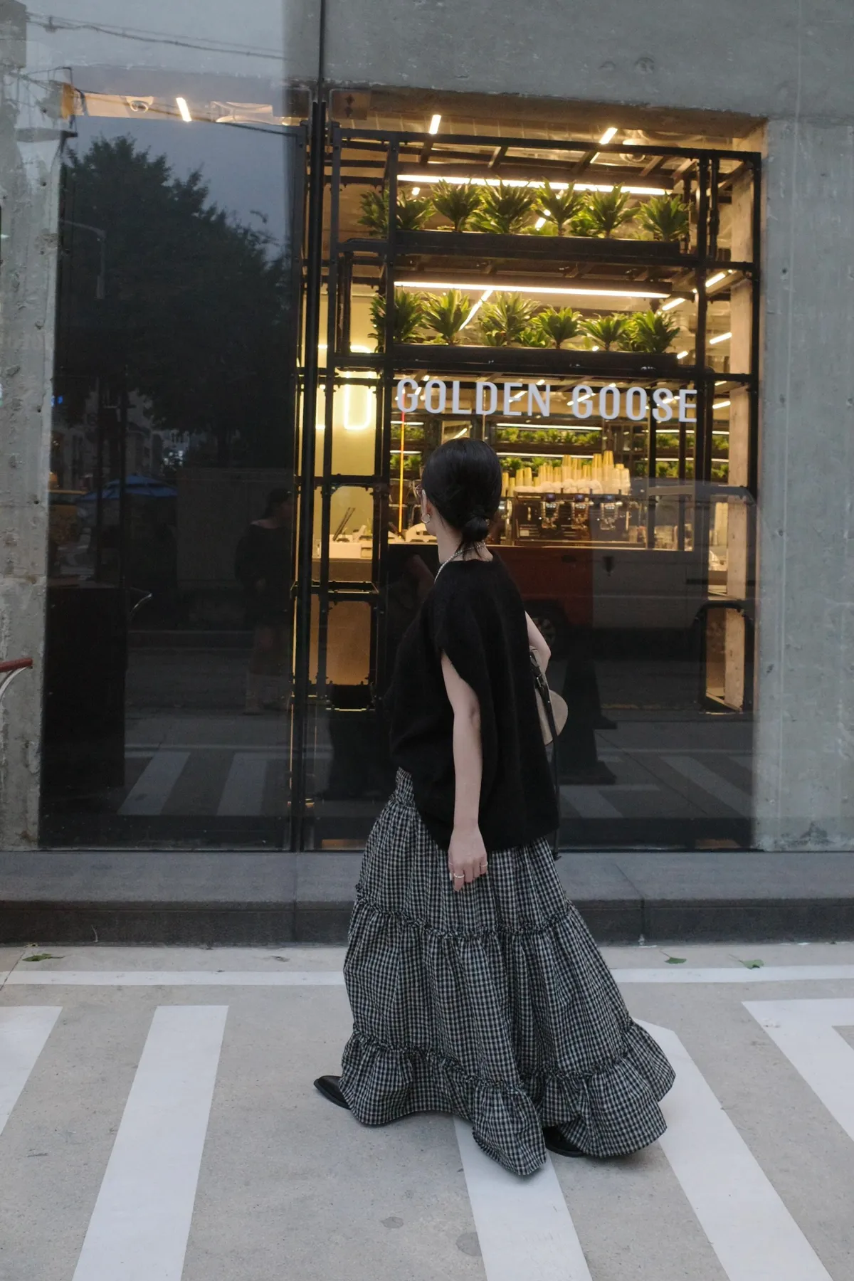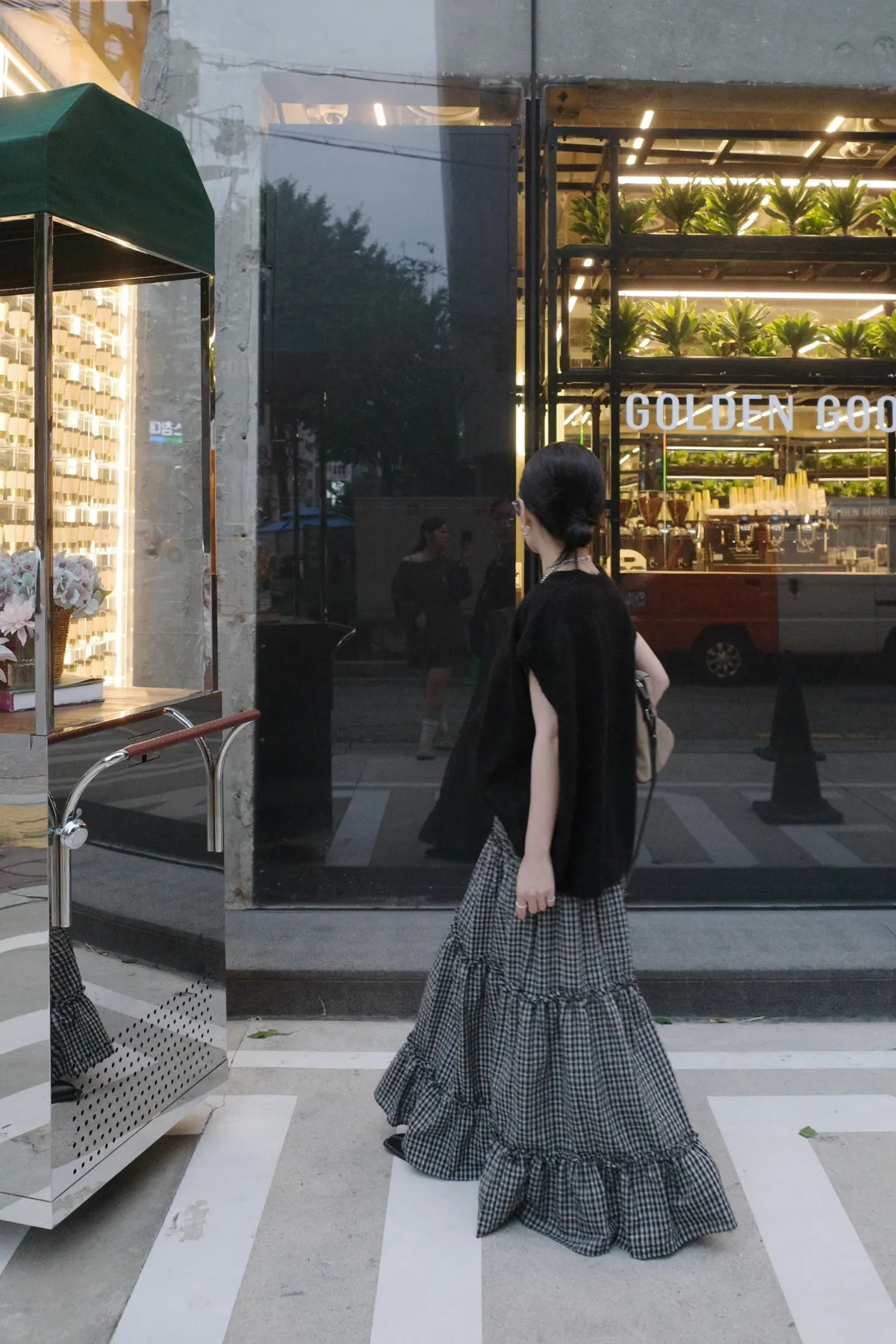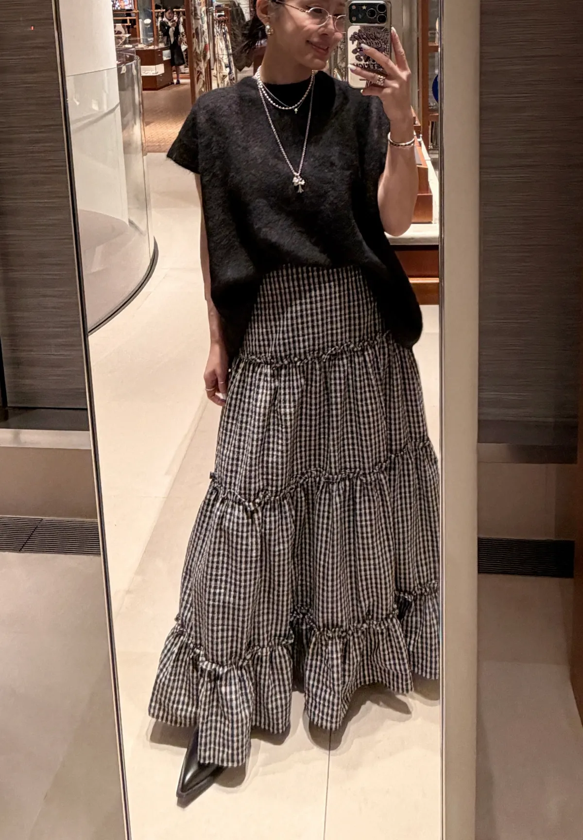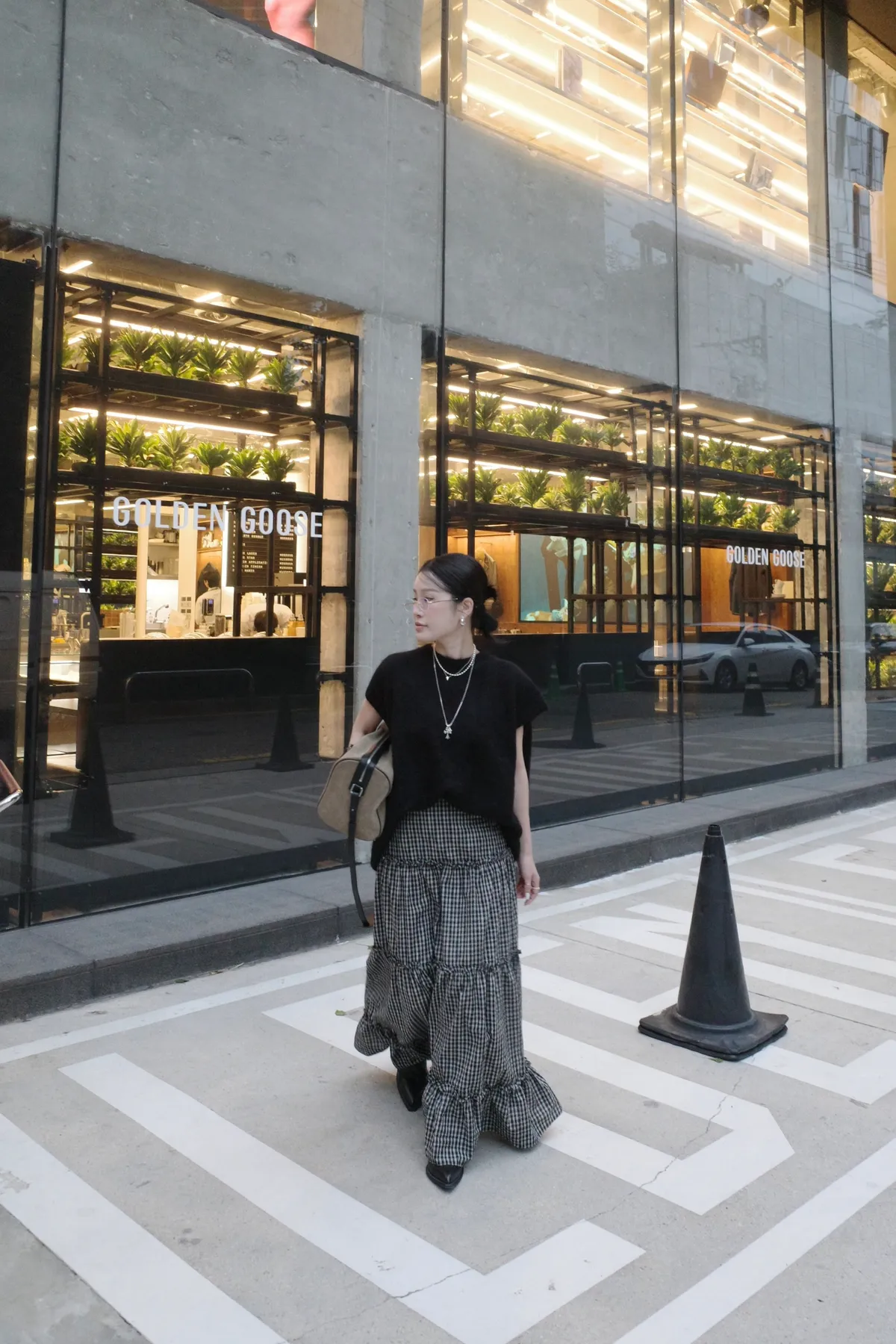 A10055 代官山風格 質感紋理格子長裙