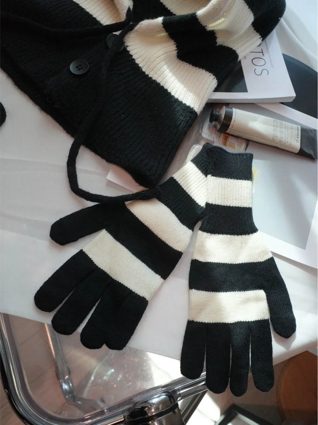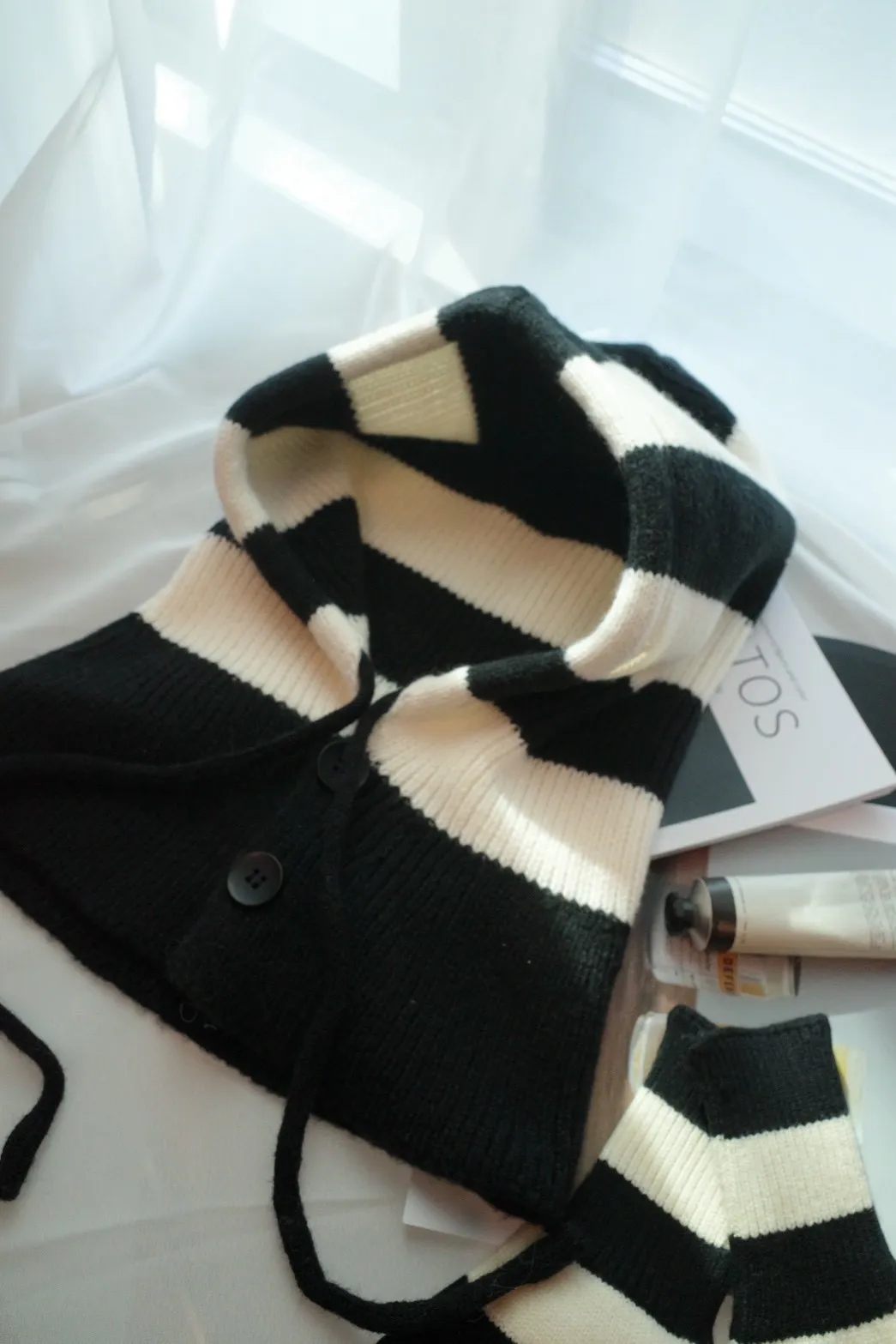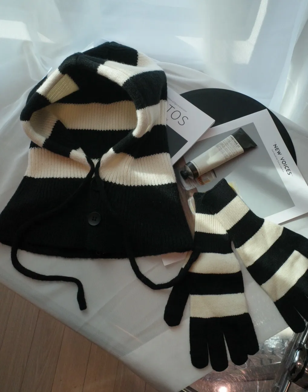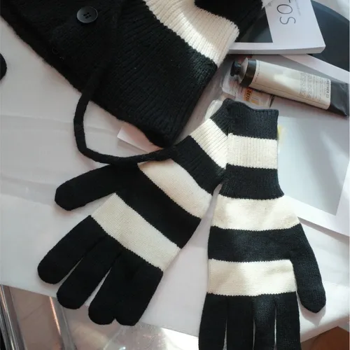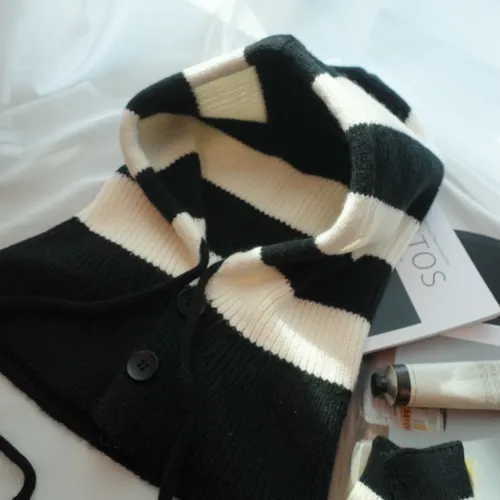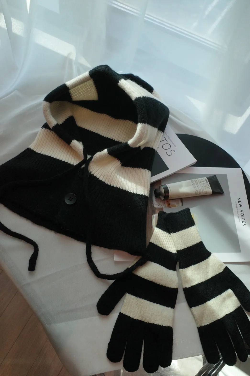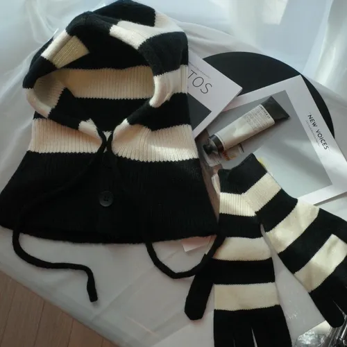 A11021 黑白條紋連帽脖圍+可觸控手套