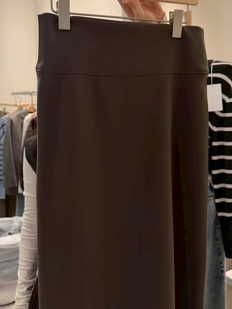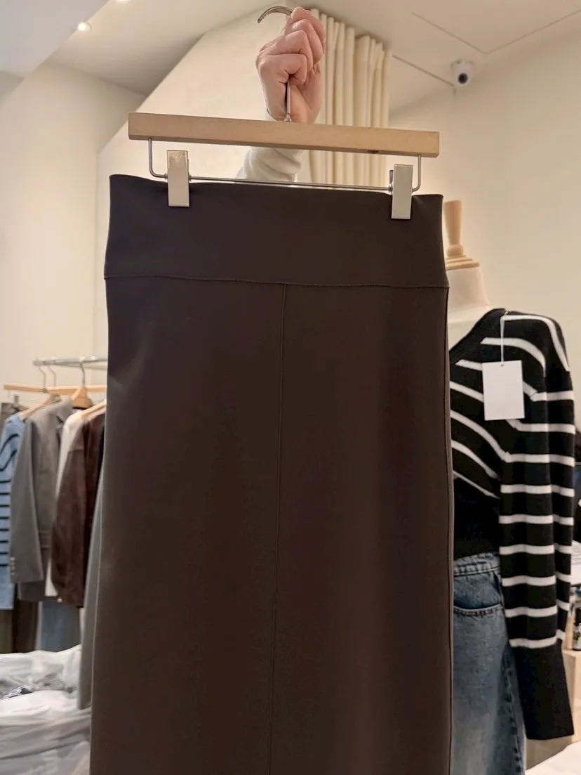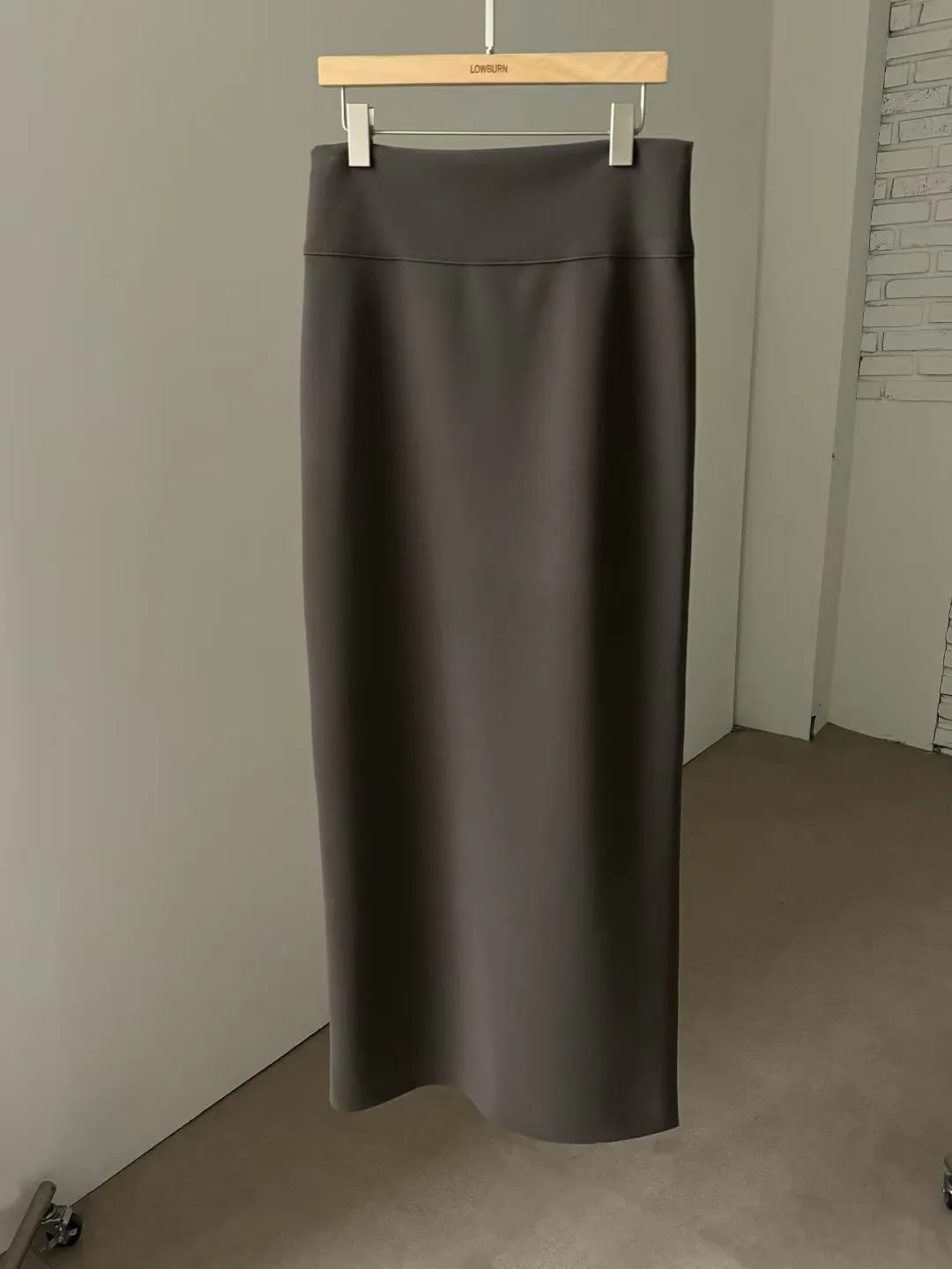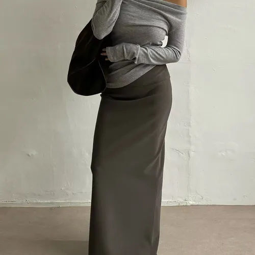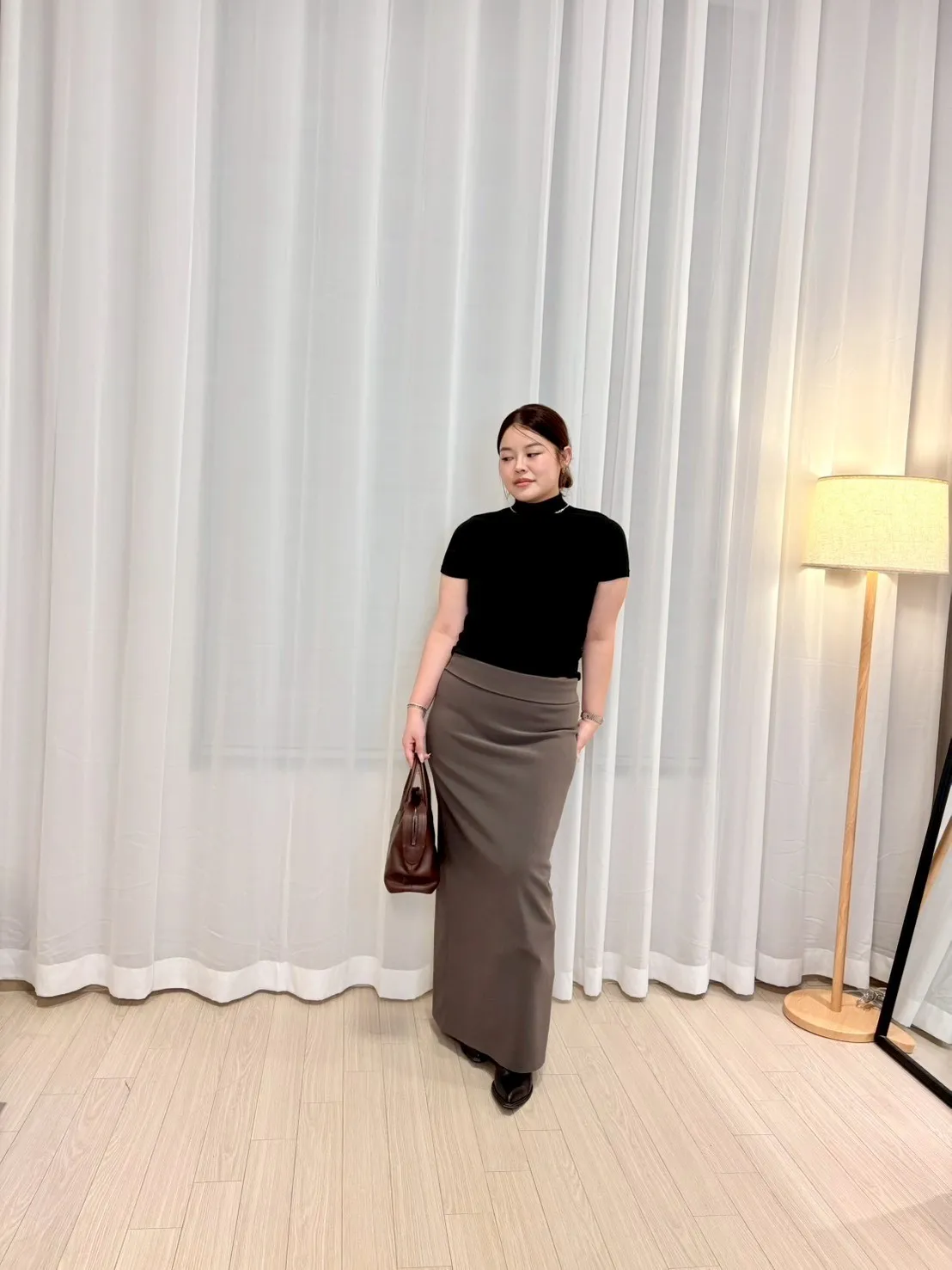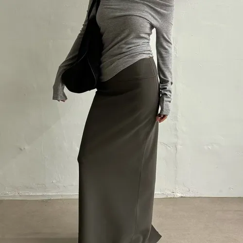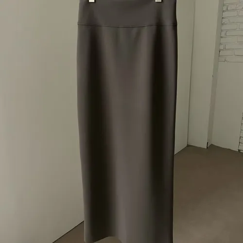 A11038 大象灰卡其綠剪裁彈性開衩裙