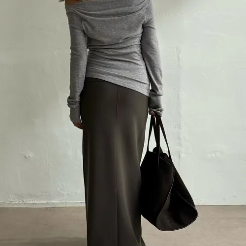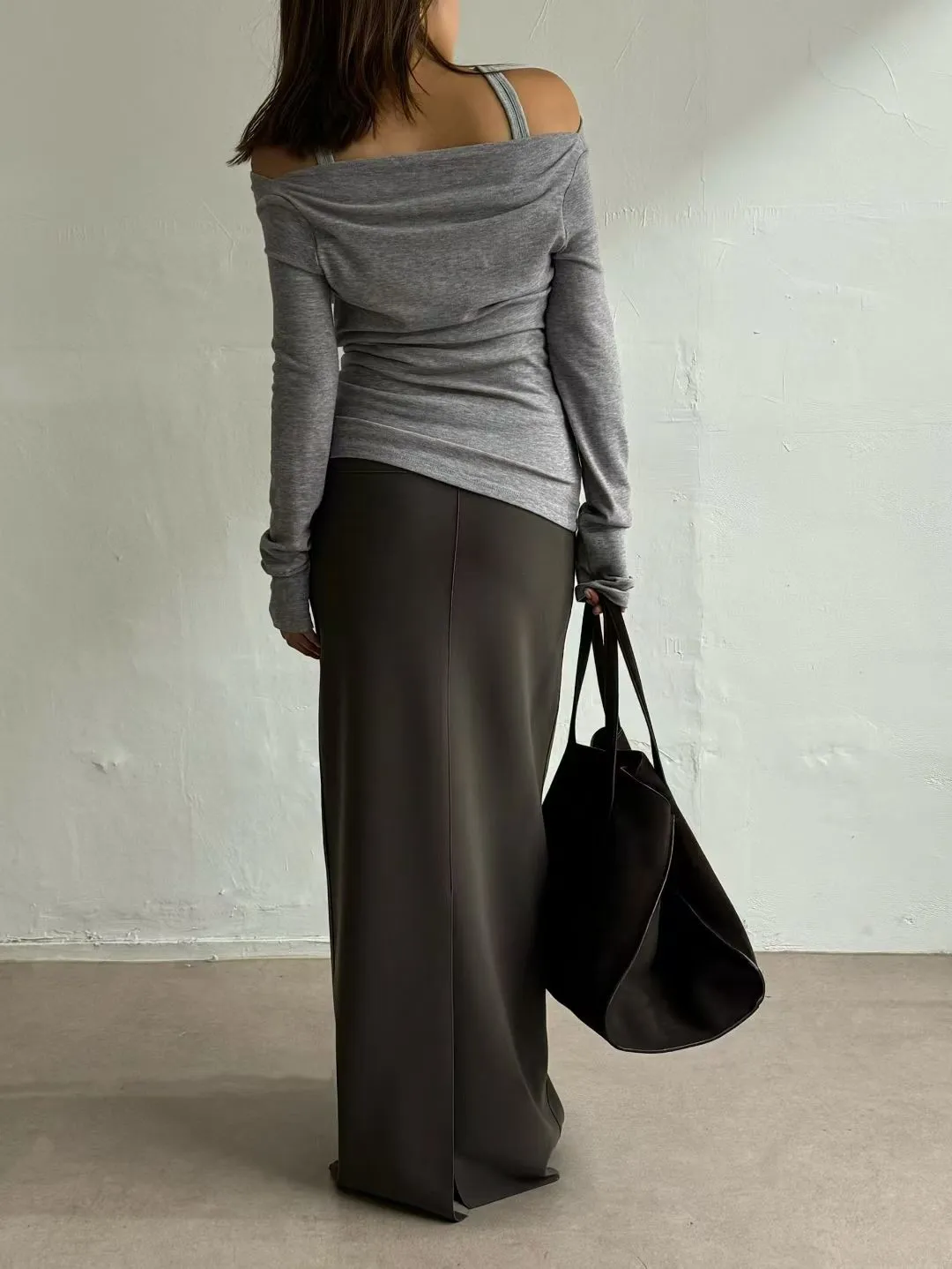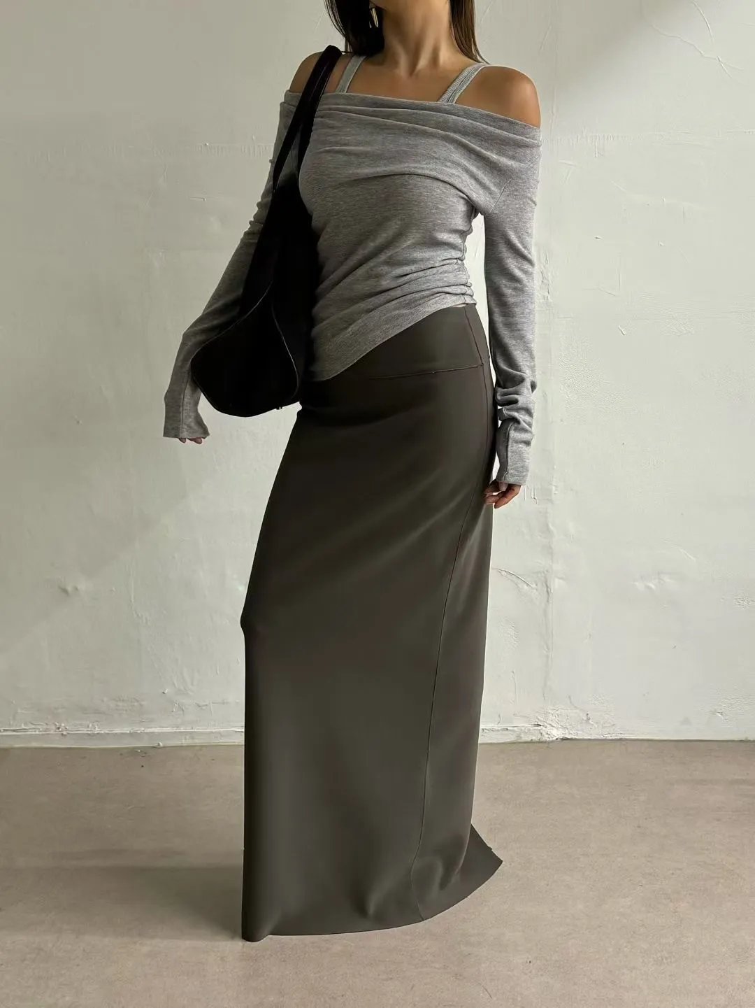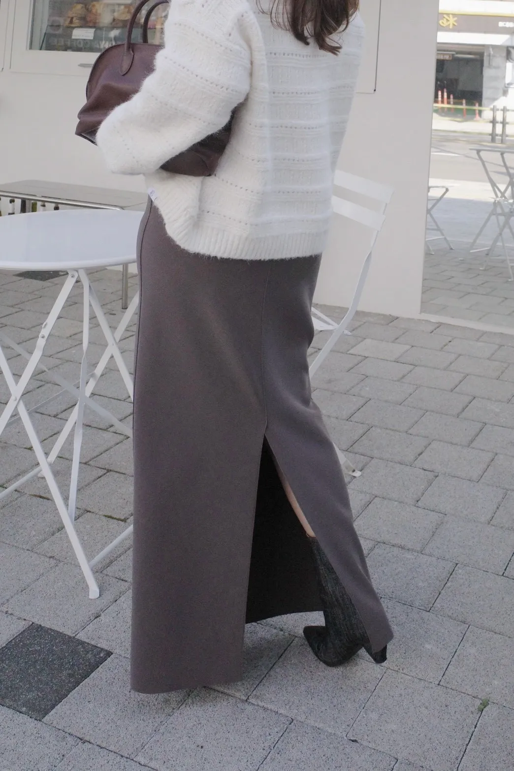 A11038 大象灰卡其綠剪裁彈性開衩裙