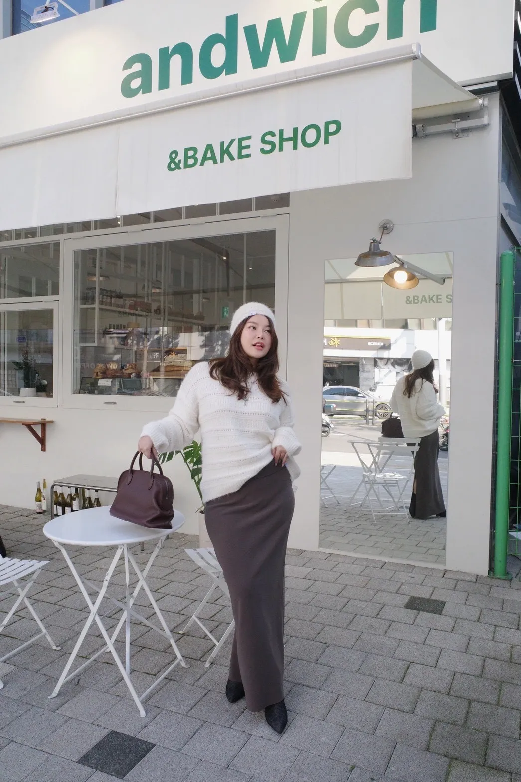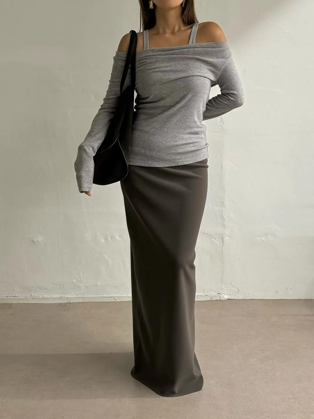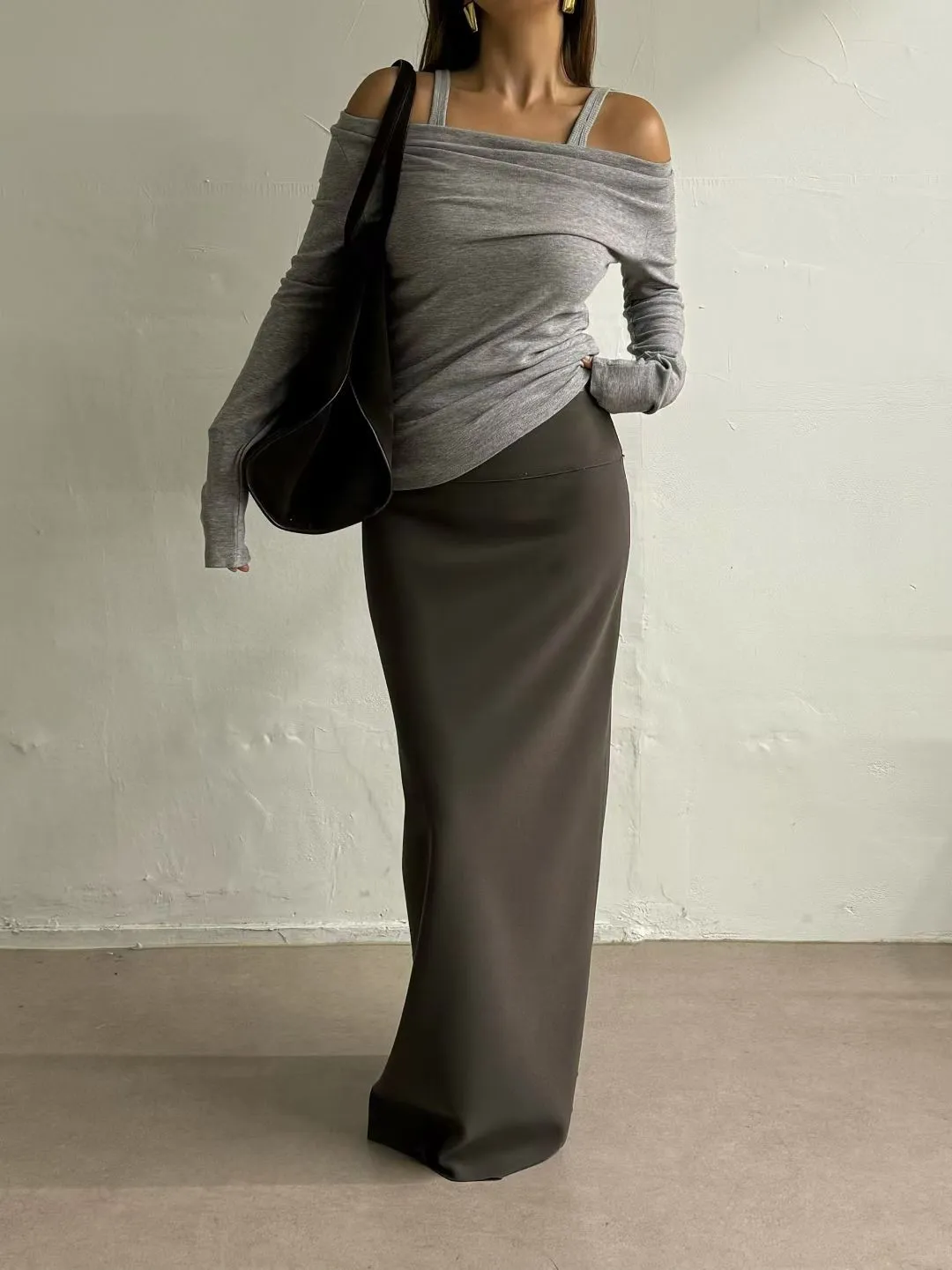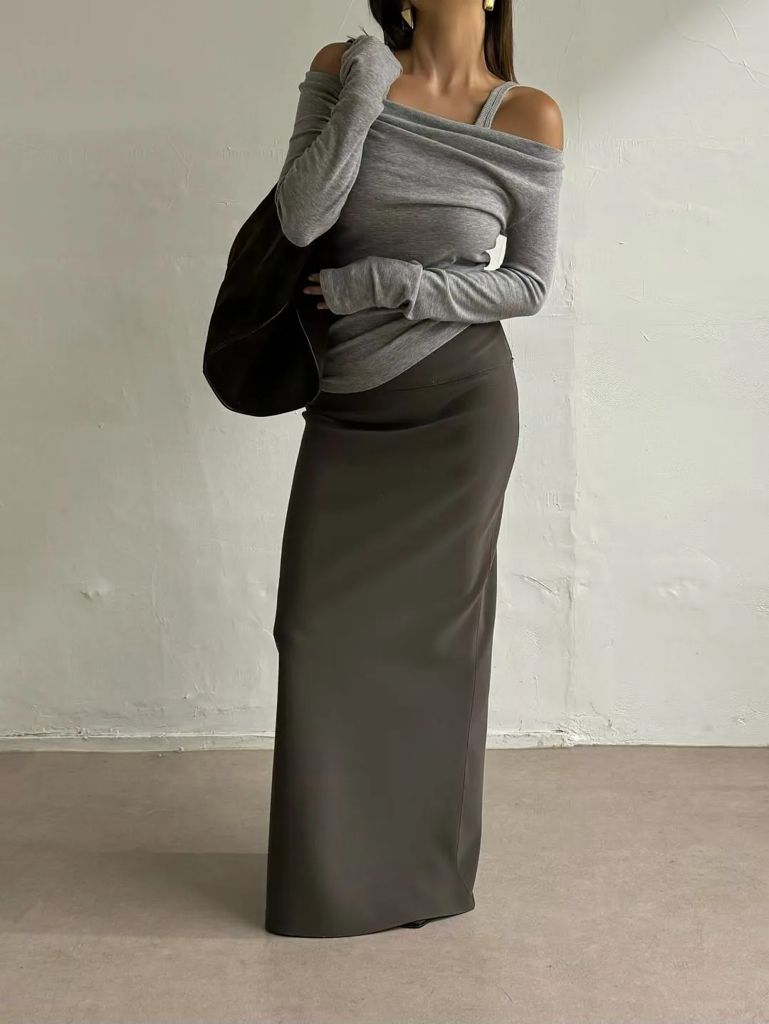 A11038 大象灰卡其綠剪裁彈性開衩裙