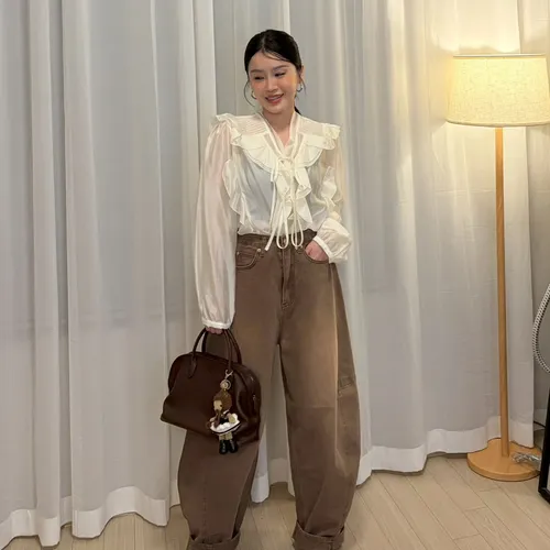A11053 天絲棉 浪漫唯美綁帶上衣
