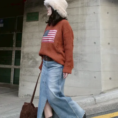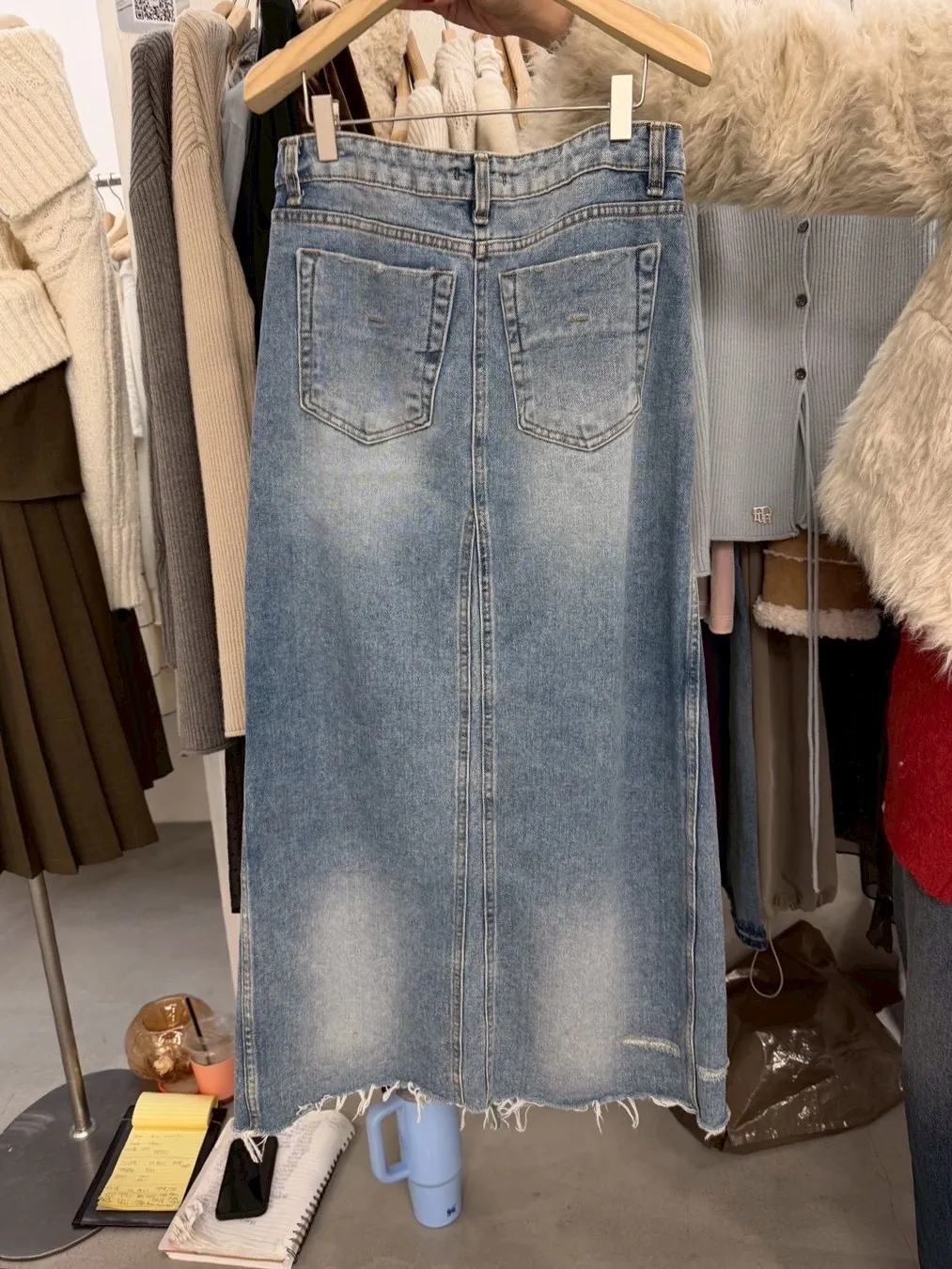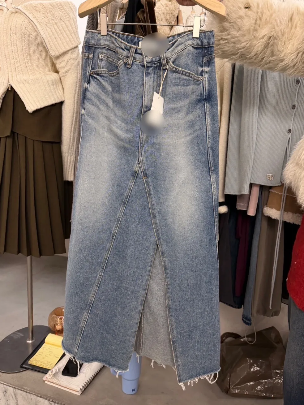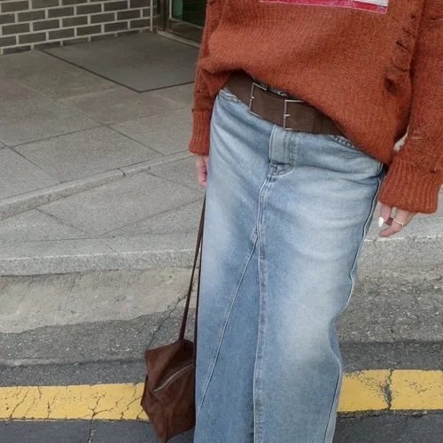 A11068 剪裁前開衩牛仔裙
