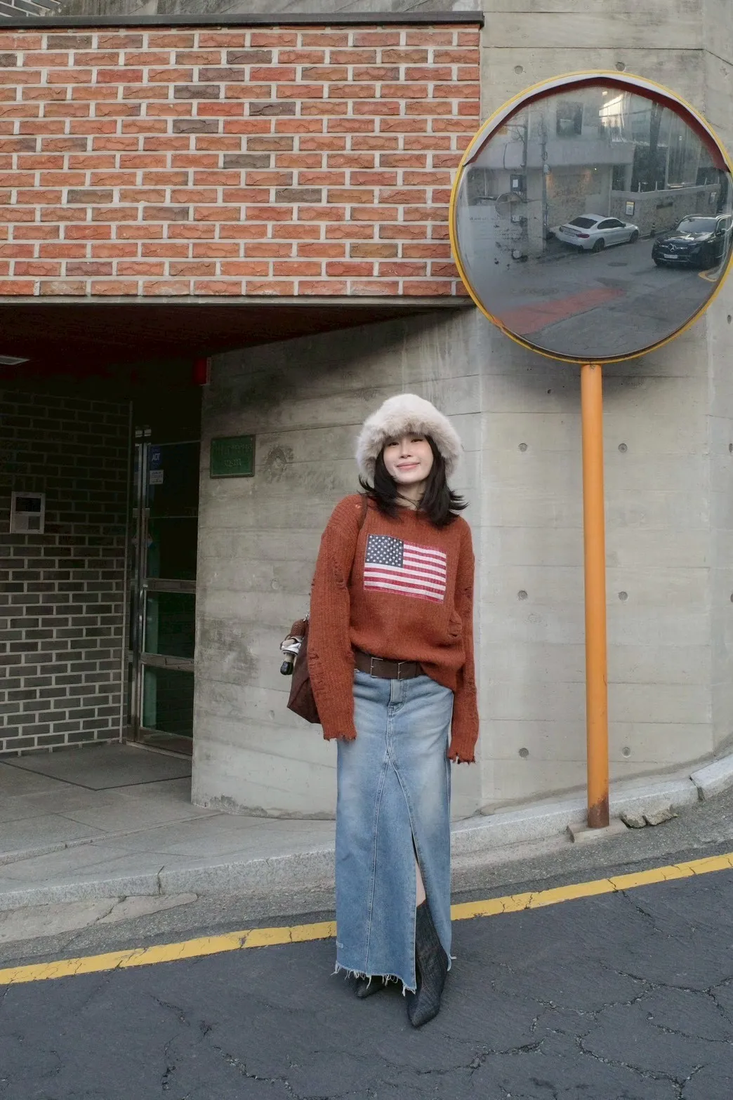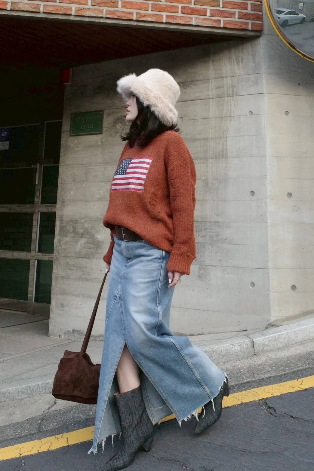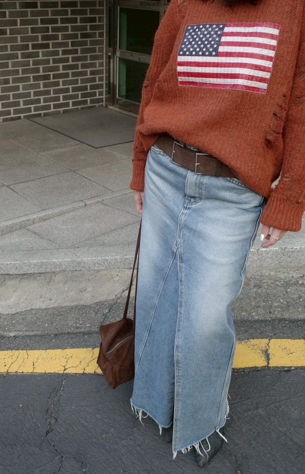 A11068 剪裁前開衩牛仔裙