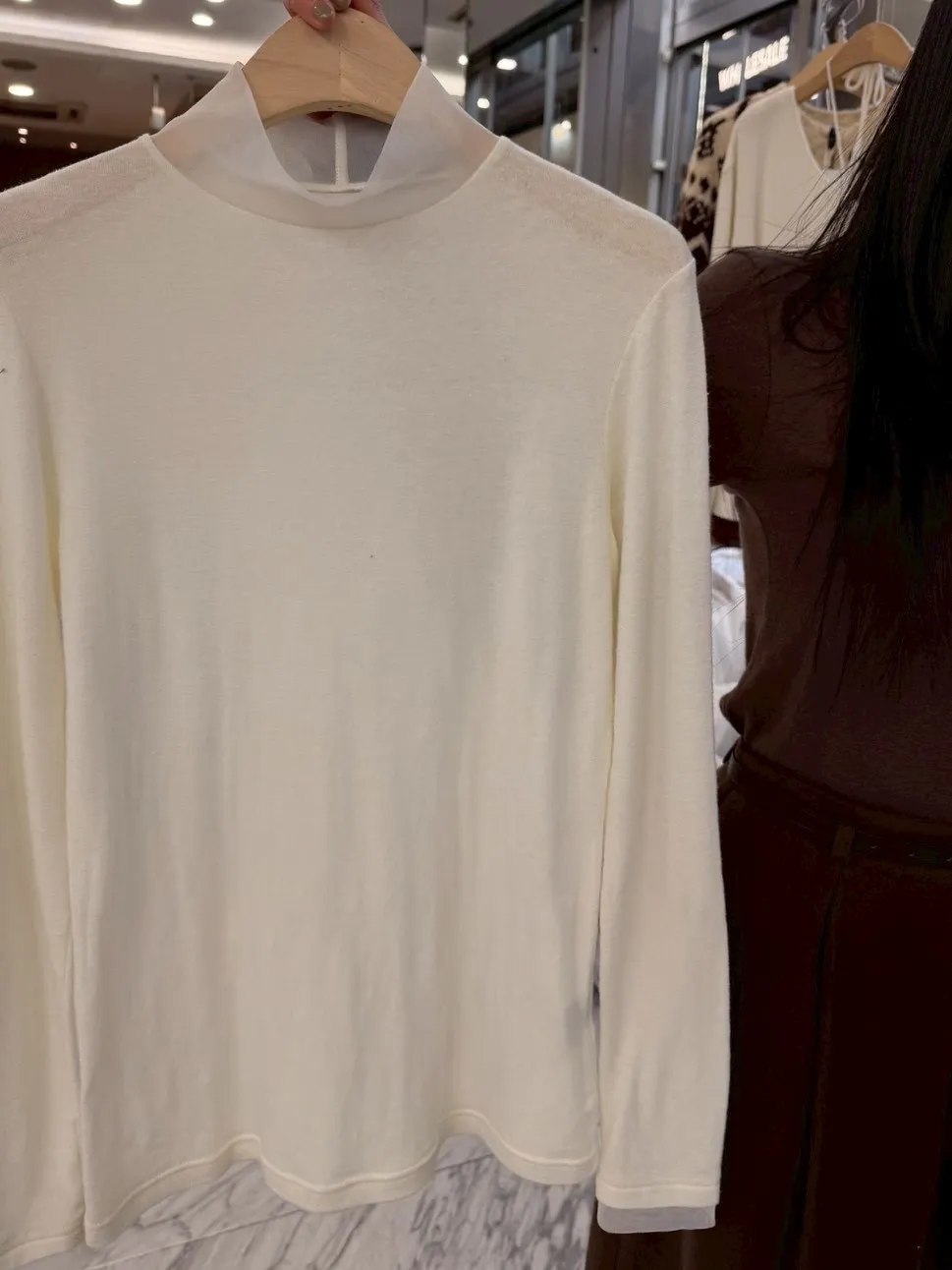 A11070 拼接紗小立領內搭上衣