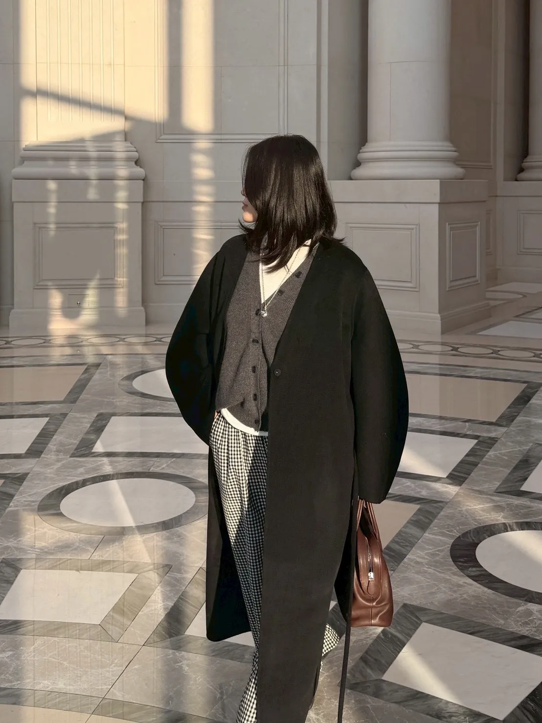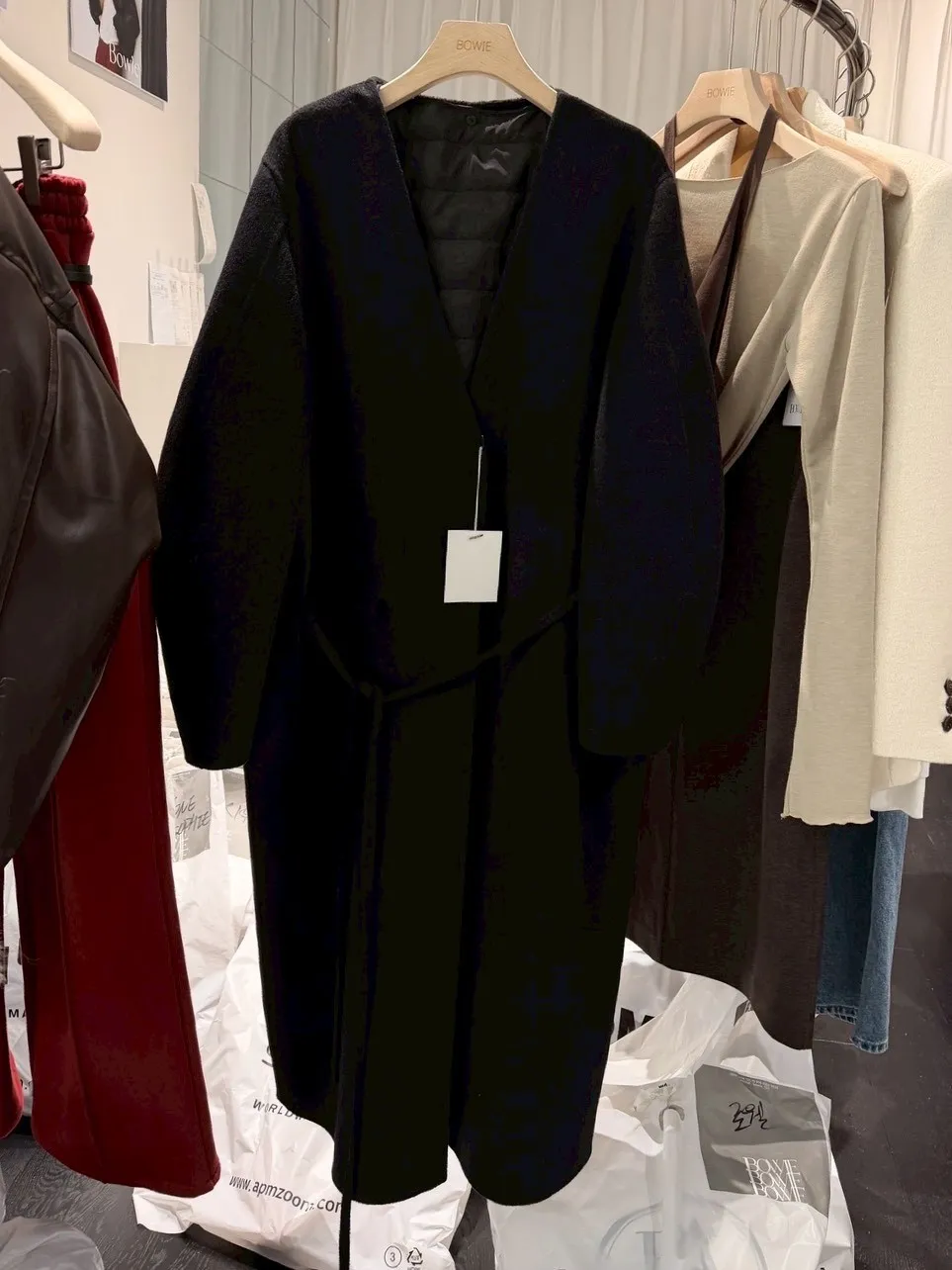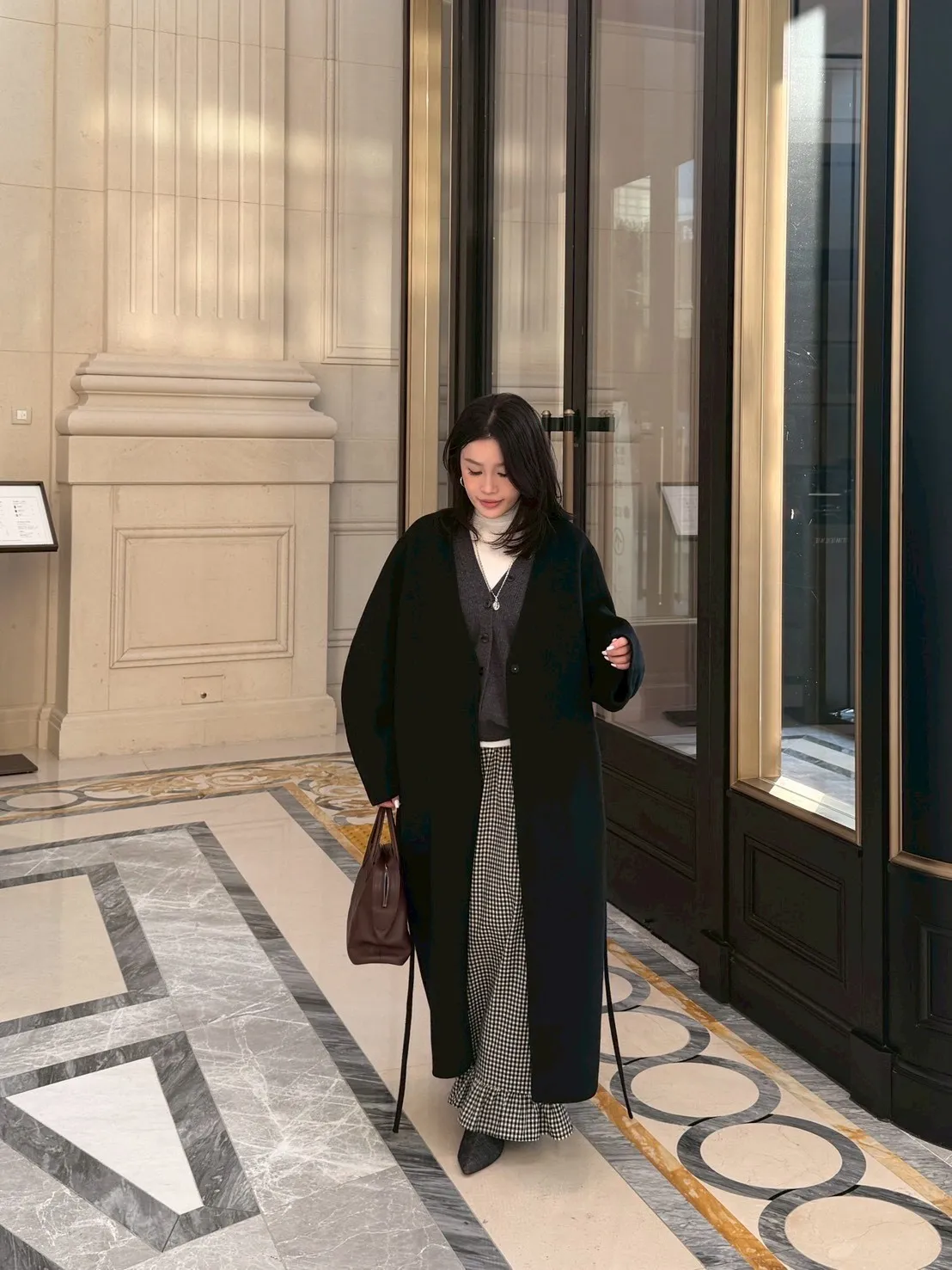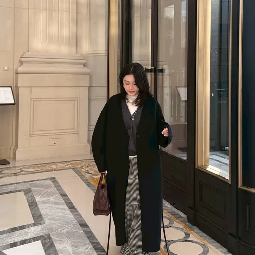 A11073 法式風情手工剪裁羊毛大衣(內羽絨背心可拆)
