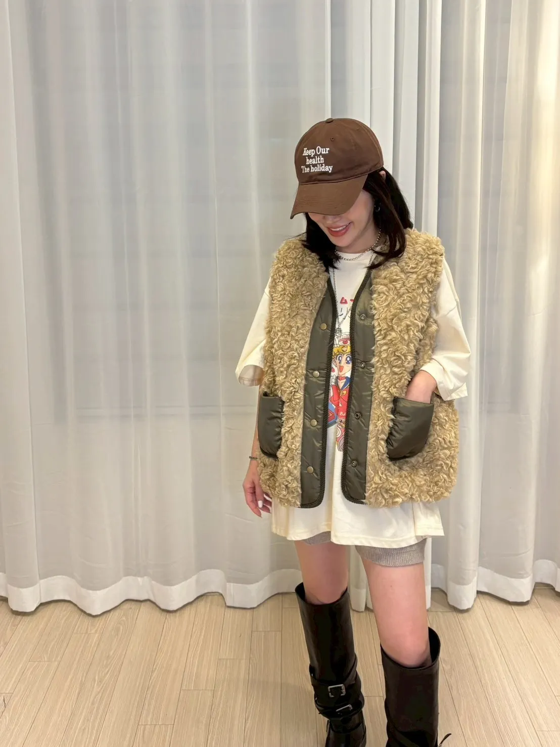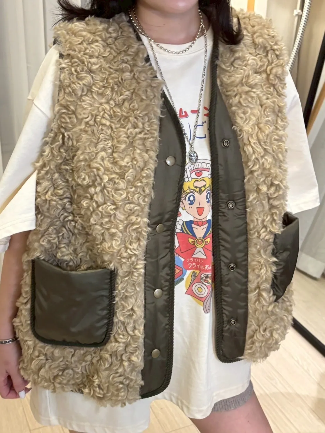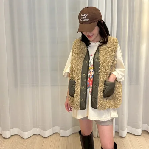 A11091 泰迪毛毛尼龍口袋背心