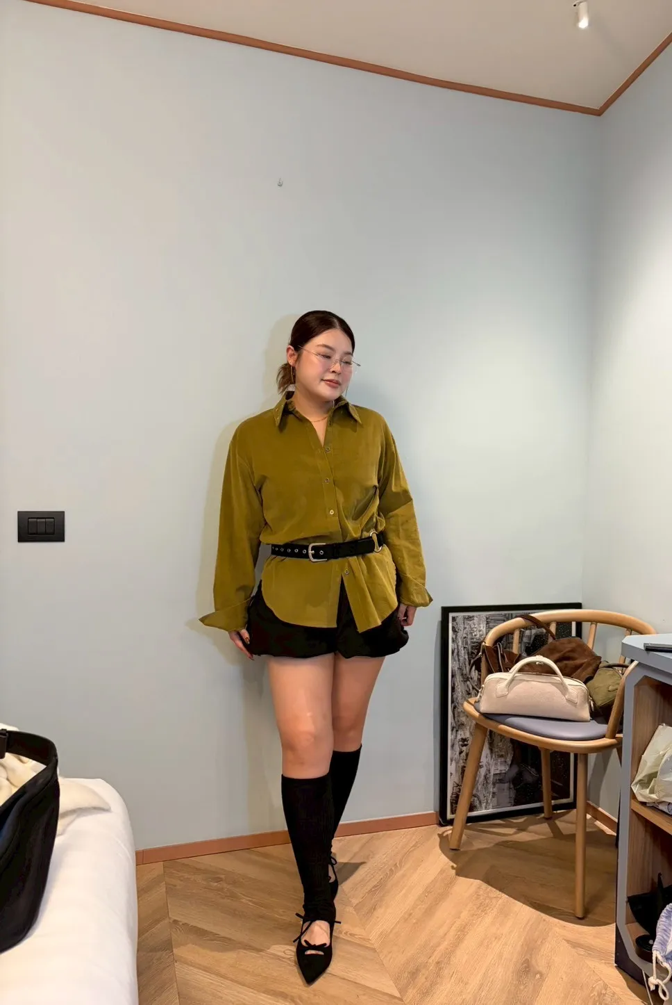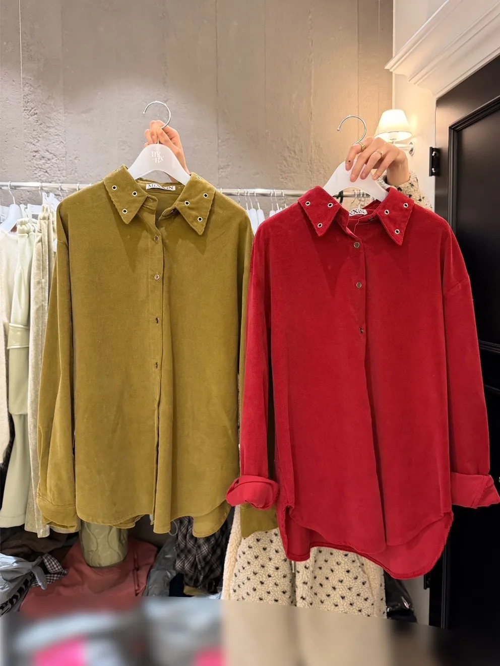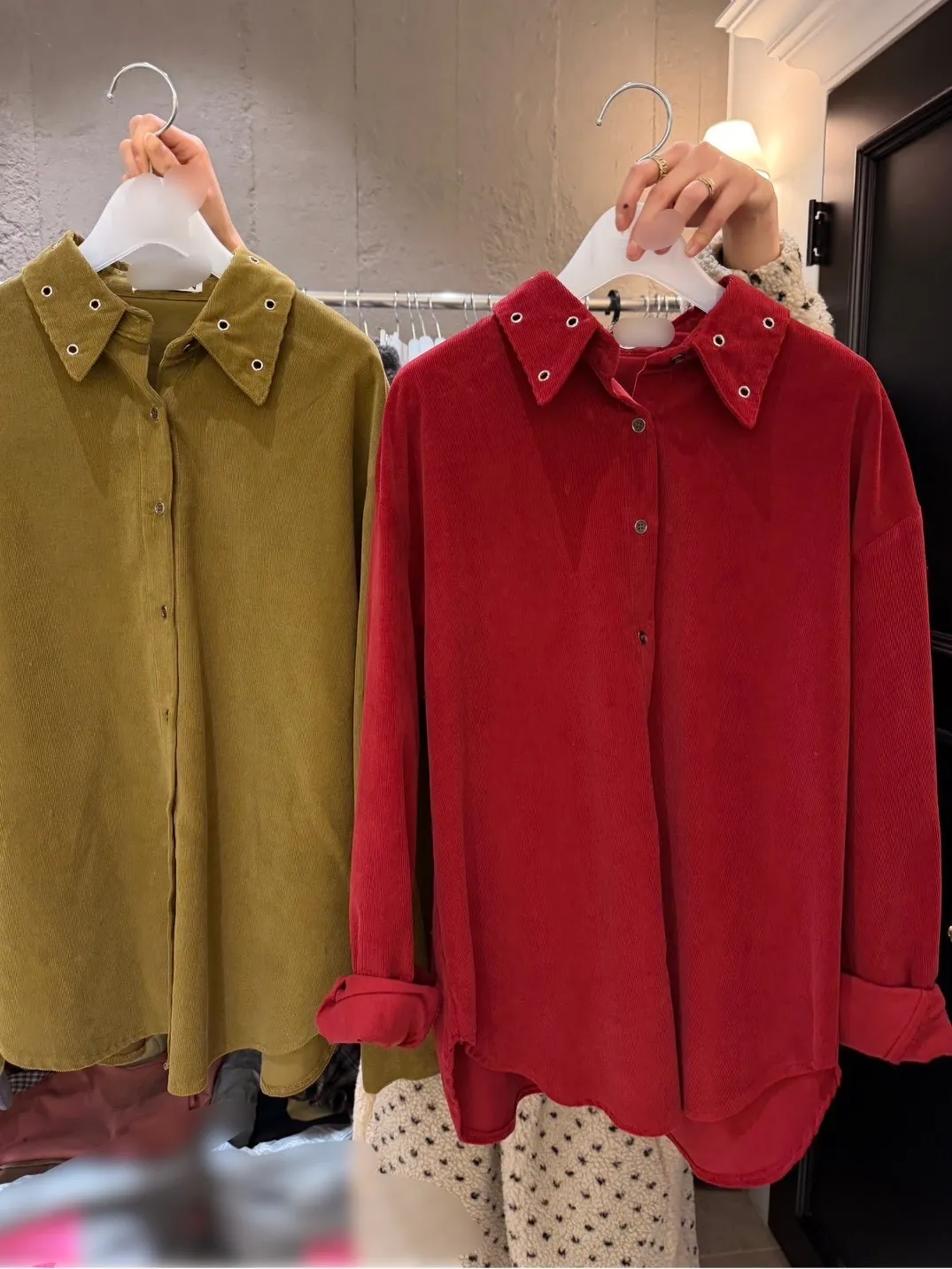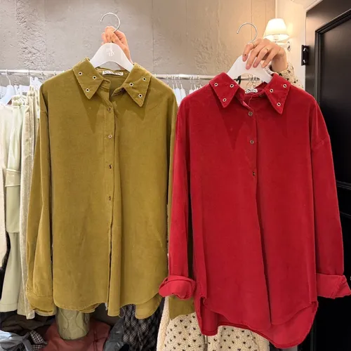 A12011 開心果/羅馬紅 燈芯絨釘釦襯衫
