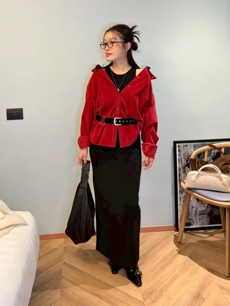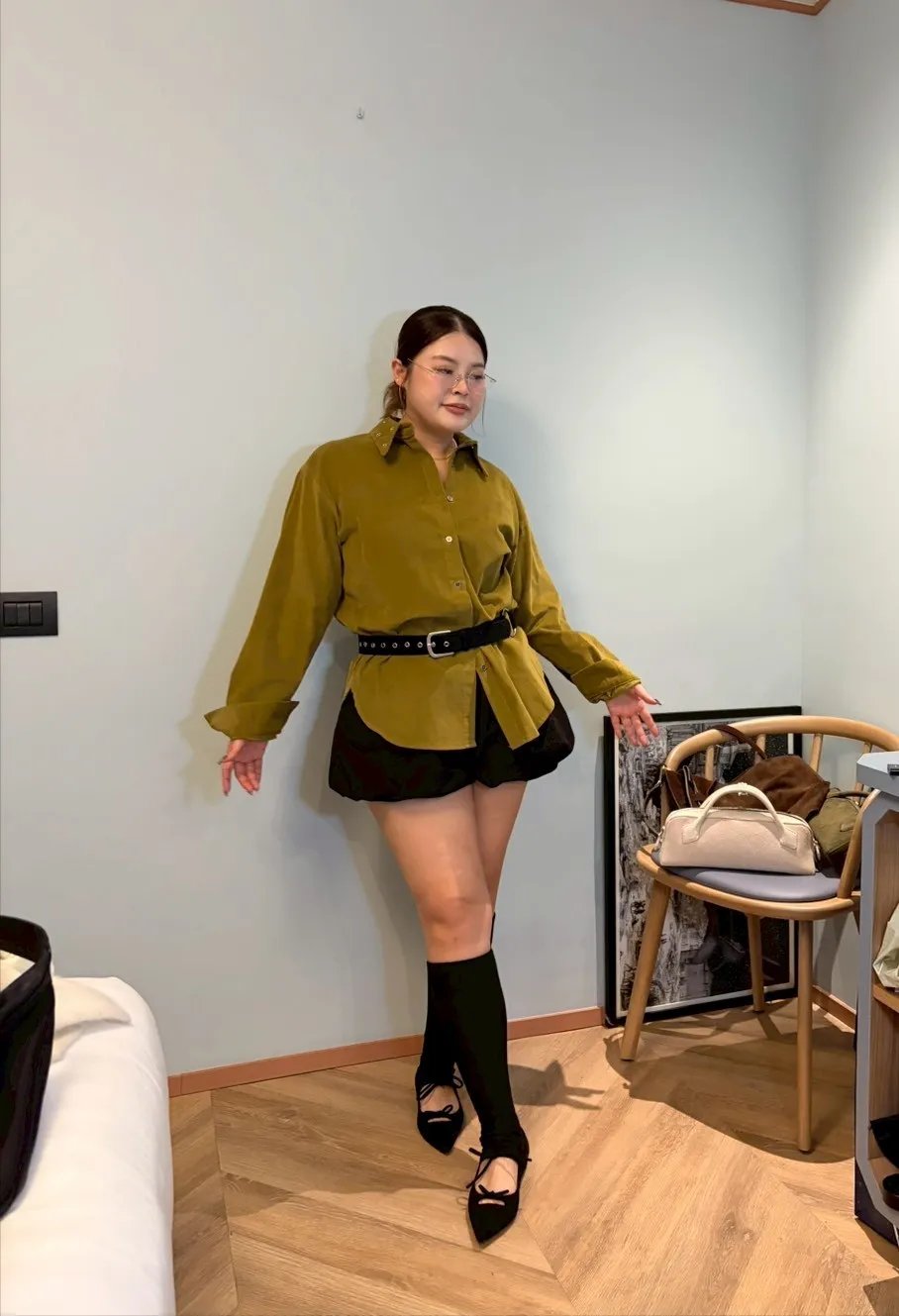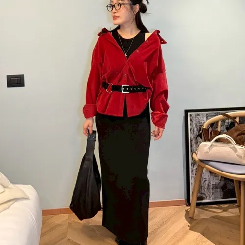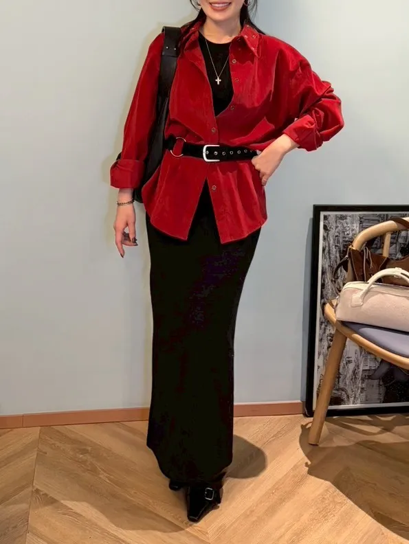 A12011 開心果/羅馬紅 燈芯絨釘釦襯衫