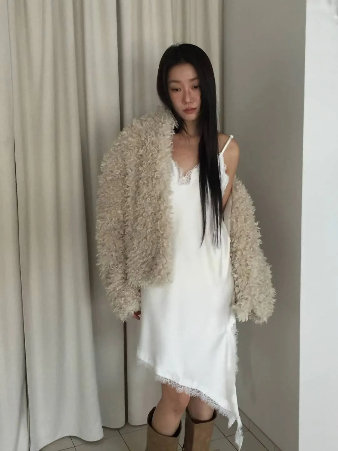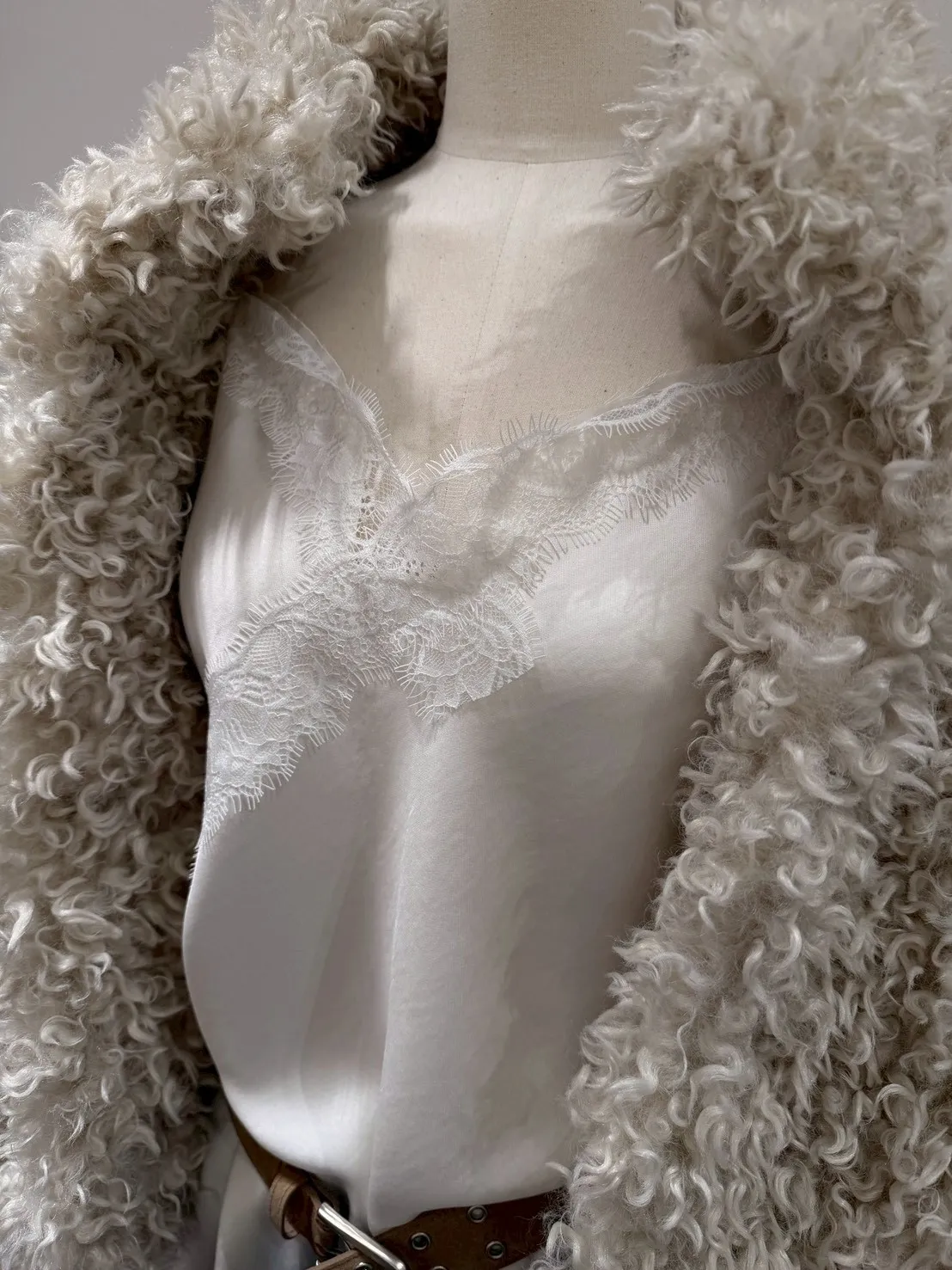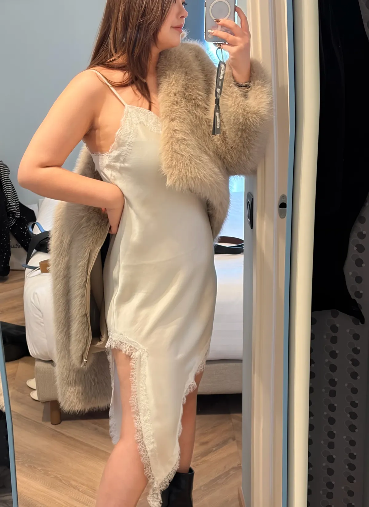A12016 斜切蕾絲緞面洋裝