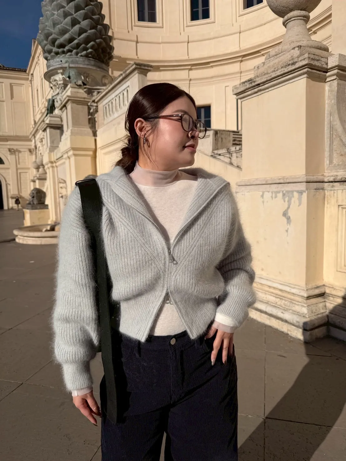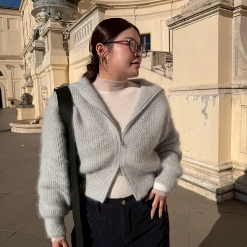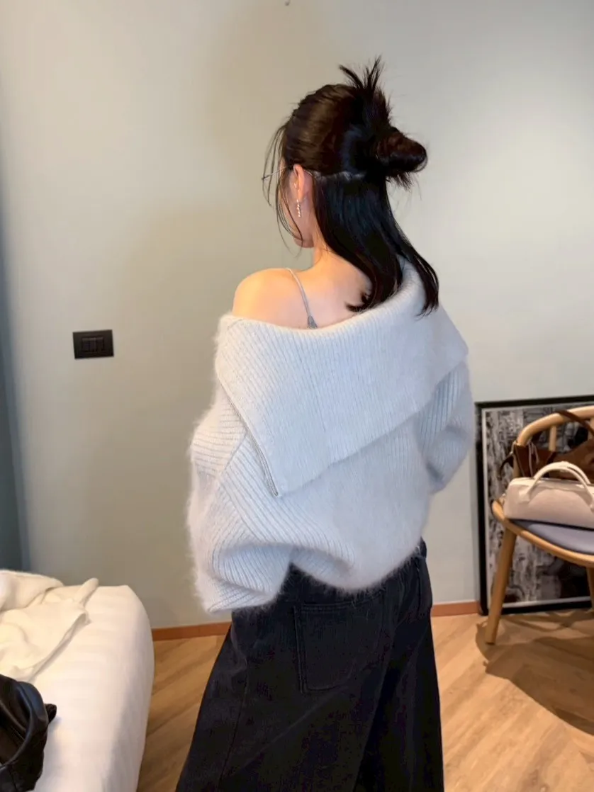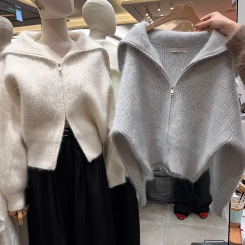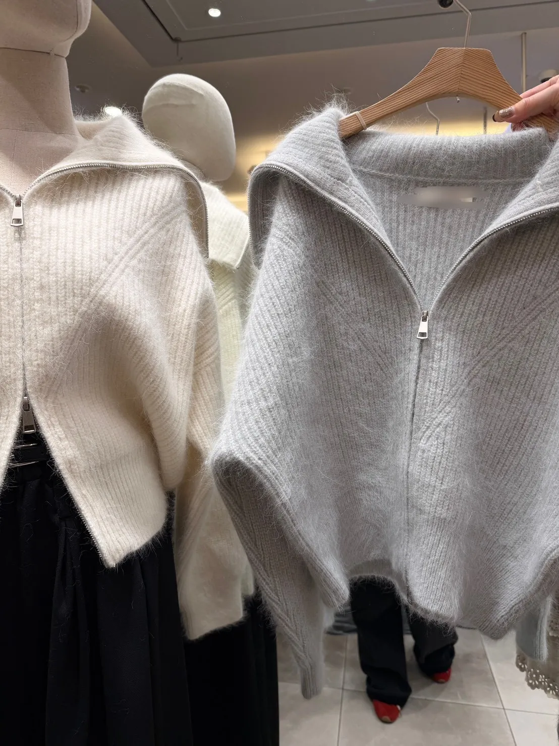 A12041 浣熊毛雙拉鏈翻領毛衣外套