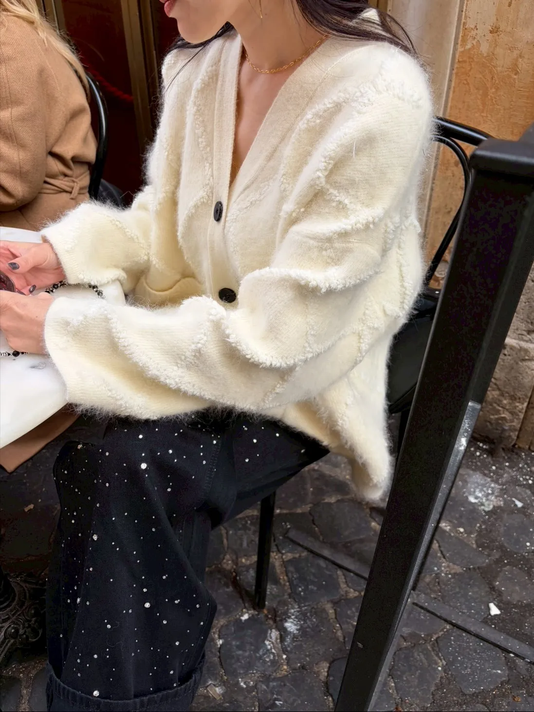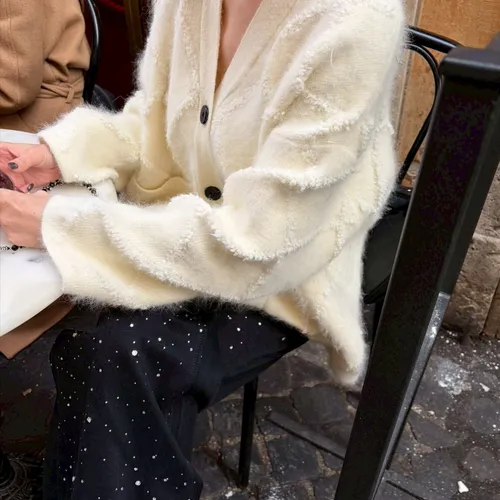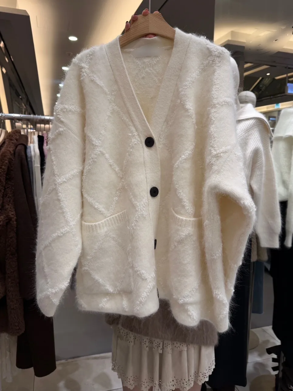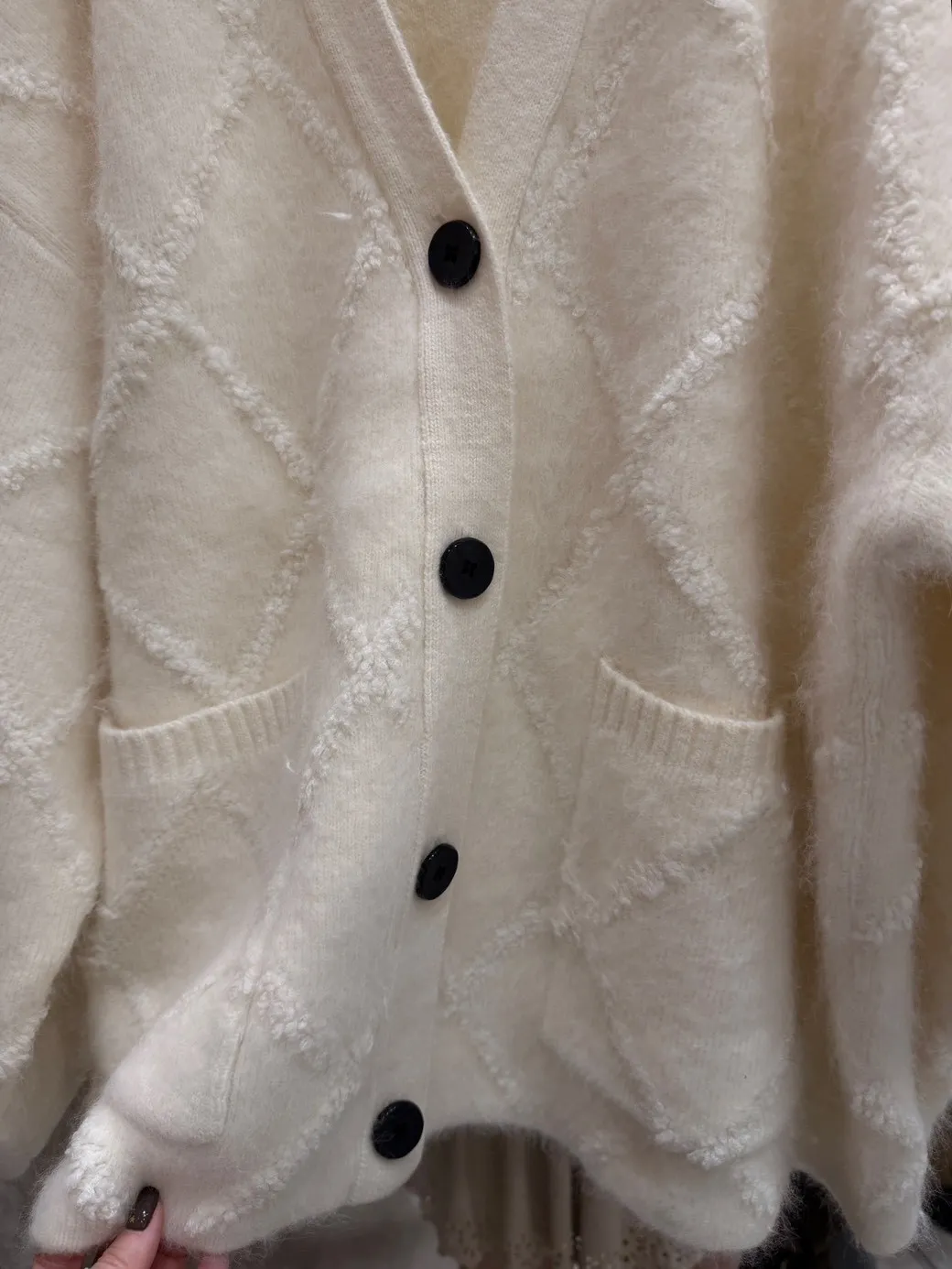 A12042 麥穗格紋立體開襟衫