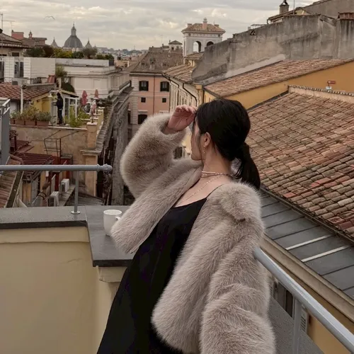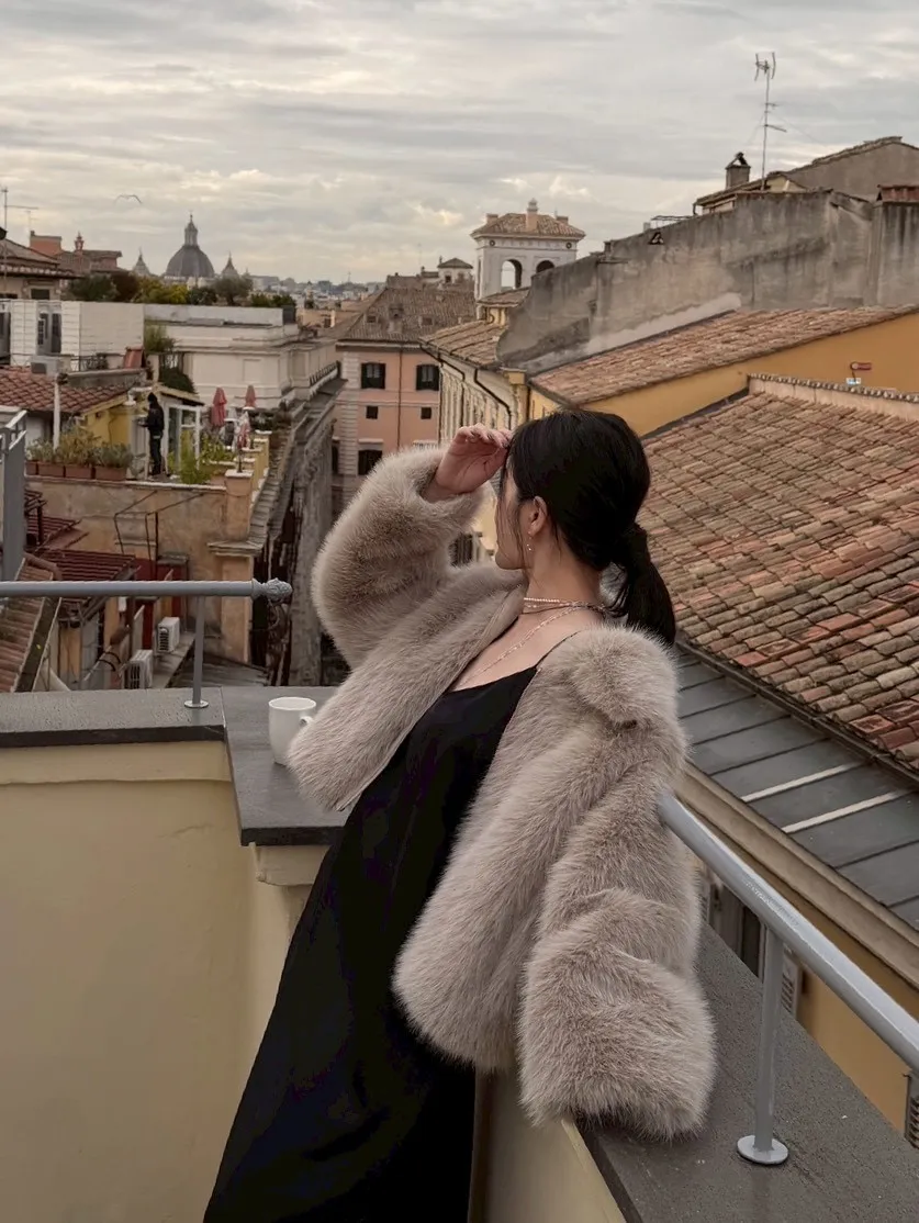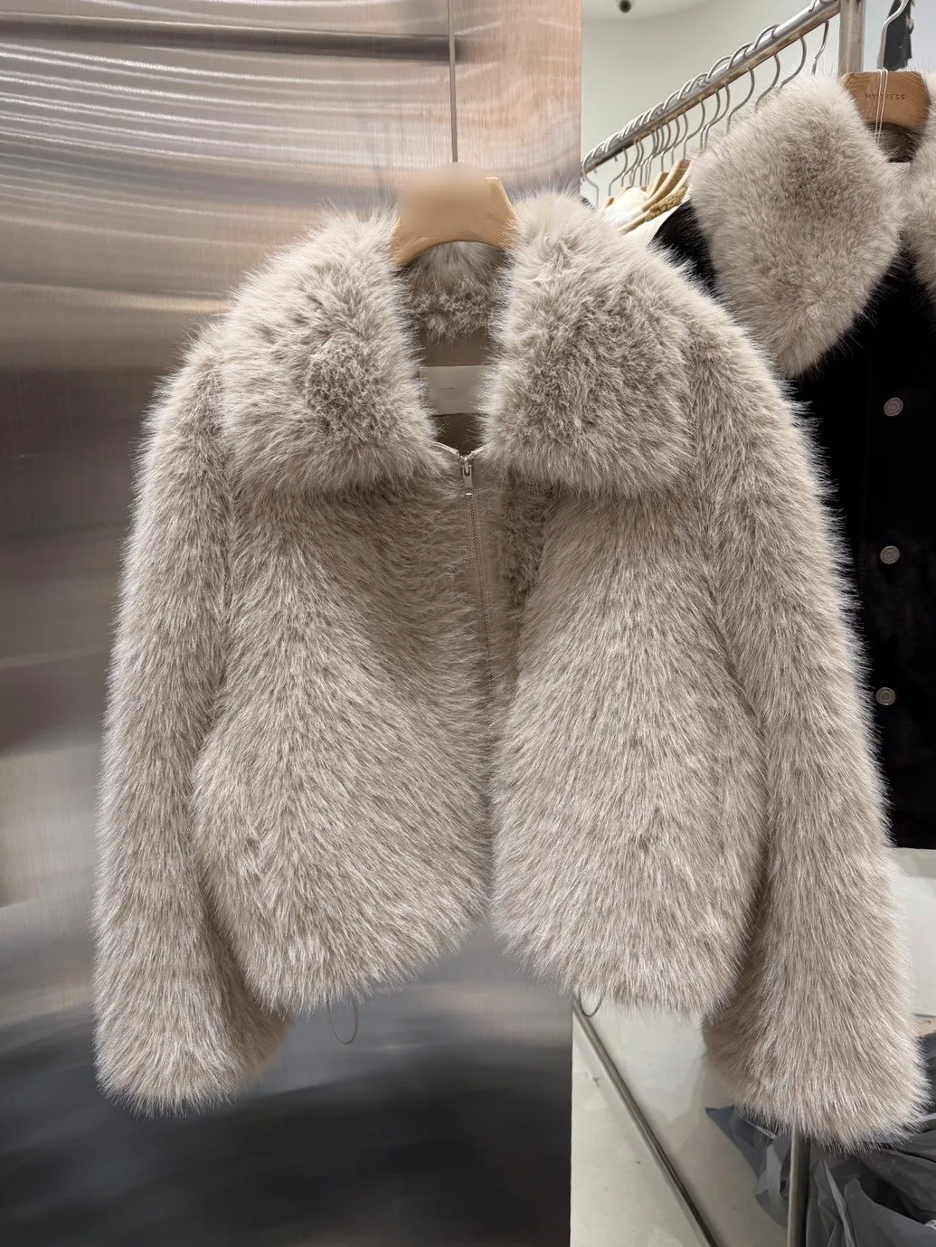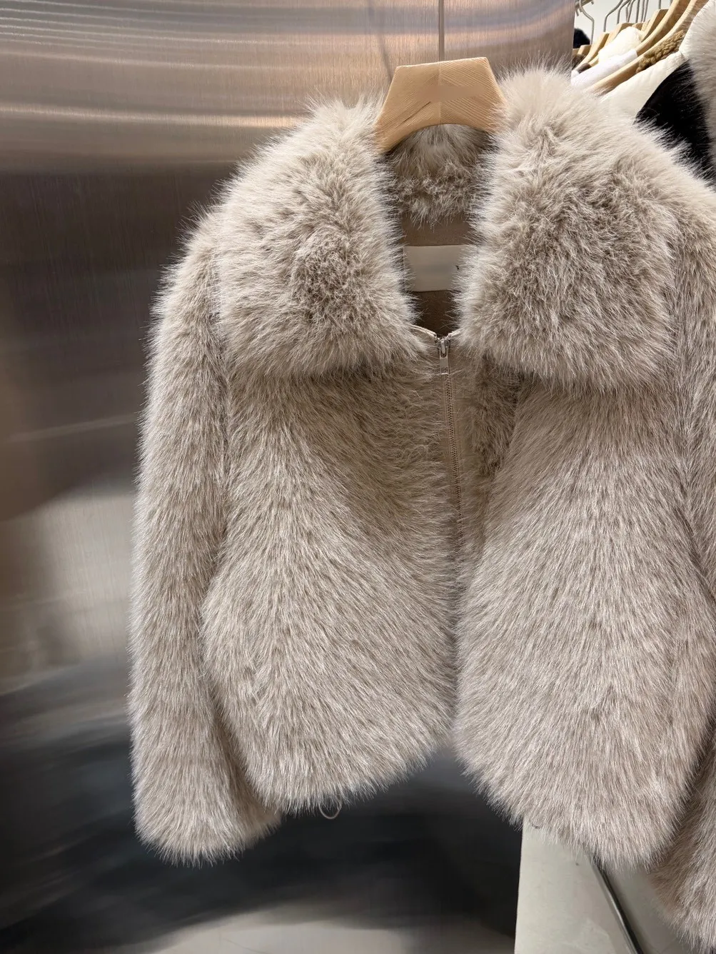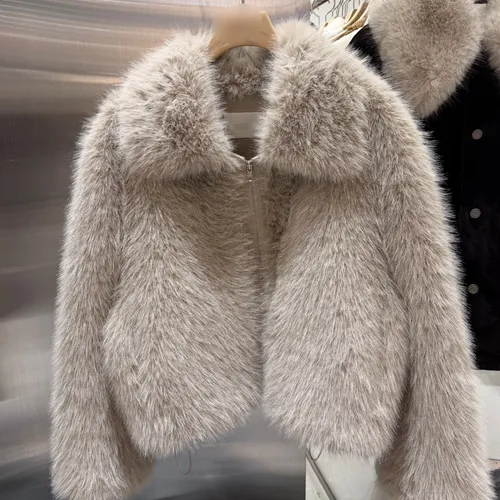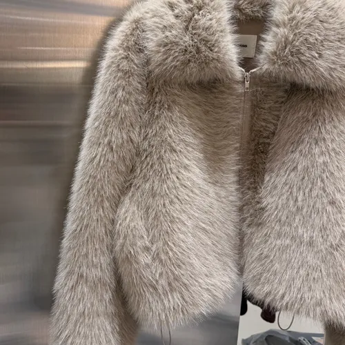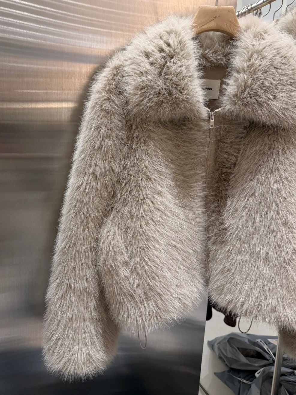 A12048 杏仁奶白高級色!拉鏈皮草口袋夾克