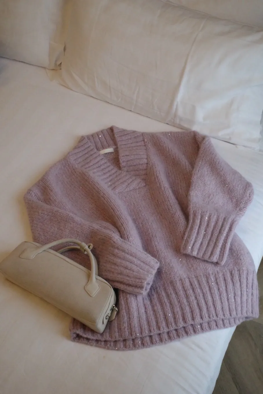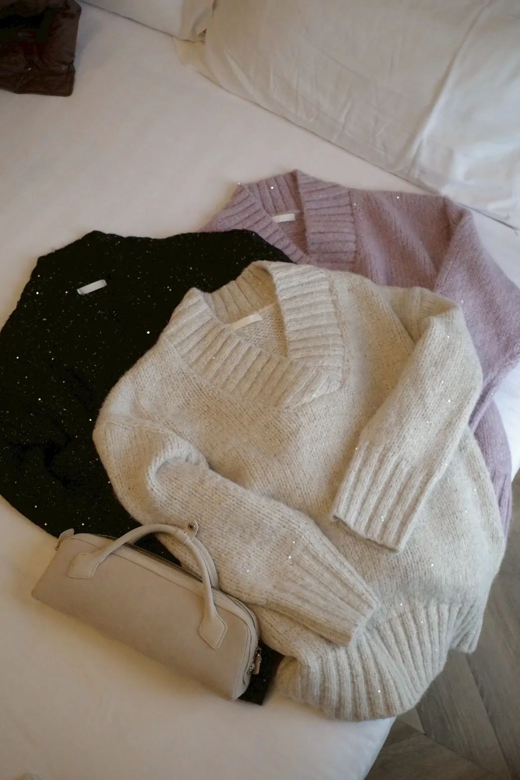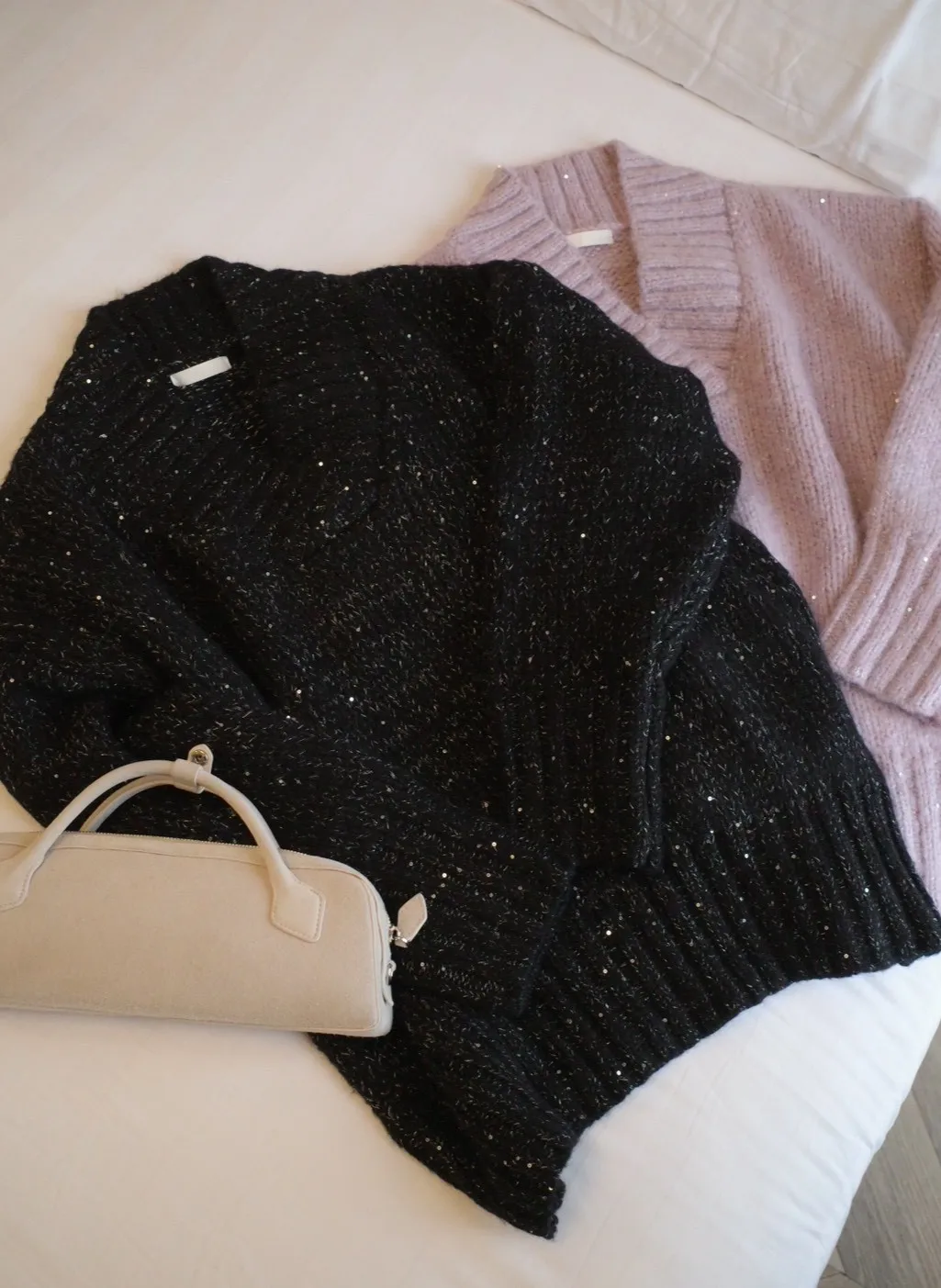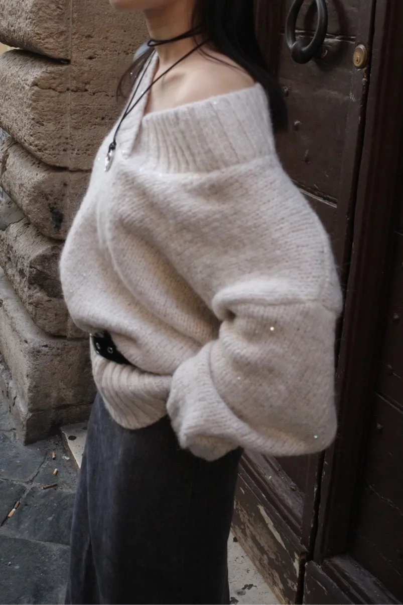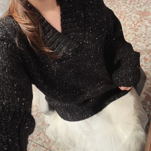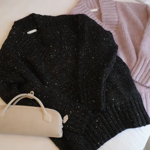 A12050 節慶氛圍V領慵懶閃閃亮片毛衣
