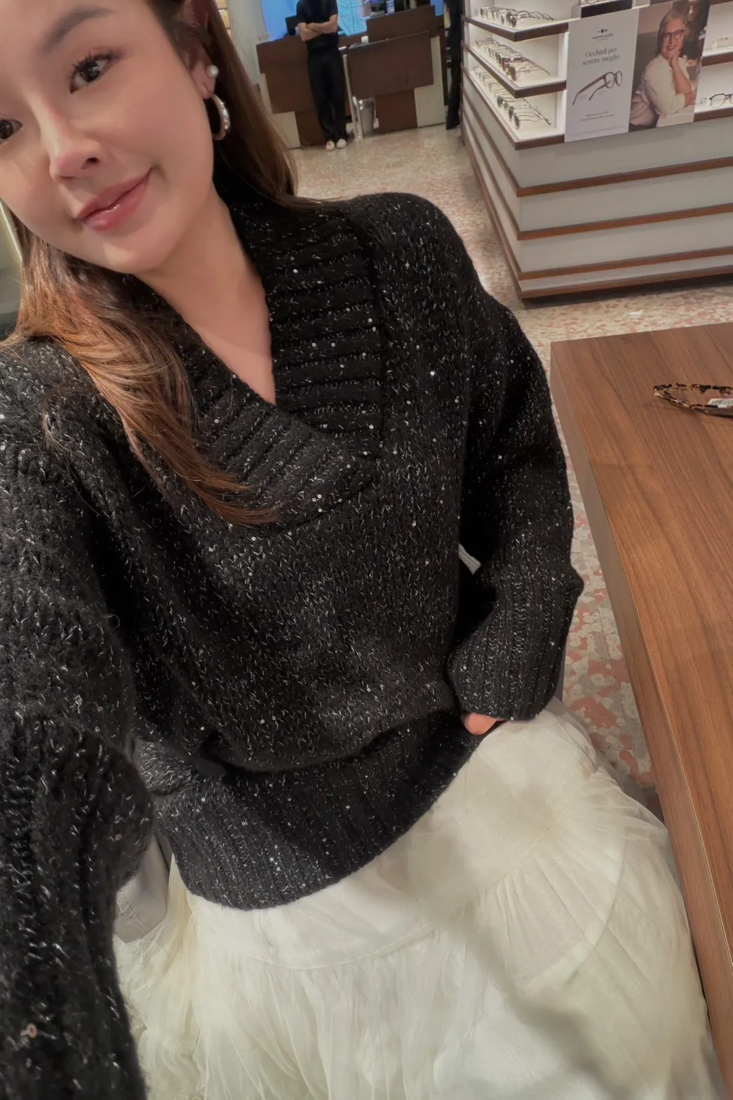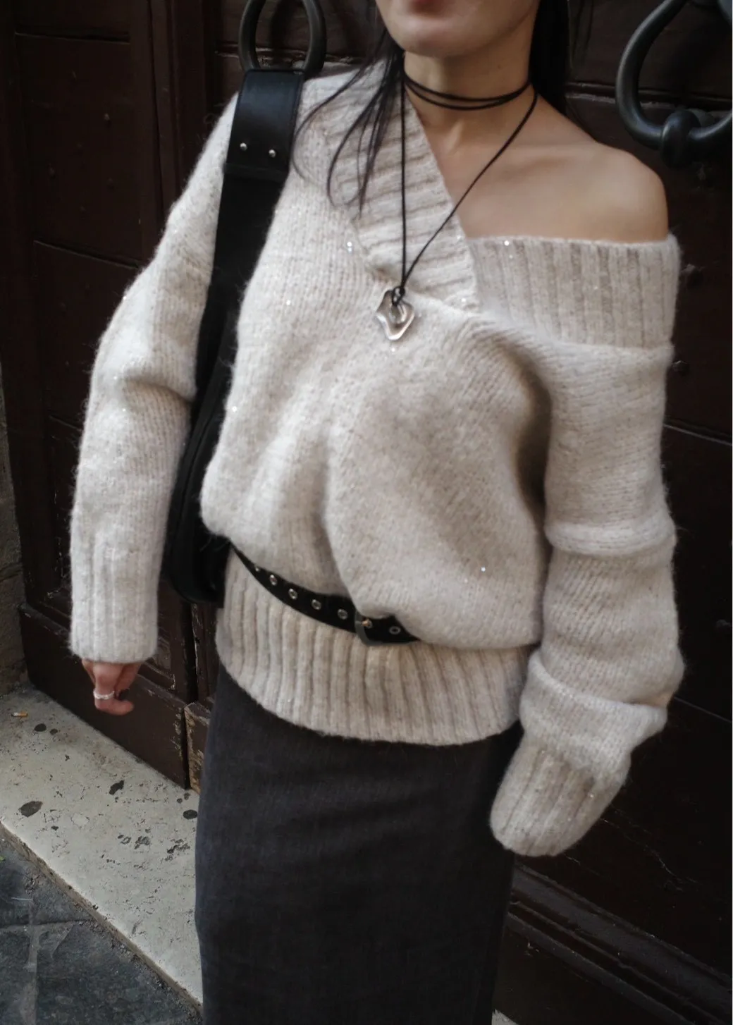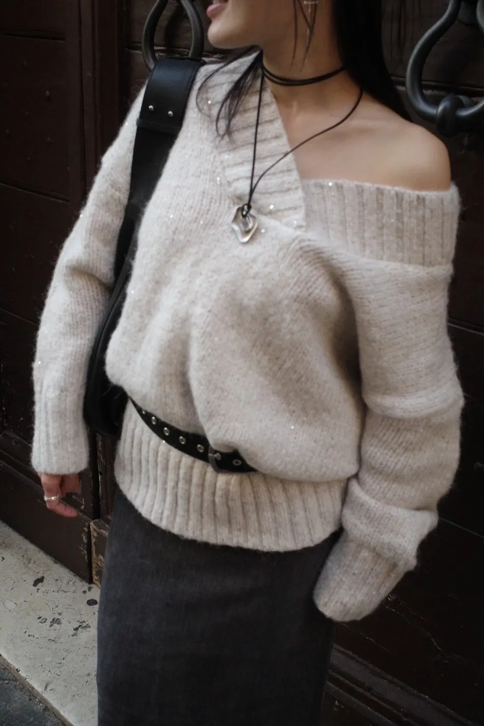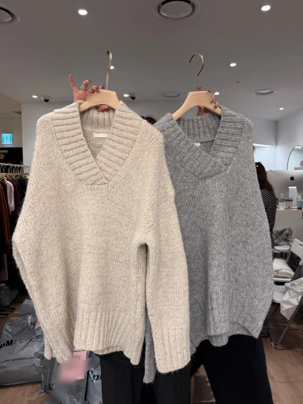 A12050 節慶氛圍V領慵懶閃閃亮片毛衣