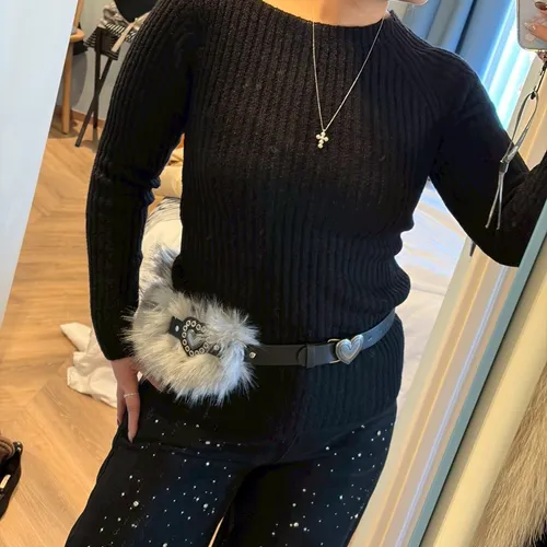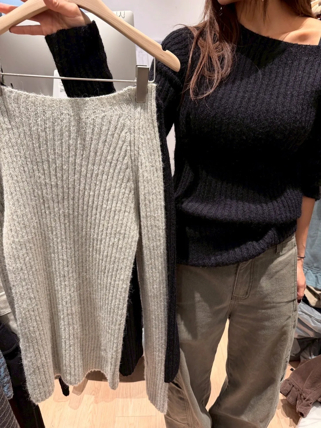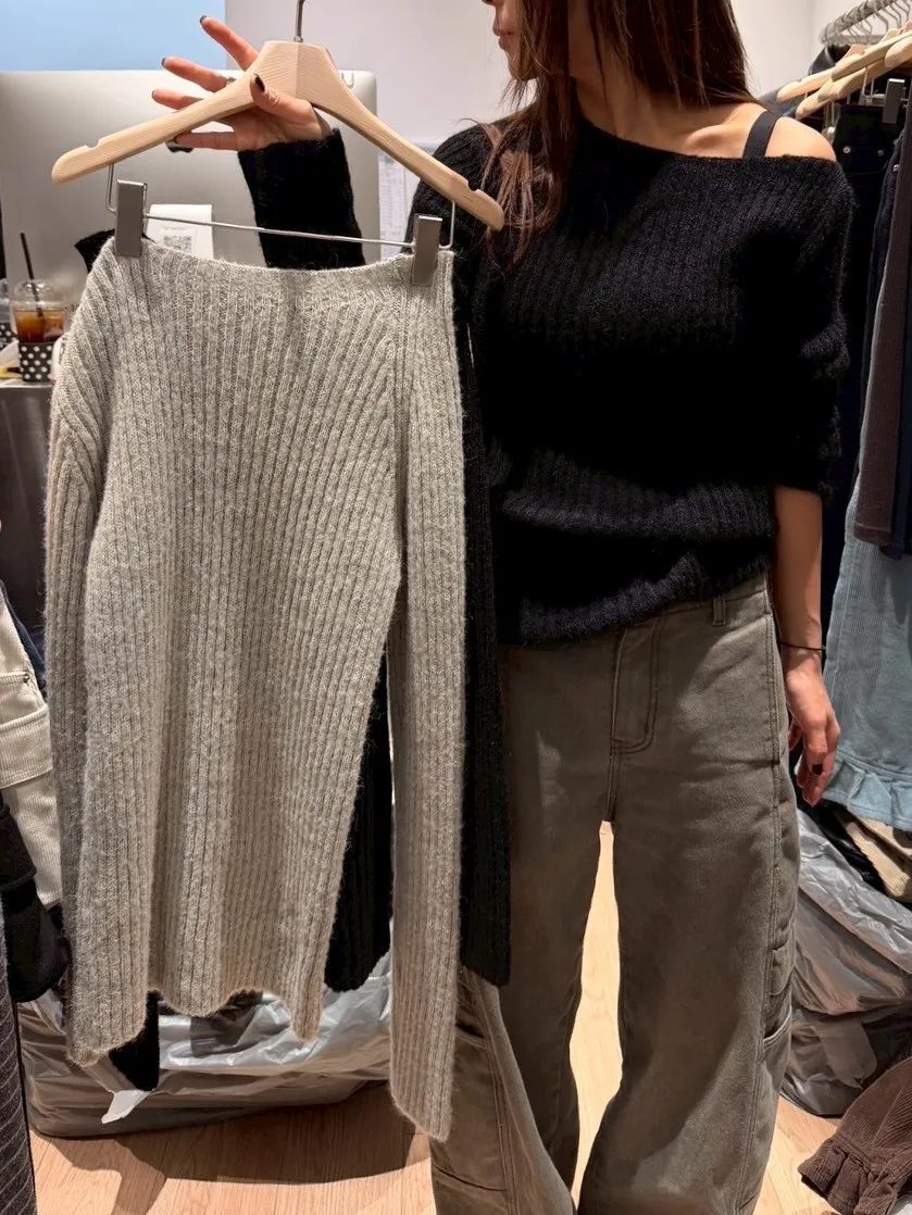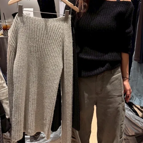 A12063 羊駝毛斜肩毛衣