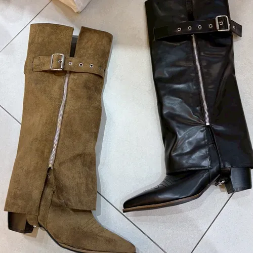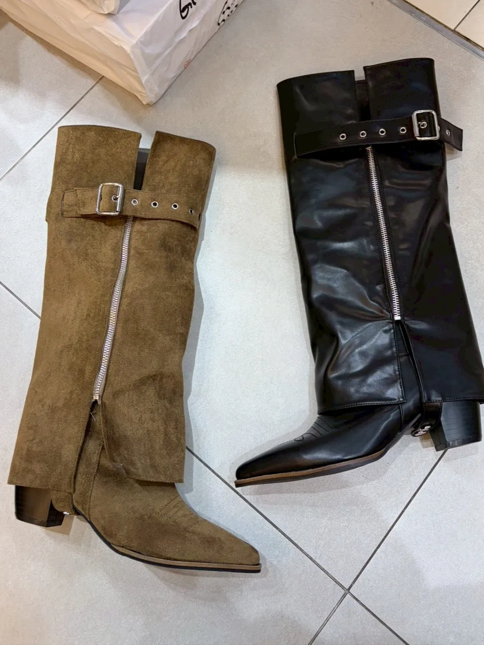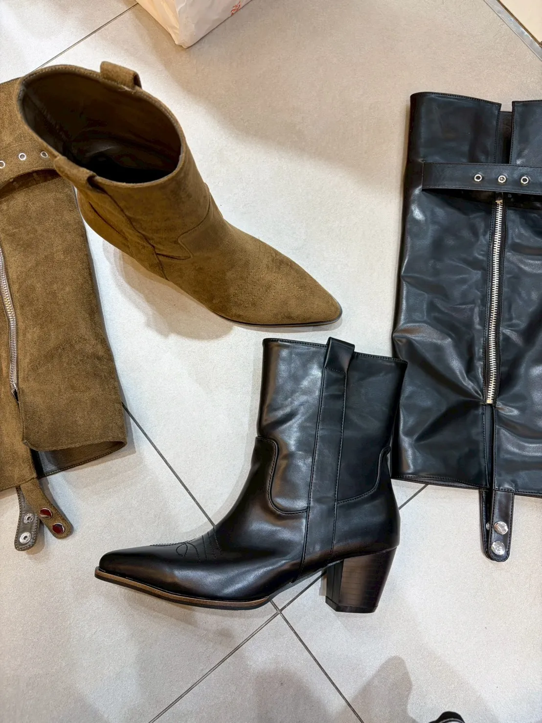 A12079 尖頭西部靴 附長筒靴套 多穿法super大推薦(黑色皮革/棕色麂皮絨)