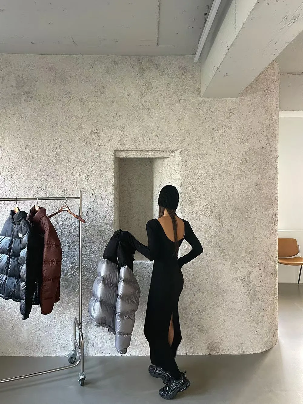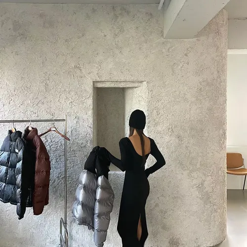 A12093 露背連身開衩洋裝