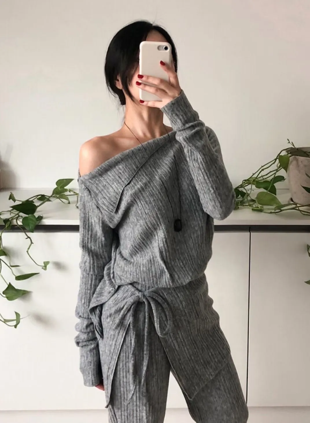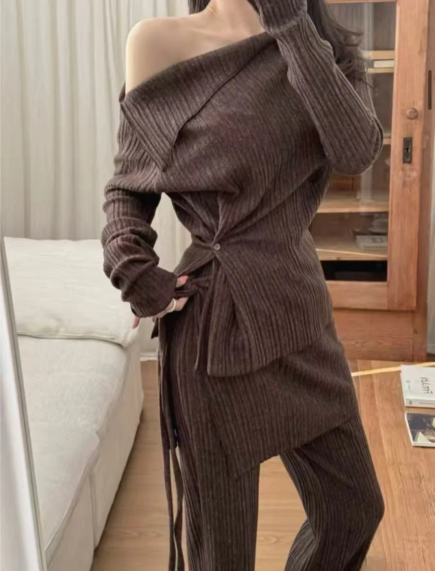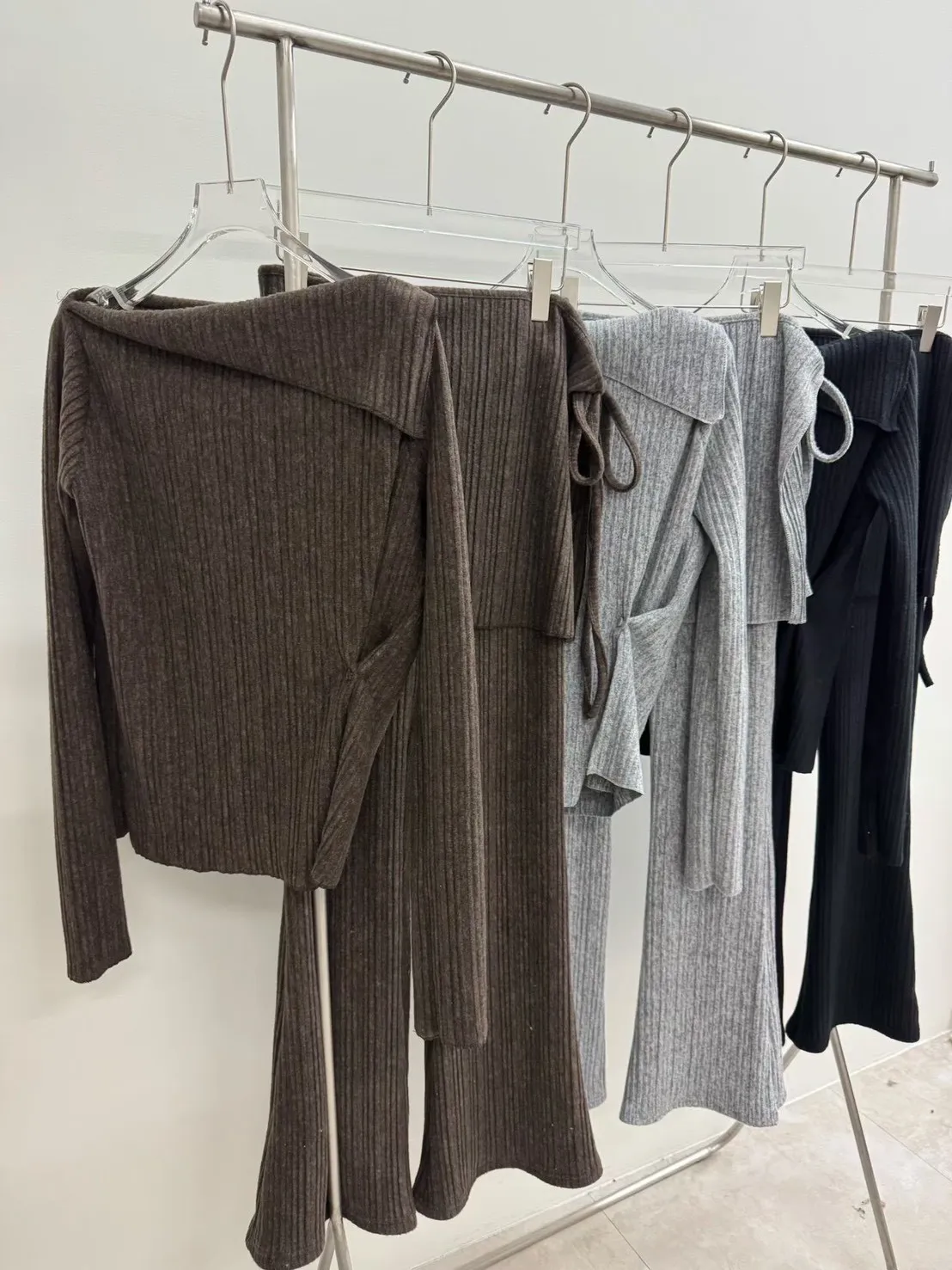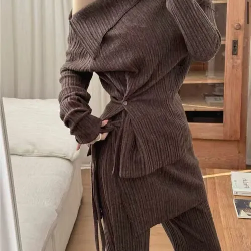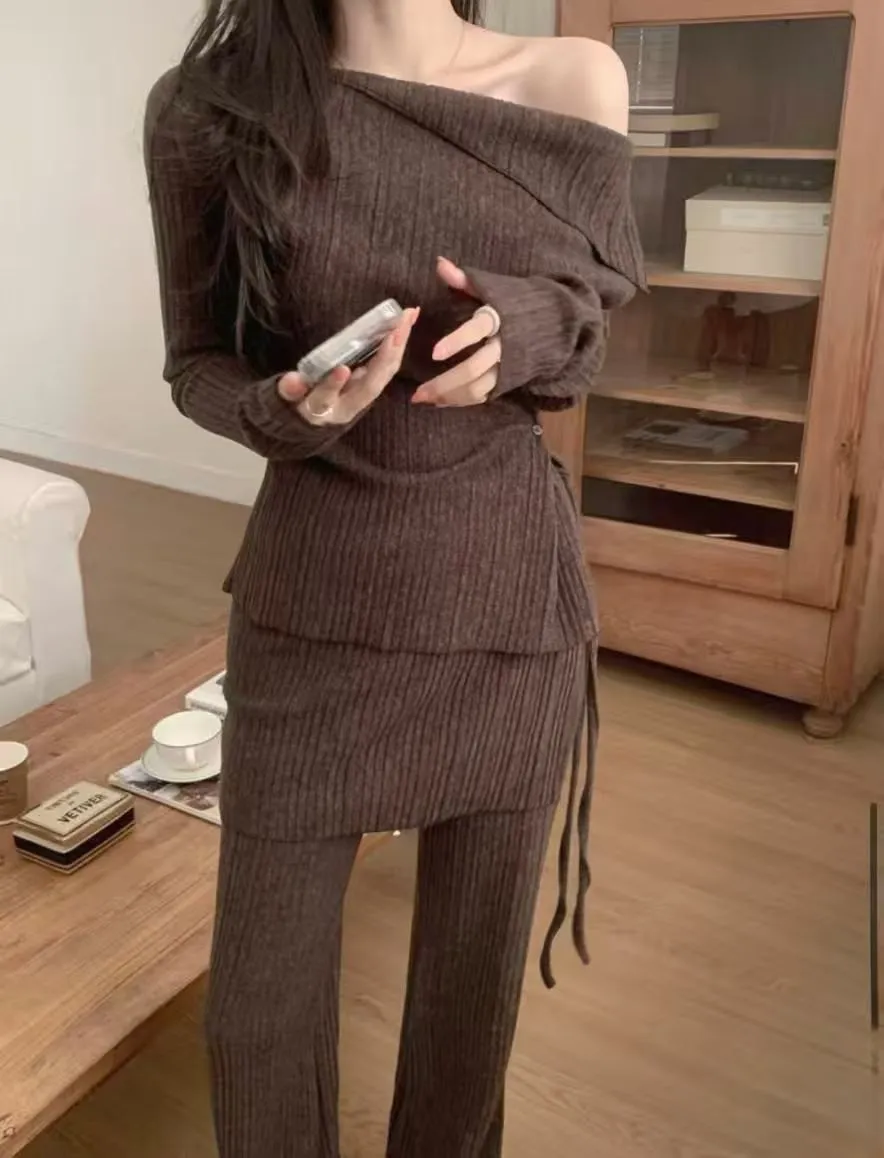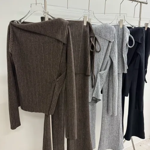 A12099 斜肩上衣/彈性褲/圍裙 三件套組