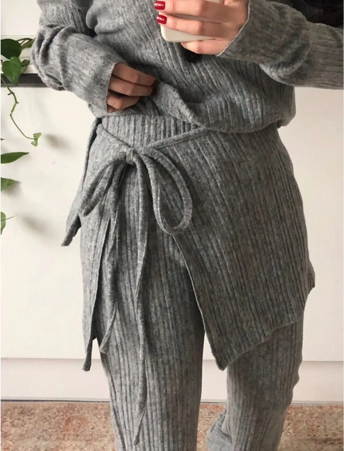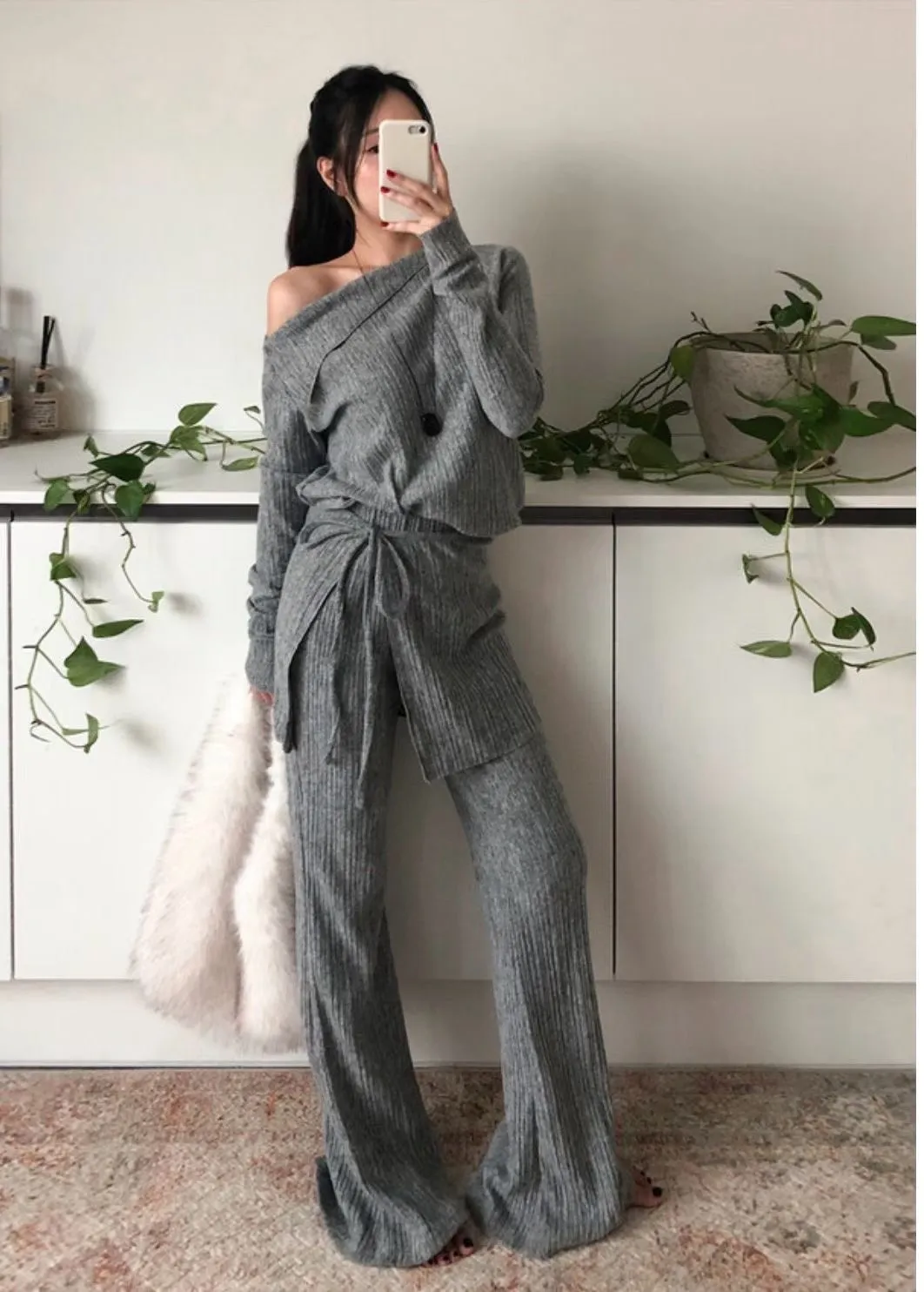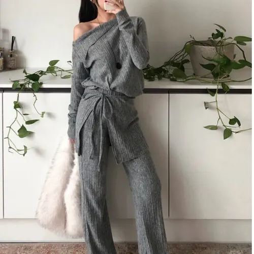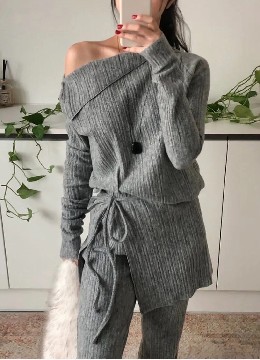 A12099 斜肩上衣/彈性褲/圍裙 三件套組