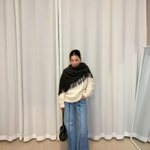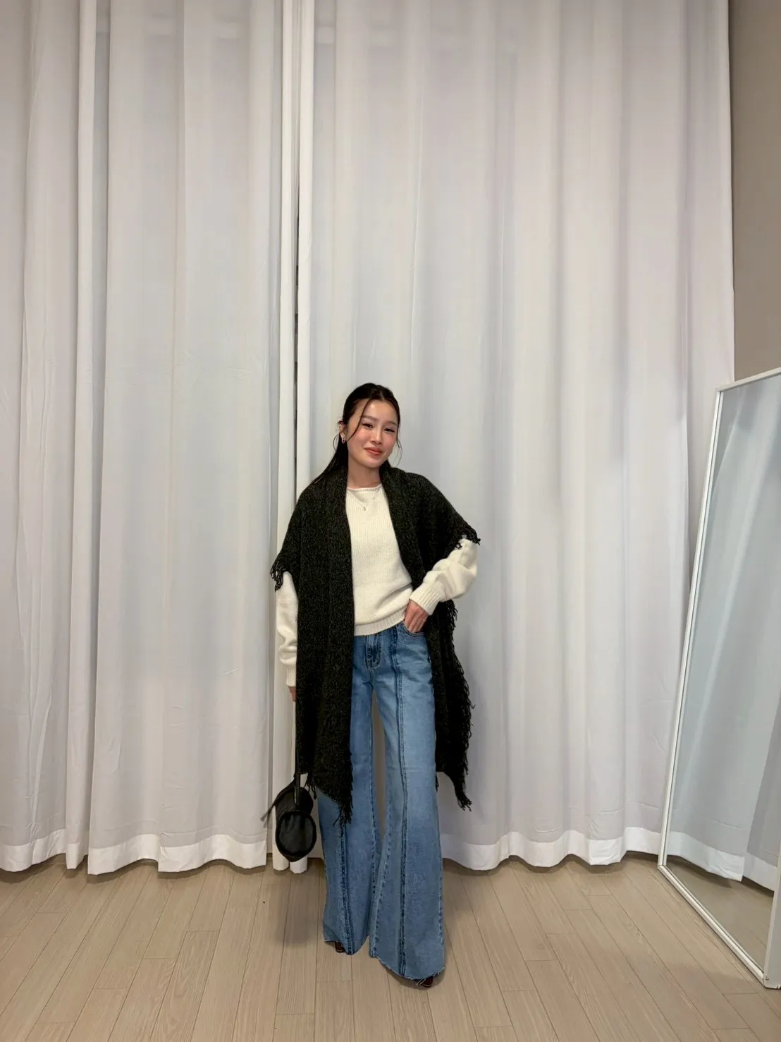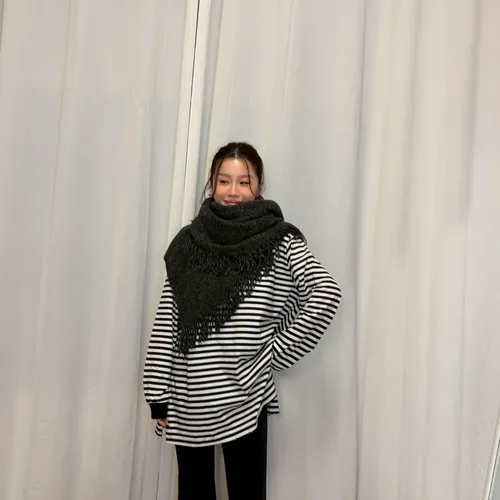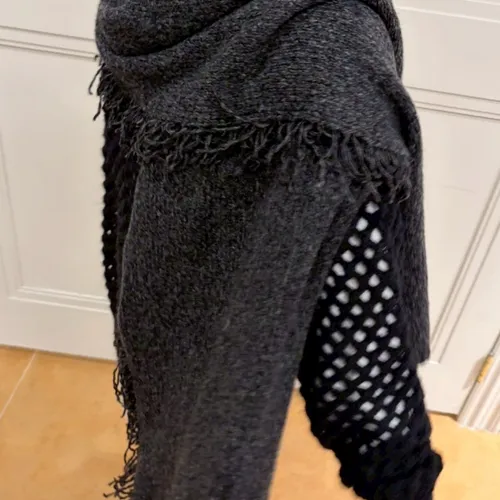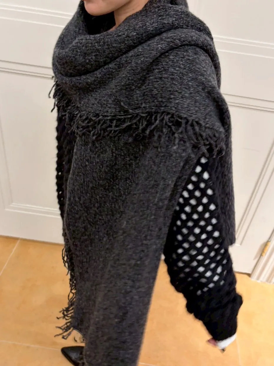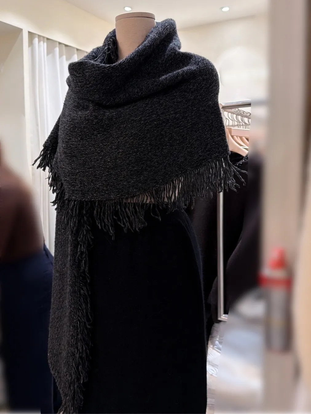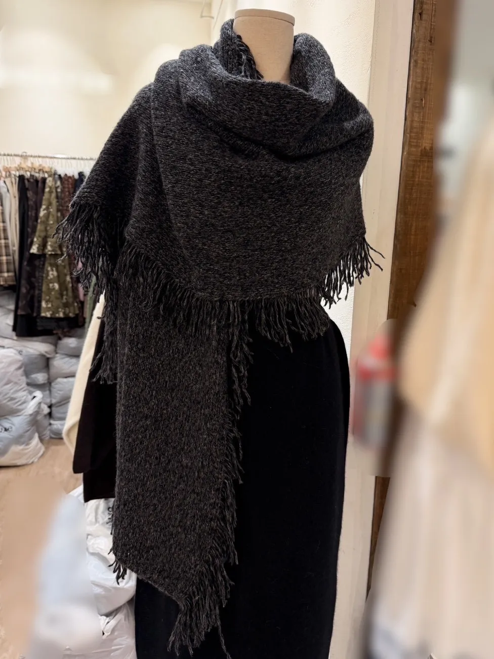 A12100 手工羊絨鉤織流蘇岩灰長圍巾