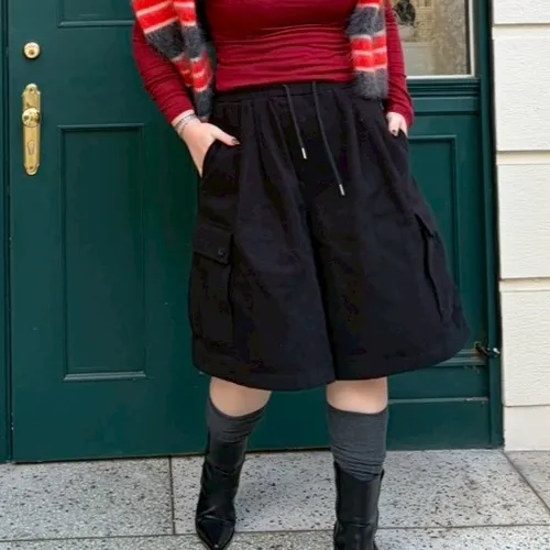 A12113 挺版口袋工裝寬褲