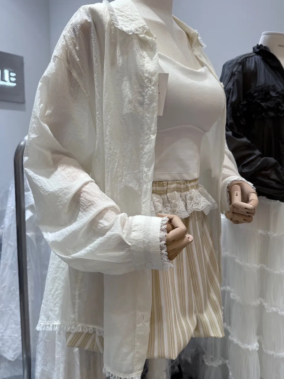 A6156 小蕾絲滾邊防曬襯衫外套