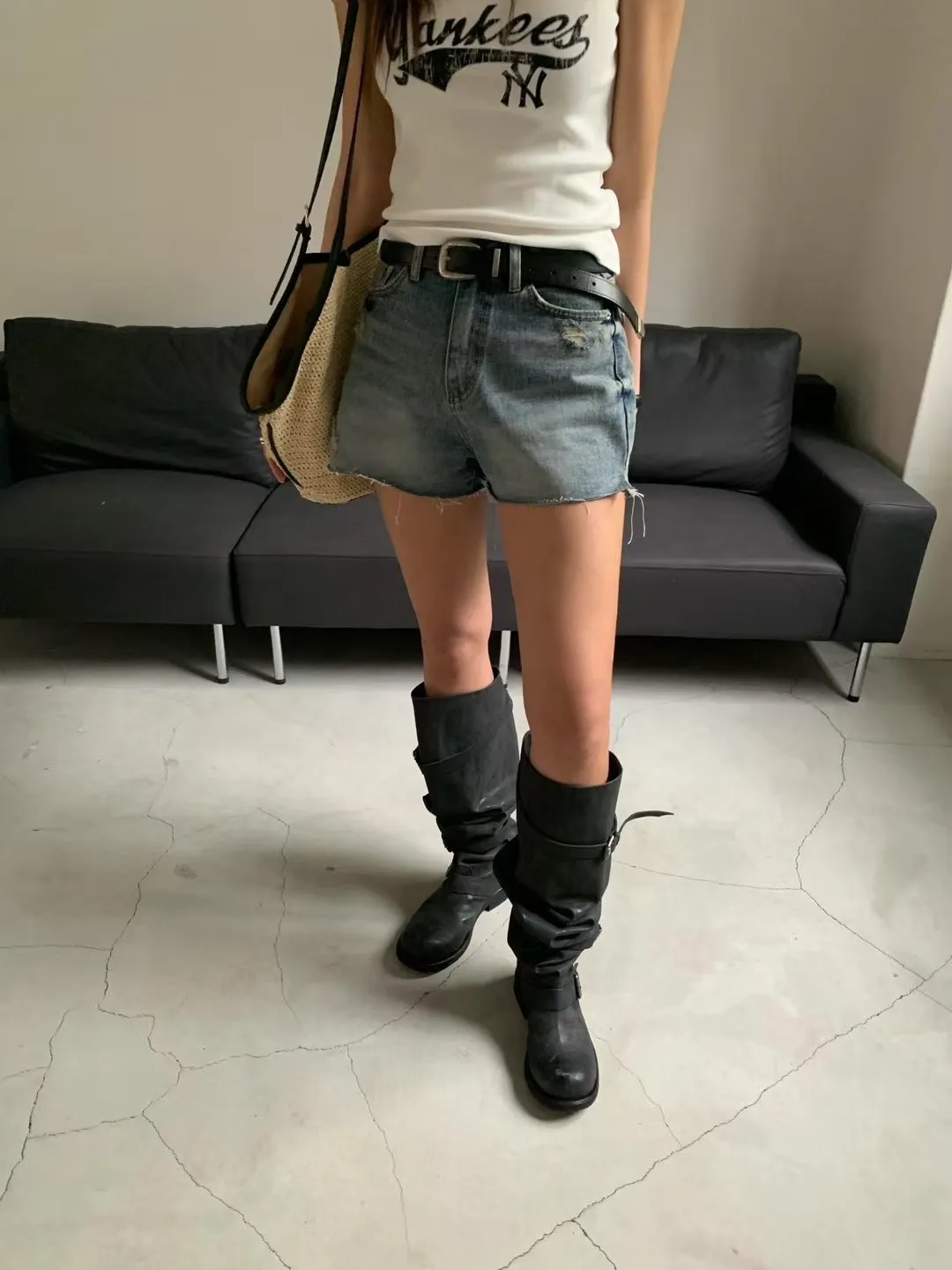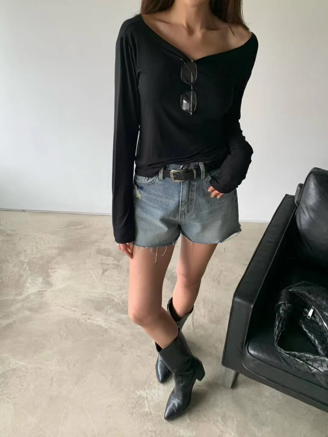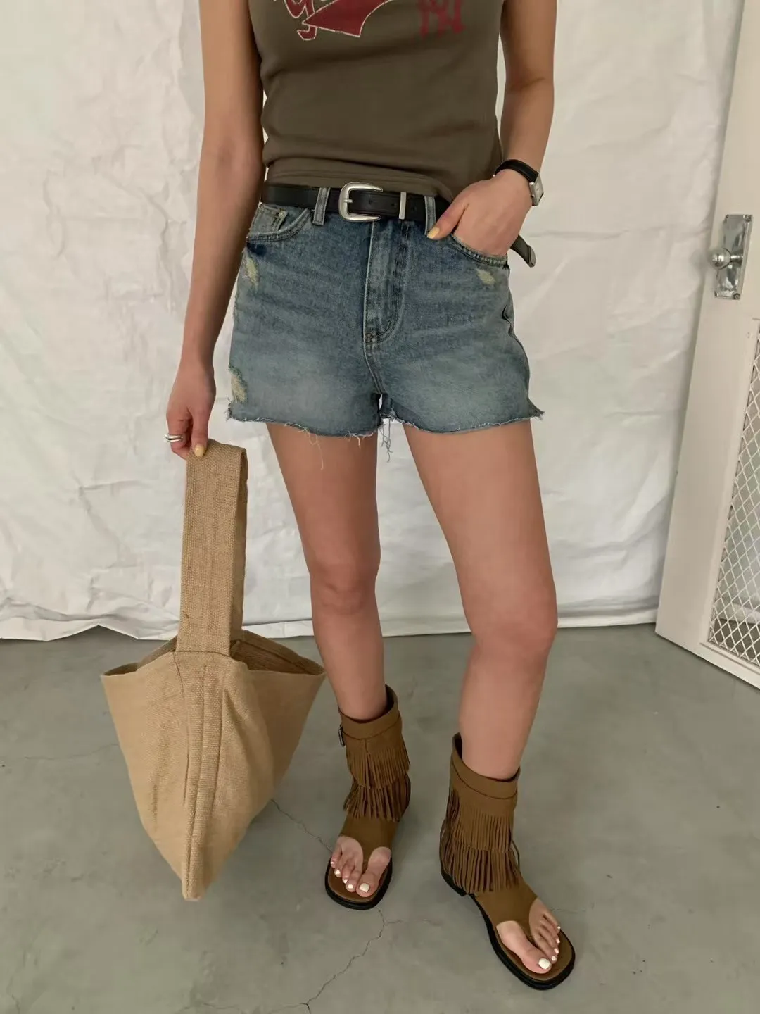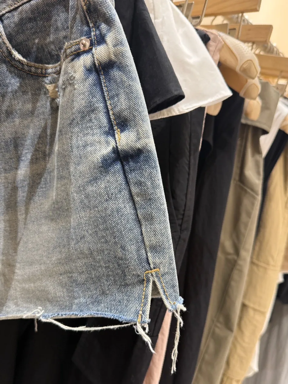 A7018 側開衩洗舊短褲