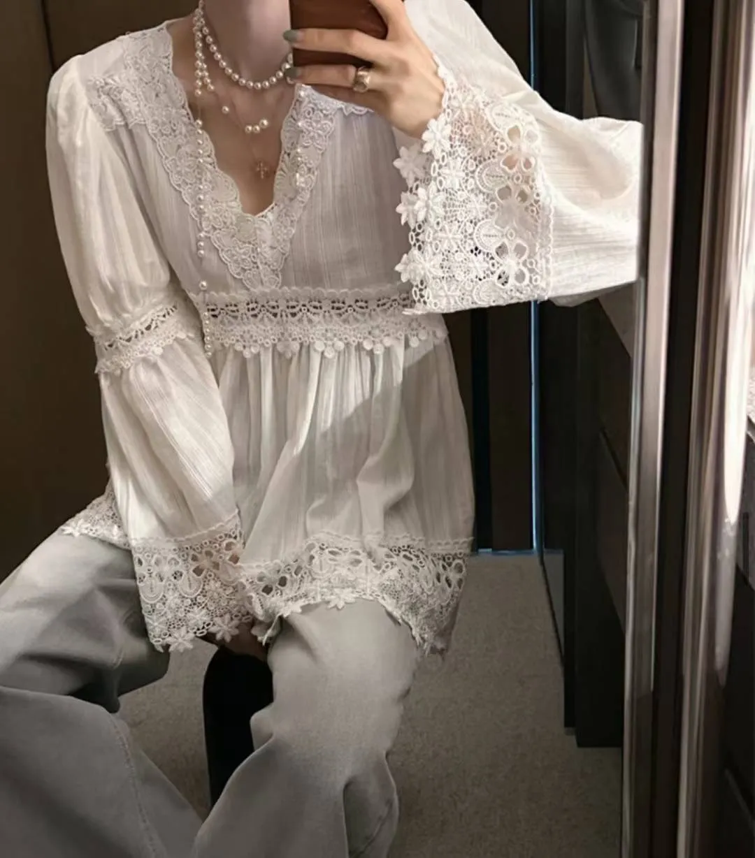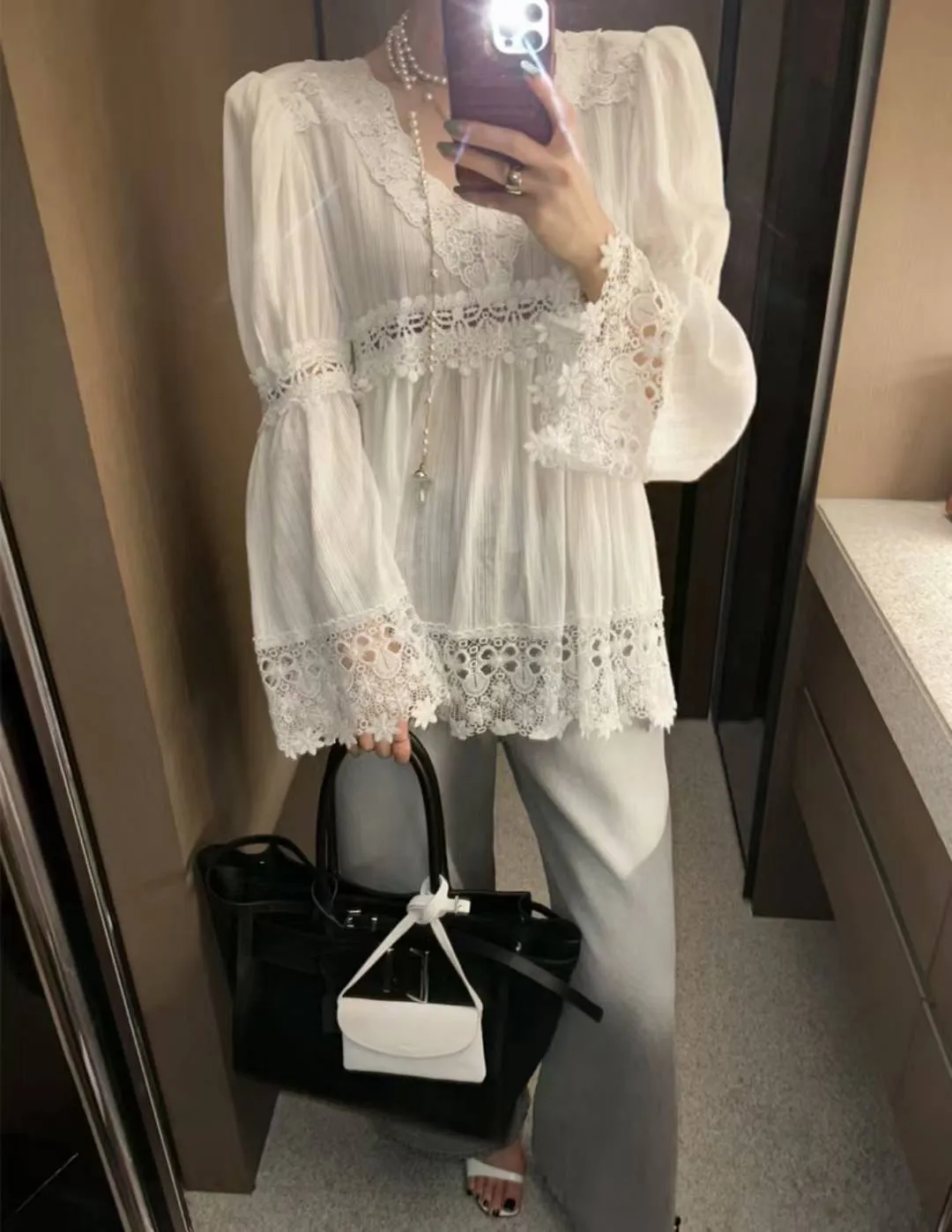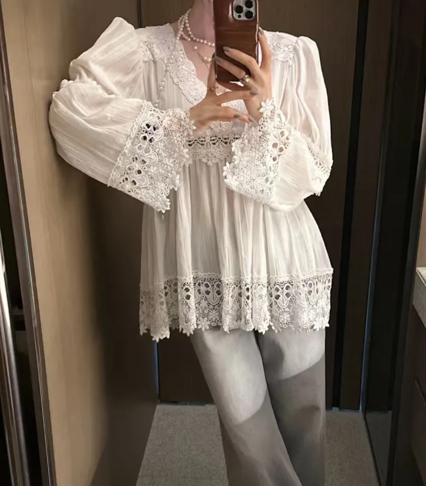 A7061 巴洛克緹花蕾絲絕美浪漫上衣