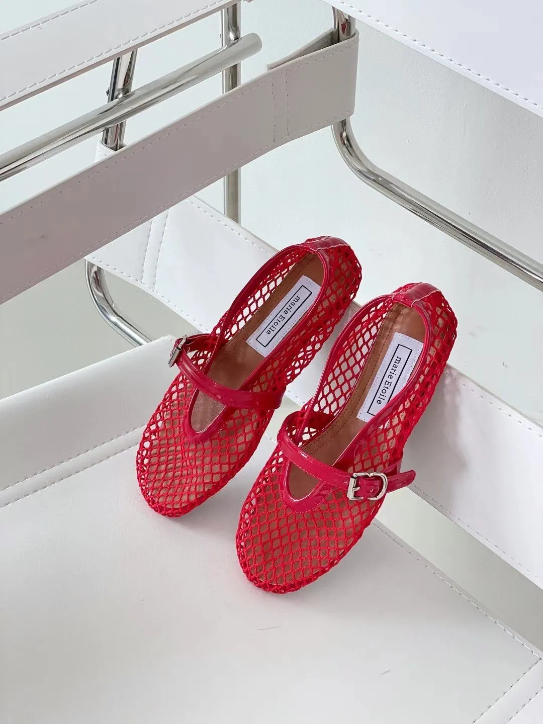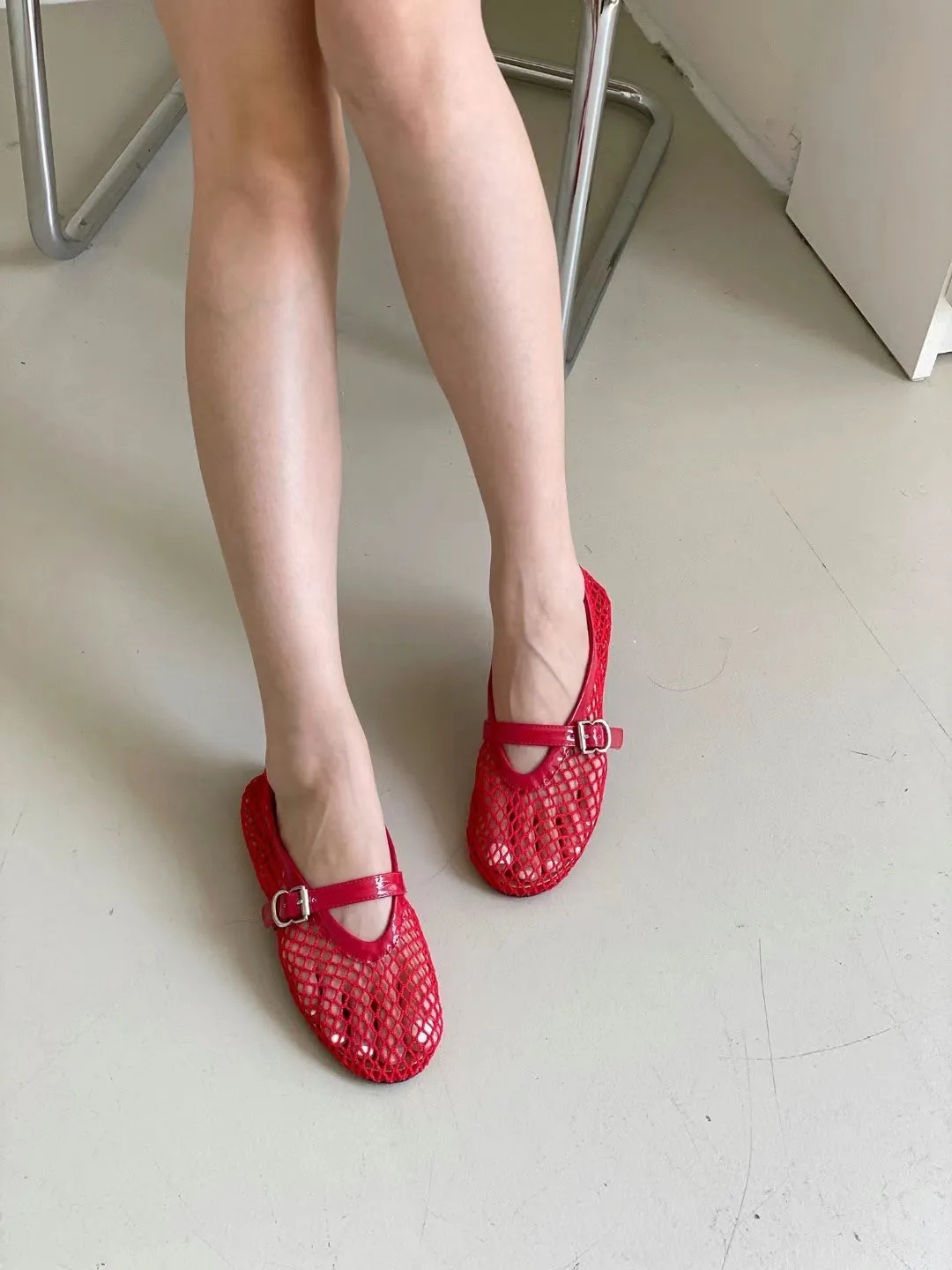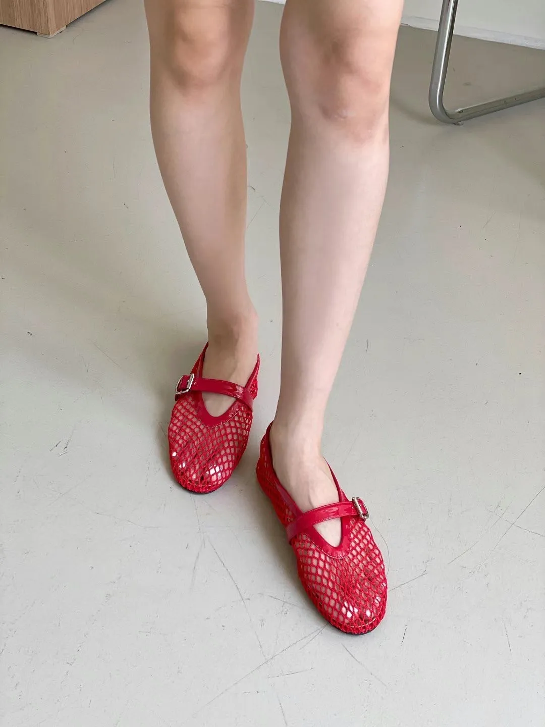 A7073 時髦不費力網網平底鞋 老闆娘大愛紅色