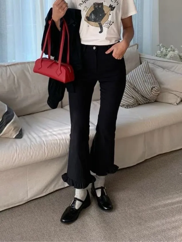 A8033 花邊厚磅顯瘦九分褲