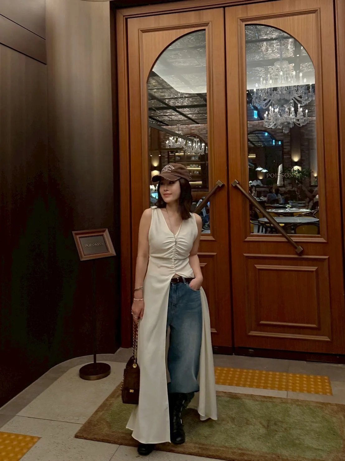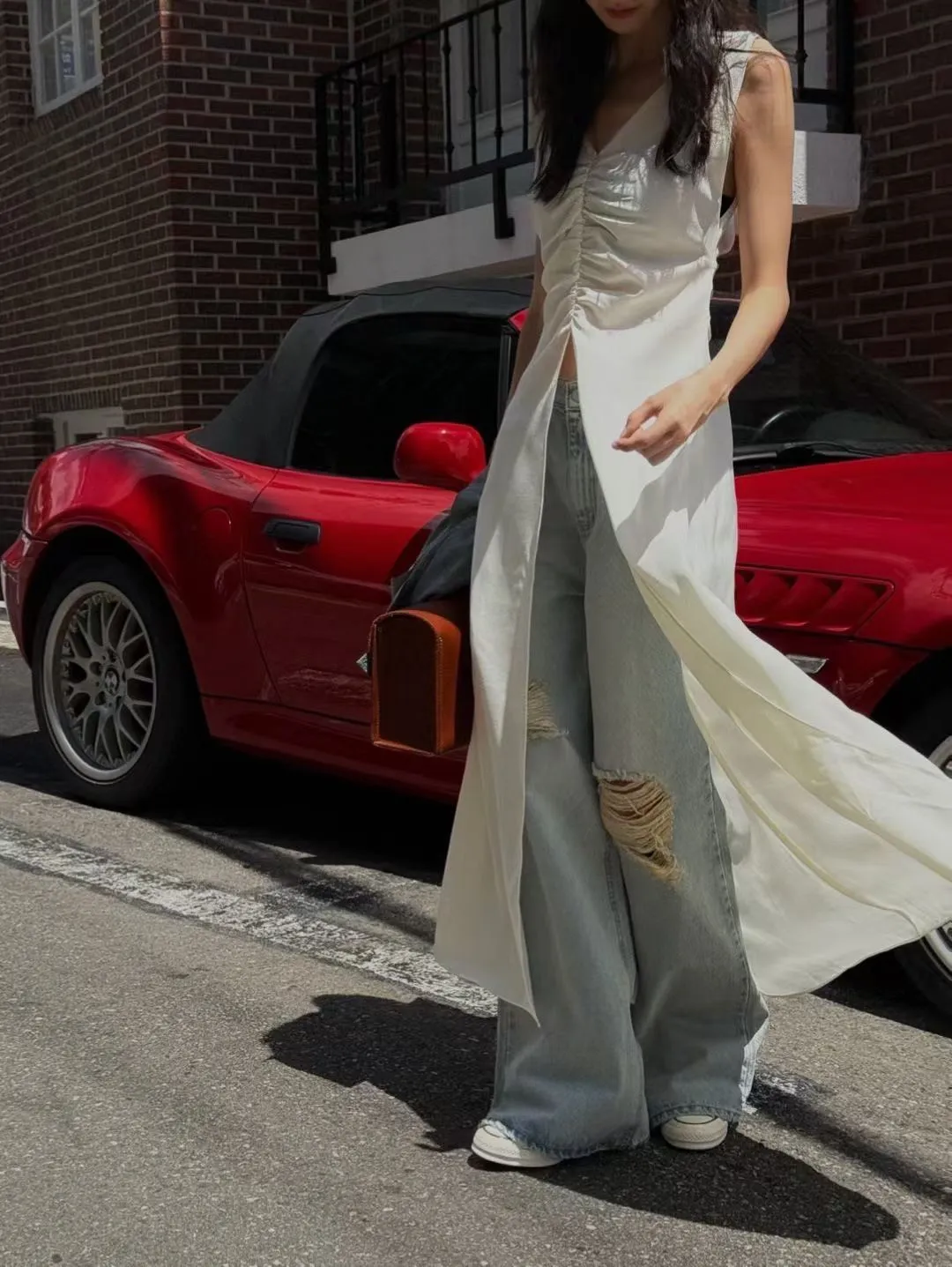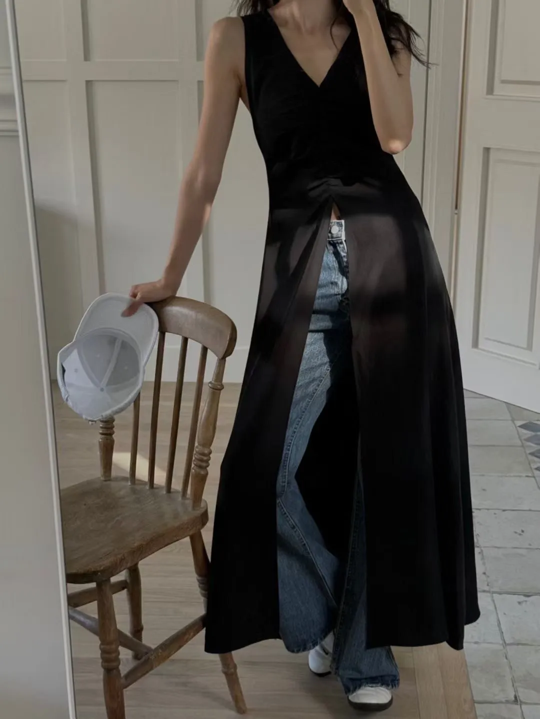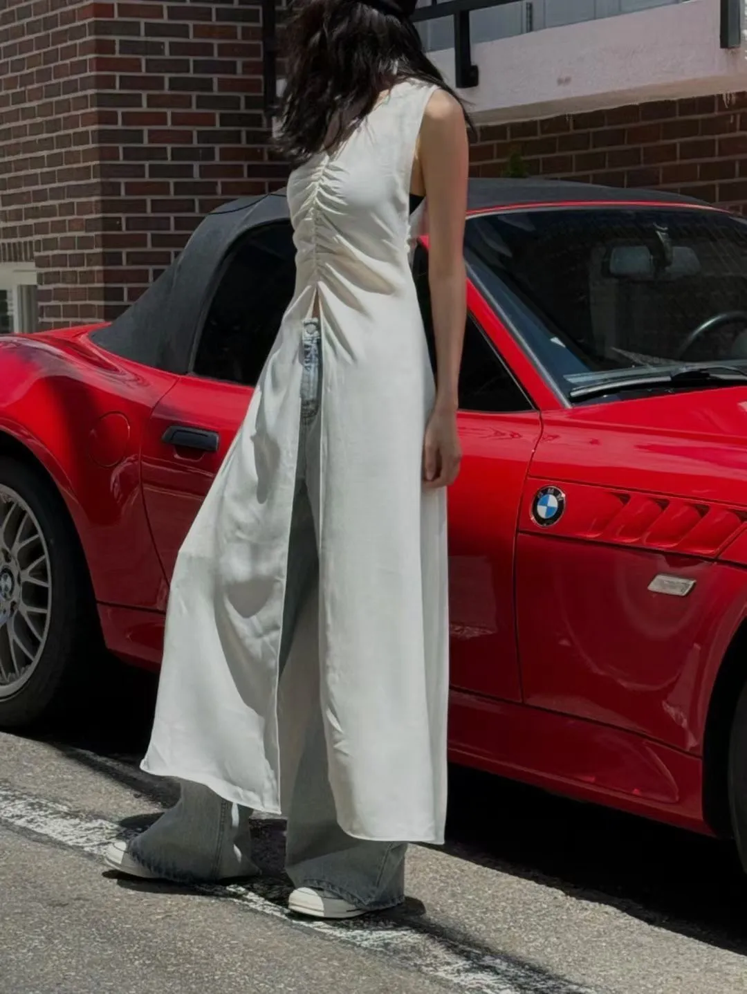 A8068 自帶氣場 修身抓皺開衩長洋裝