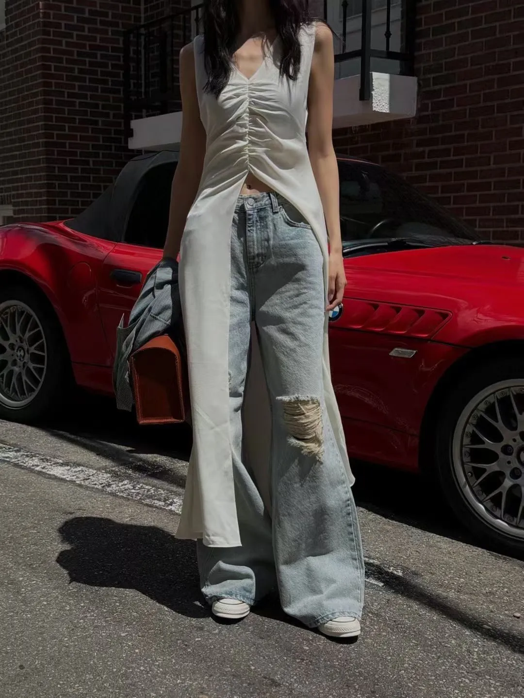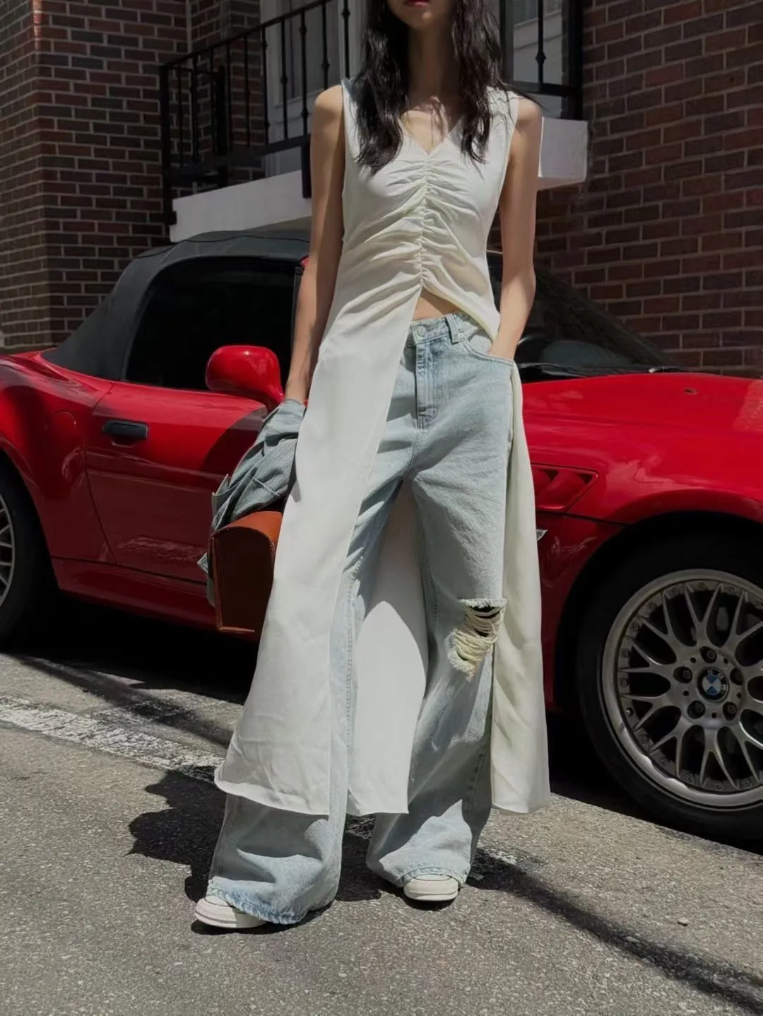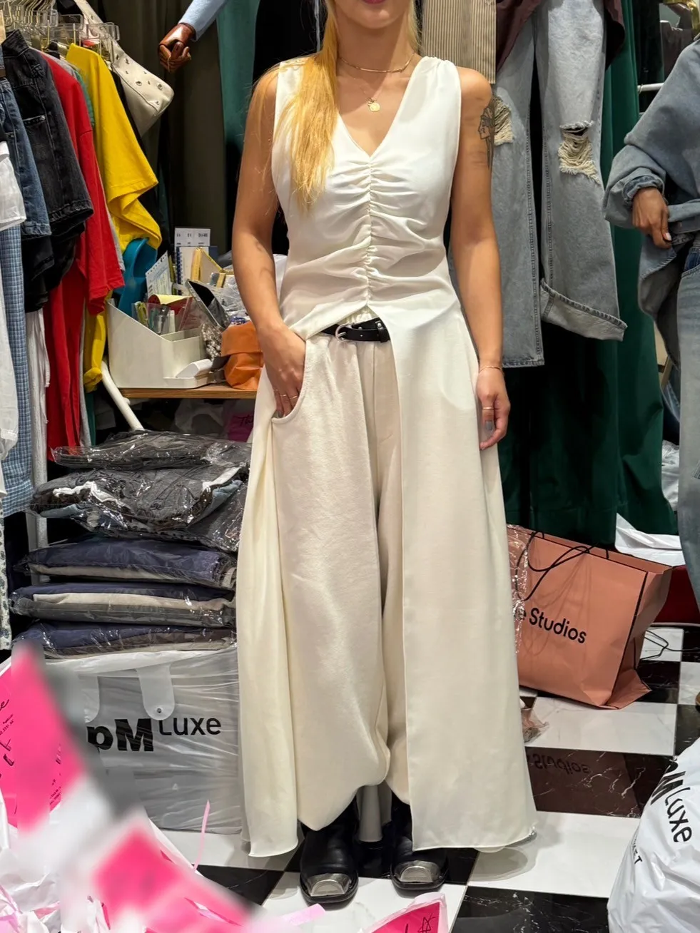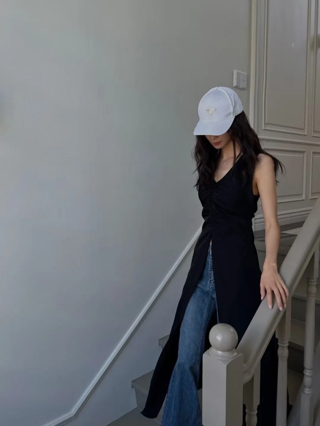 A8068 自帶氣場 修身抓皺開衩長洋裝