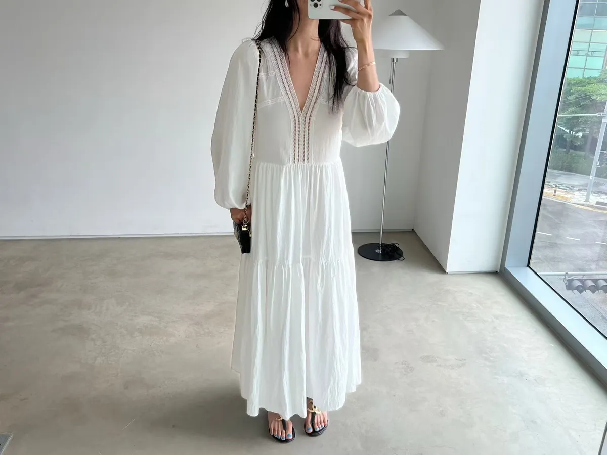 A8084 性感歐美鏤空Y長洋裝