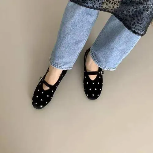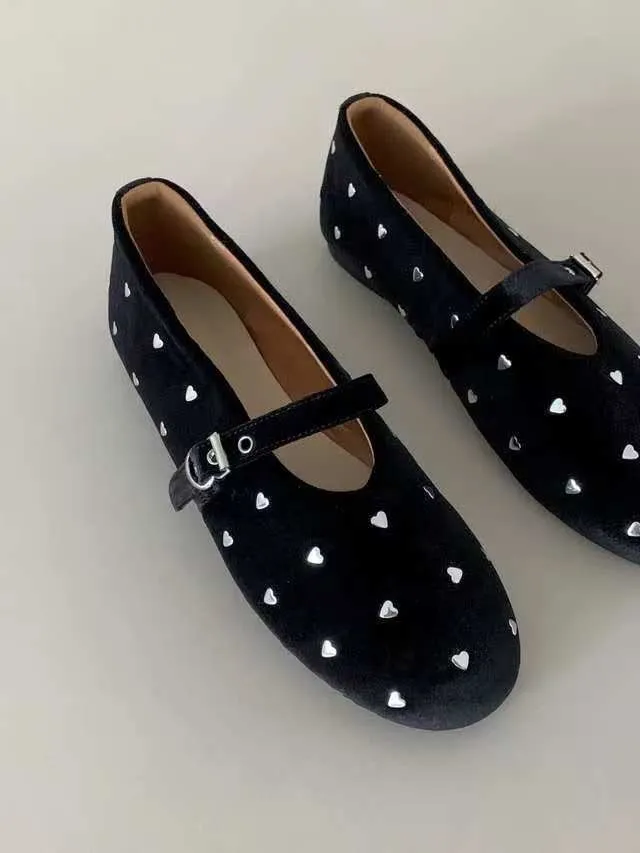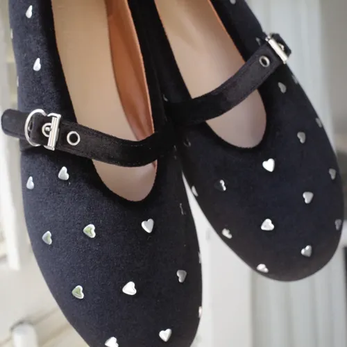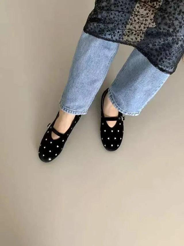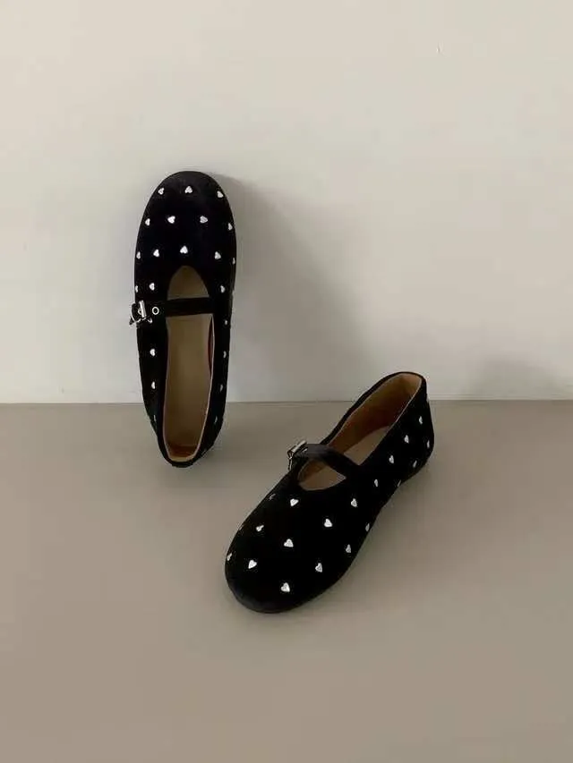 A9060愛心絨面圓頭娃娃鞋