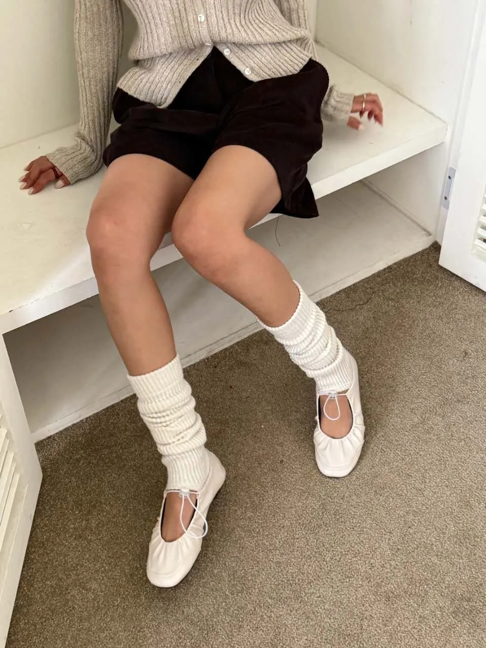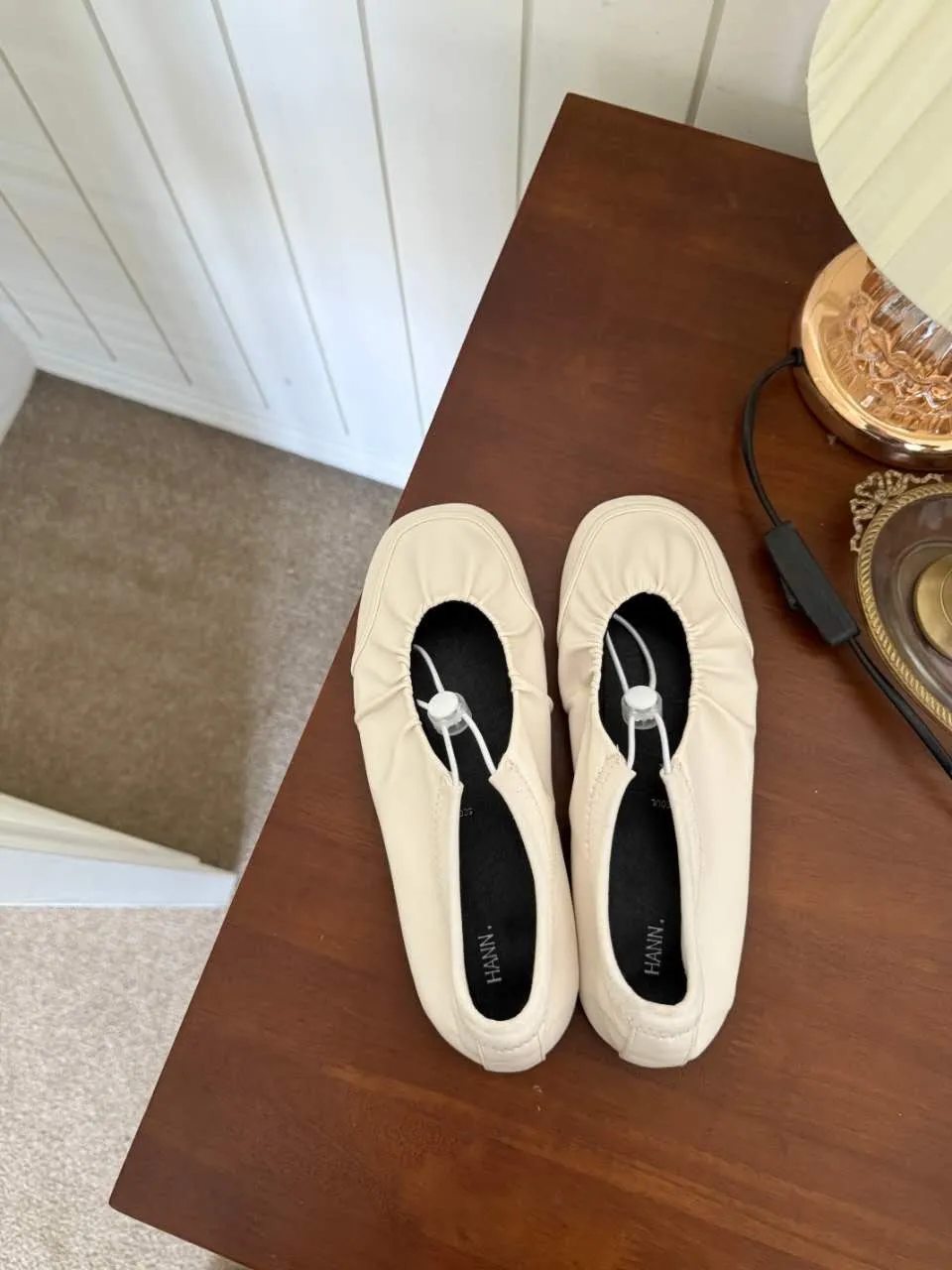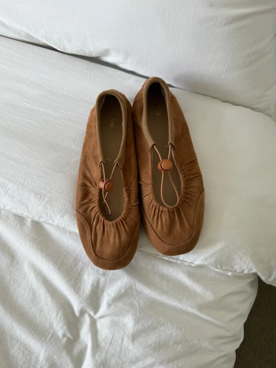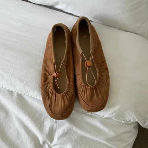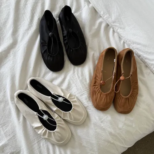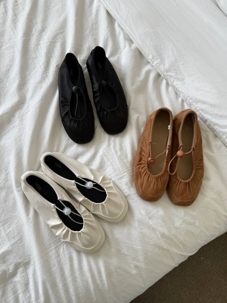 A9061 黑-緞面光/棕色-麂皮絨/白-皮革質感 抽繩平底娃娃鞋