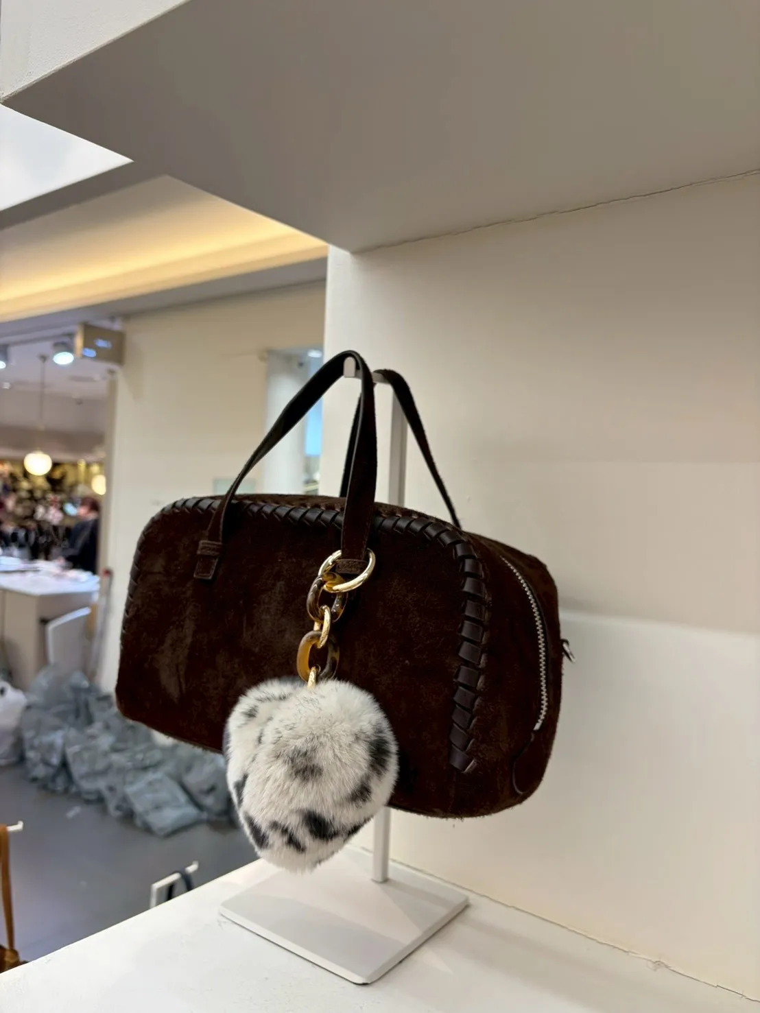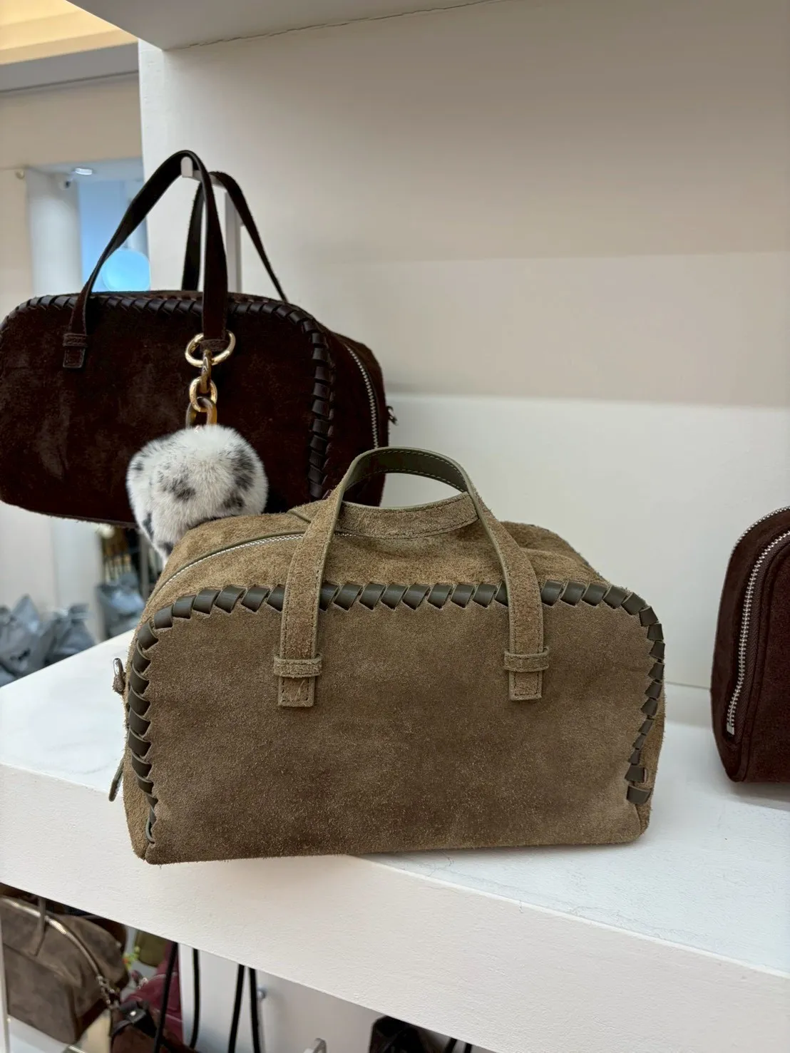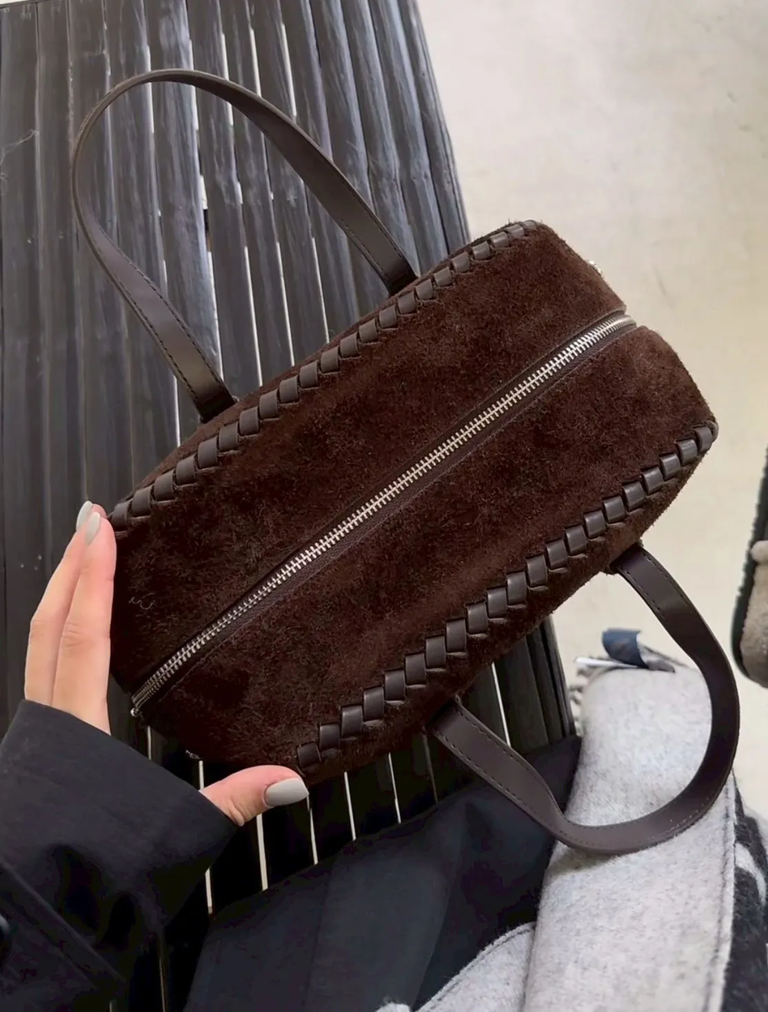 B1001 時髦編織麂皮波士頓包(附背帶)