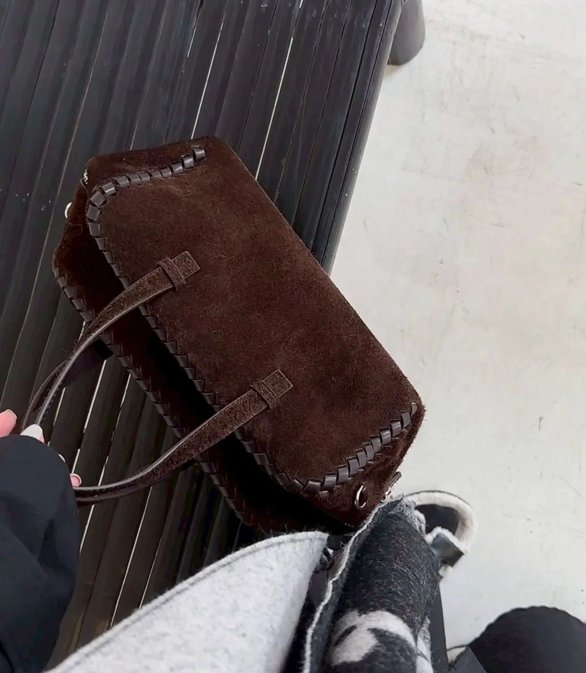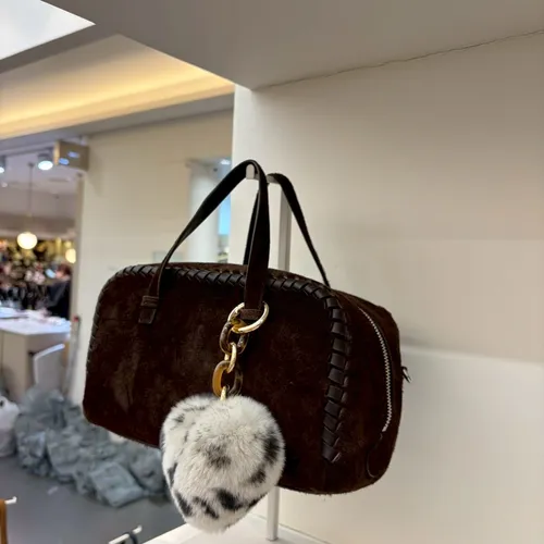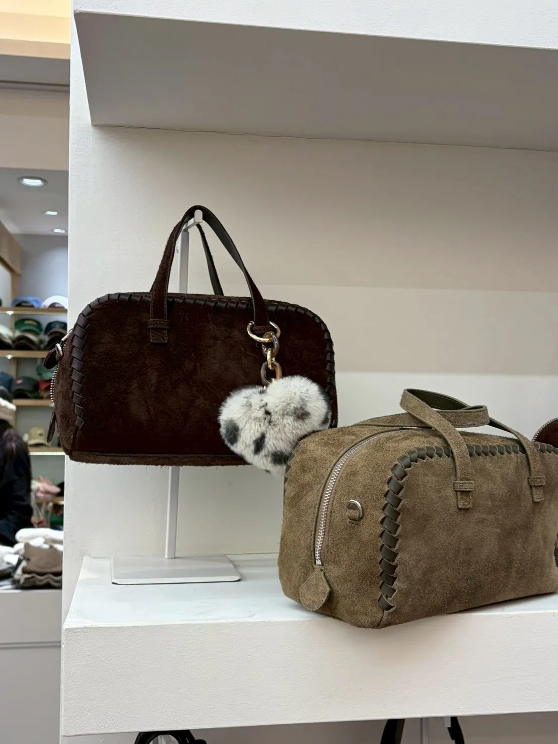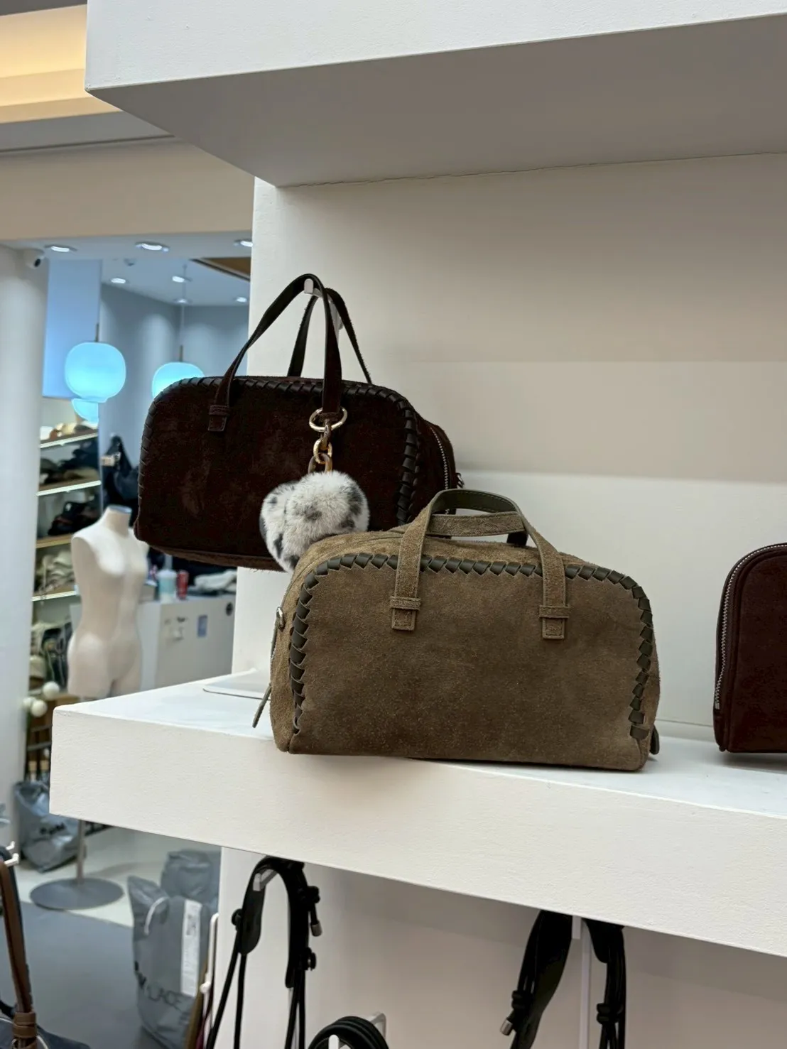 B1001 時髦編織麂皮波士頓包(附背帶)