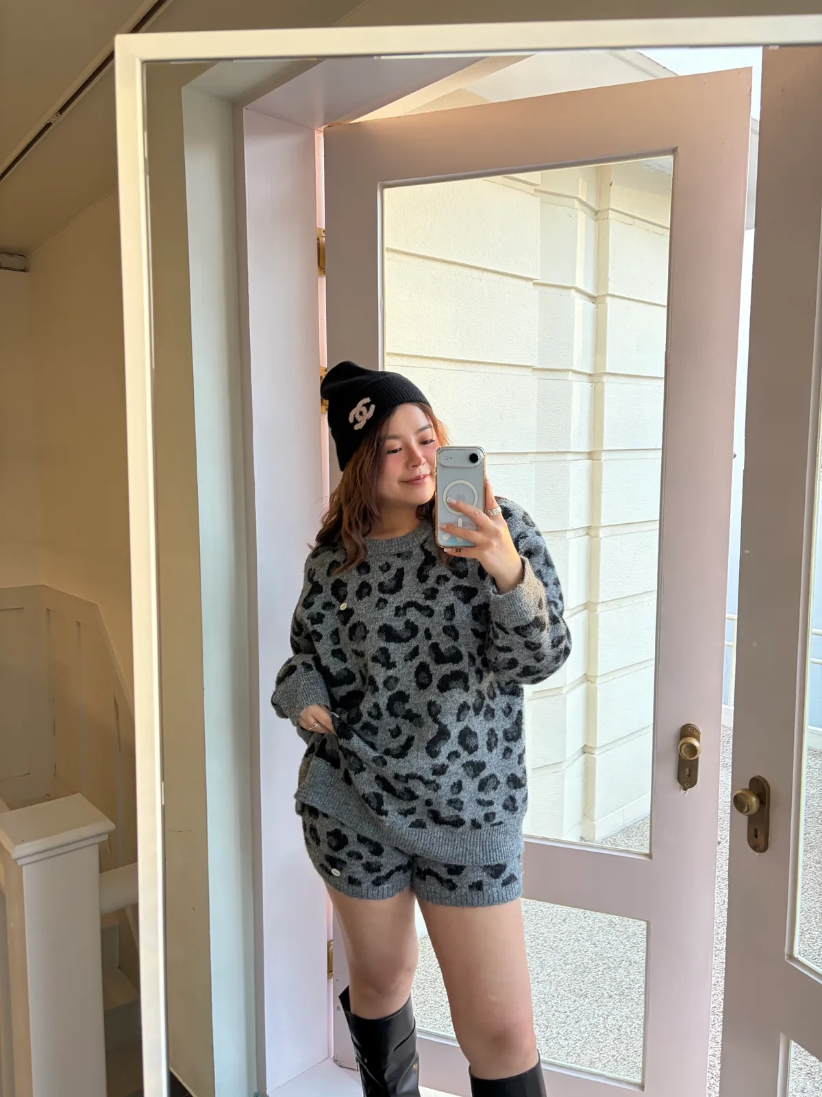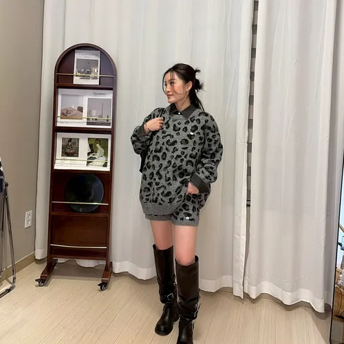 B1012 cosy豹紋針織套裝set