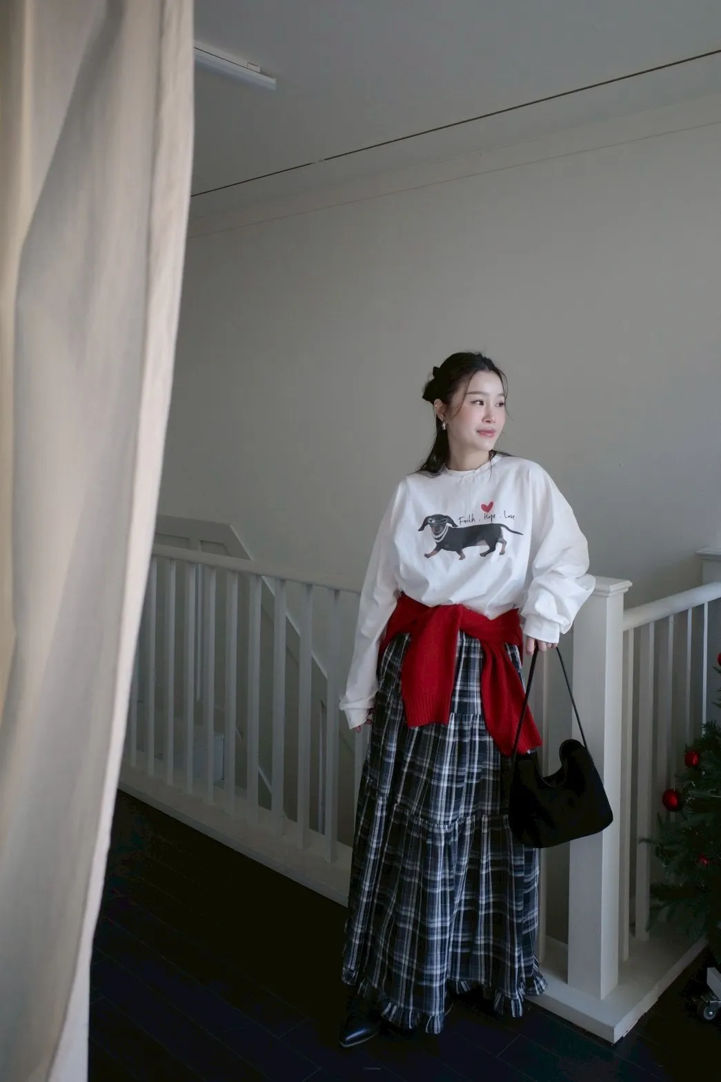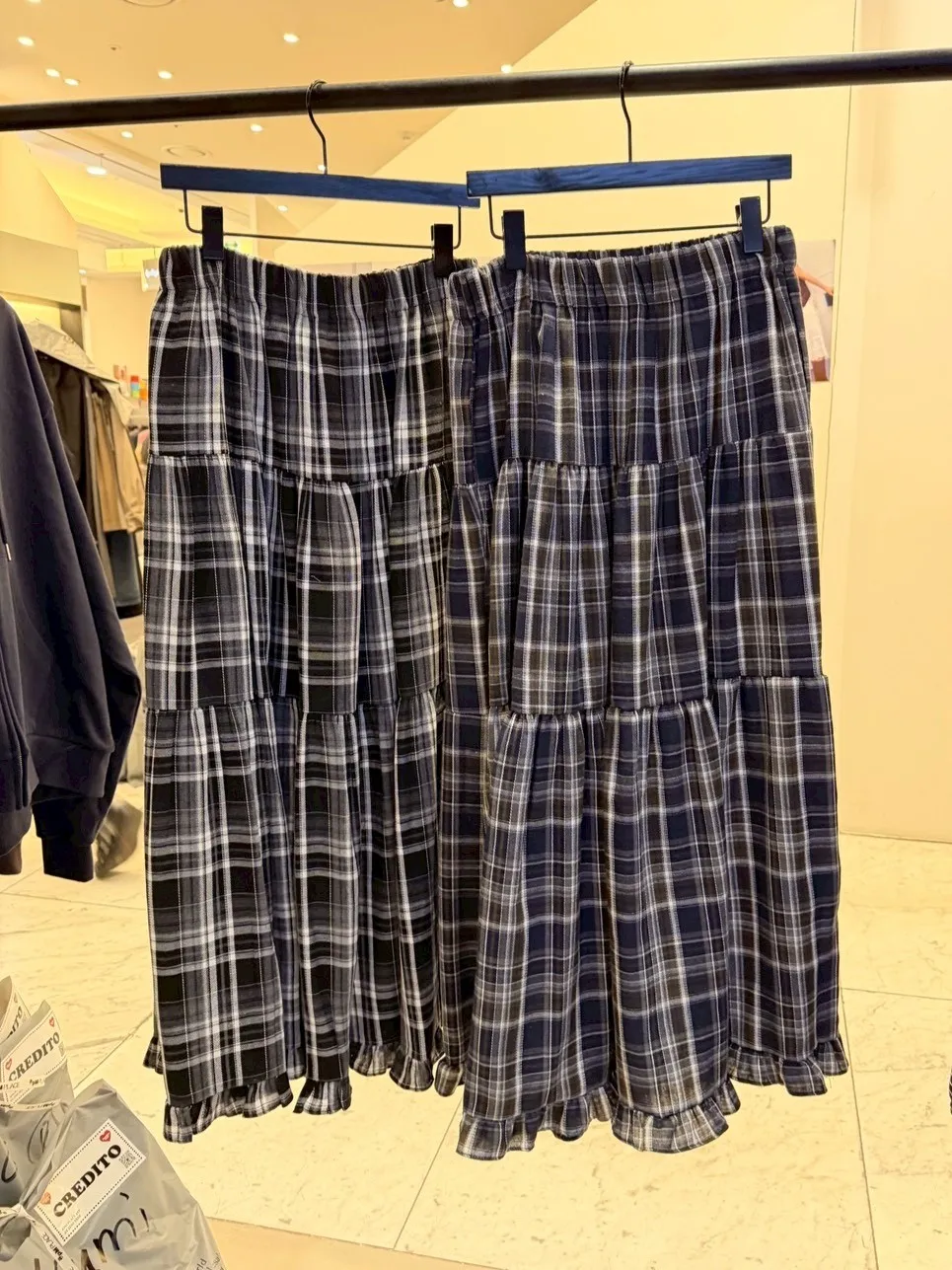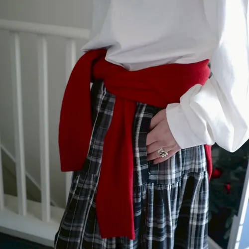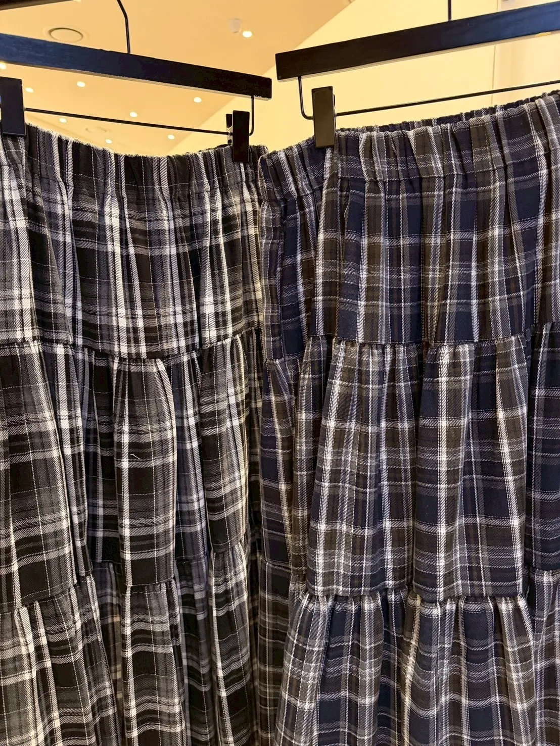 B1040 格紋波浪滾邊口袋彈性長裙