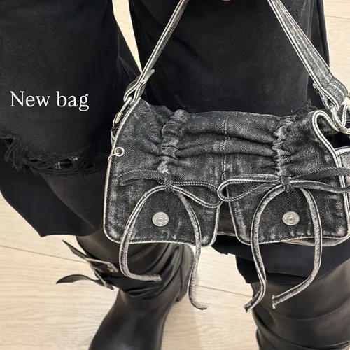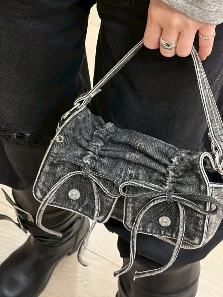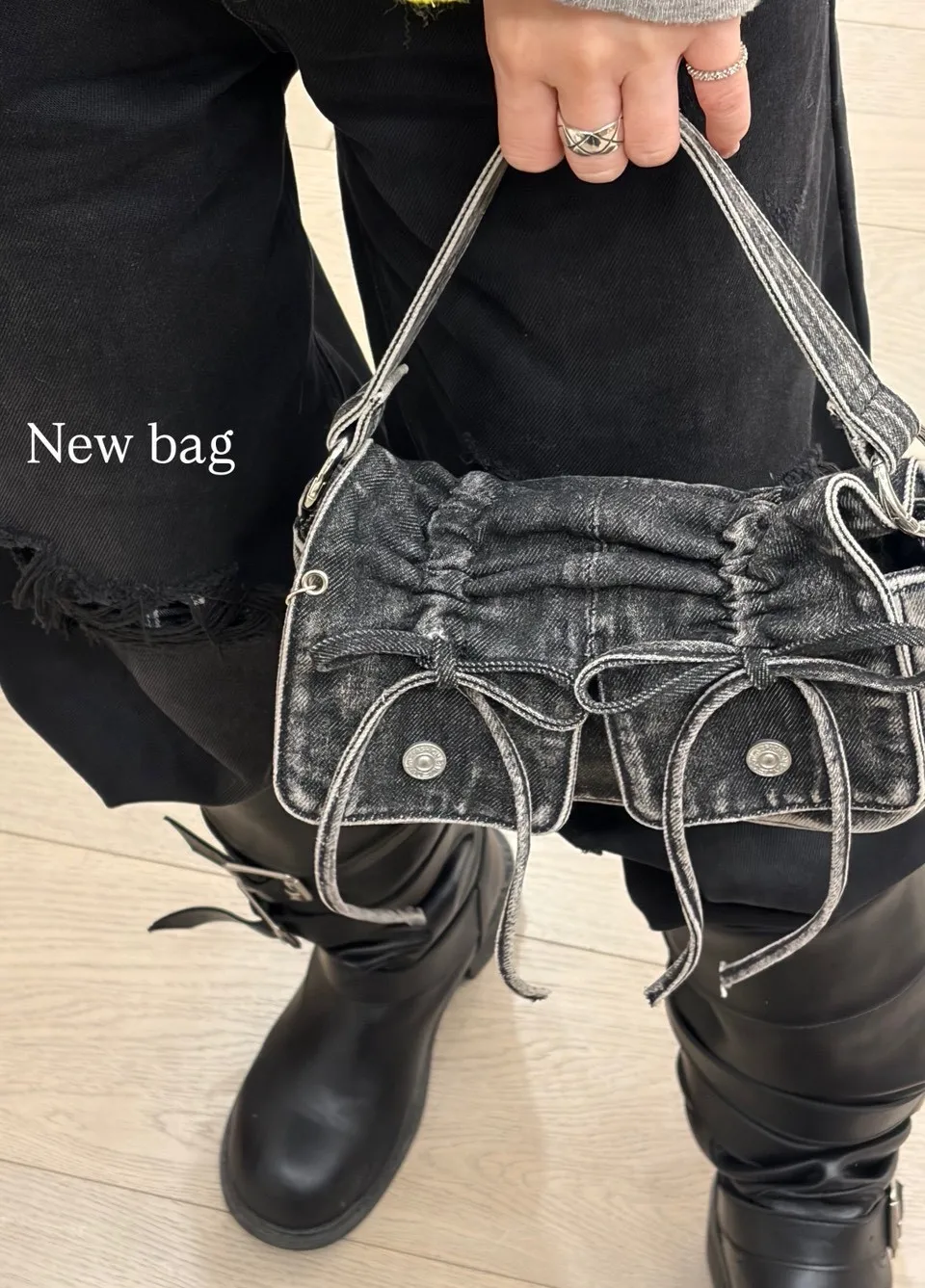 B1066 小時髦牛仔蝴蝶結包(附背帶)