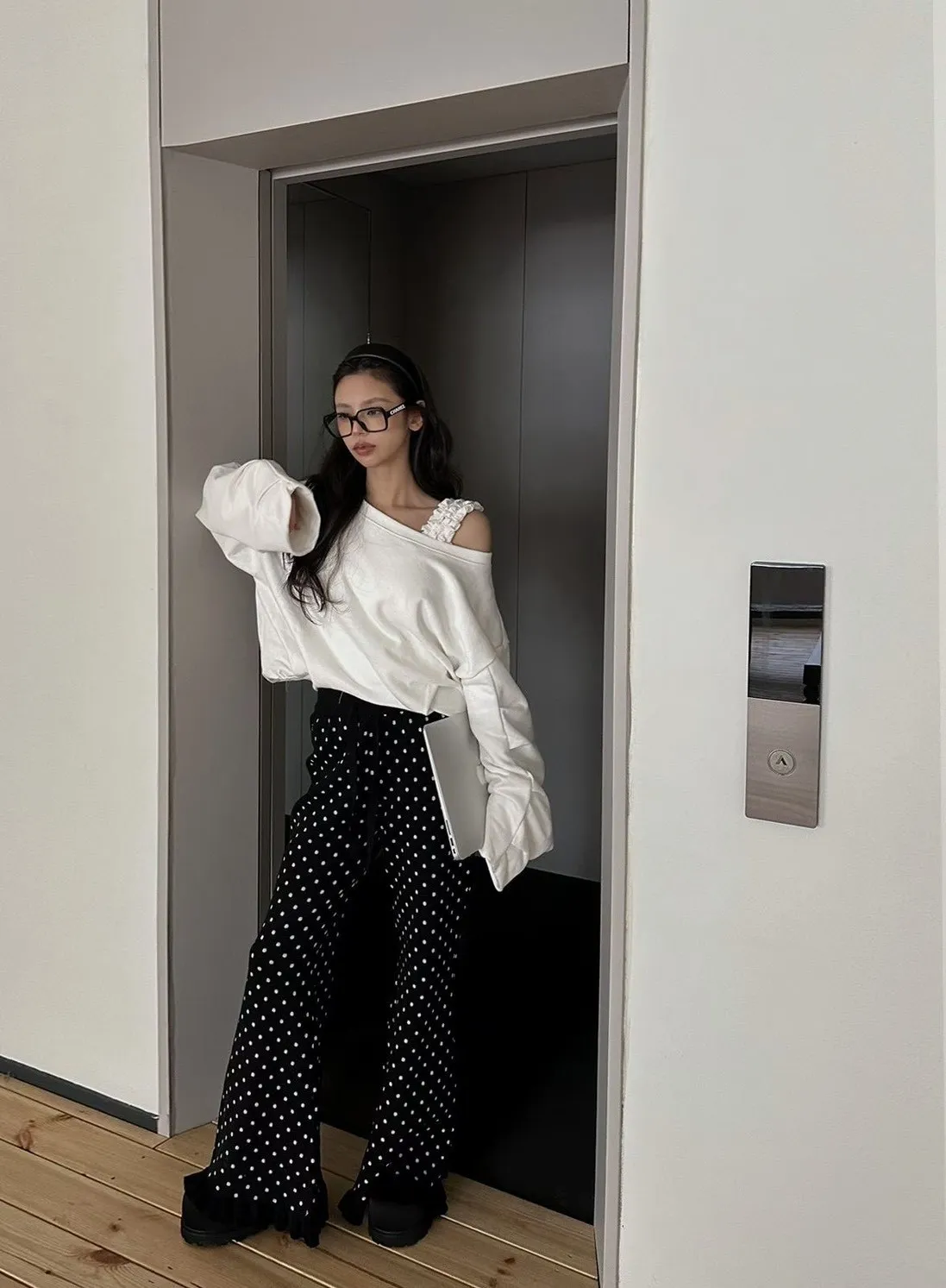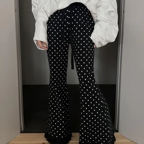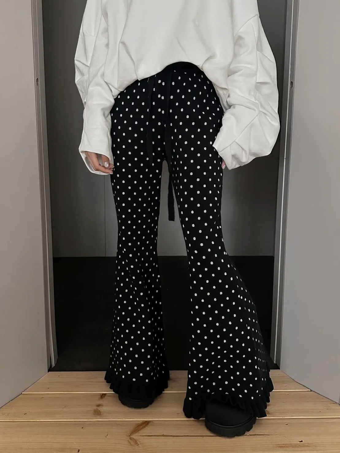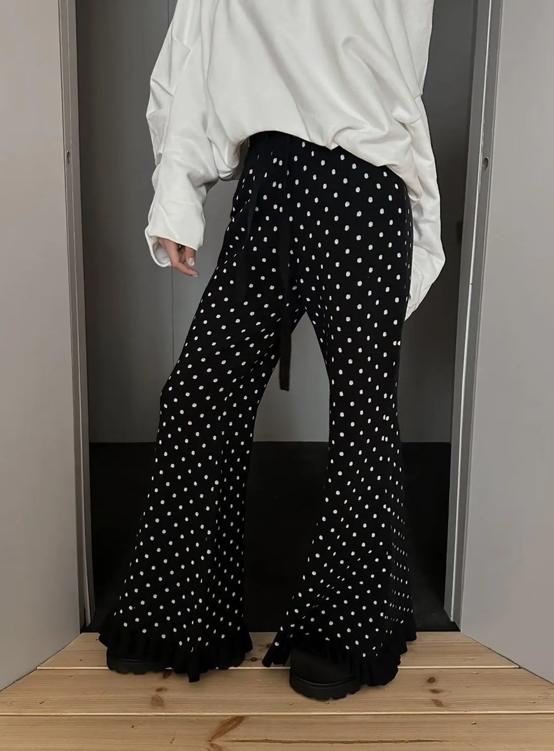 B1101 點點針織花邊褲