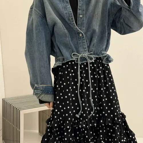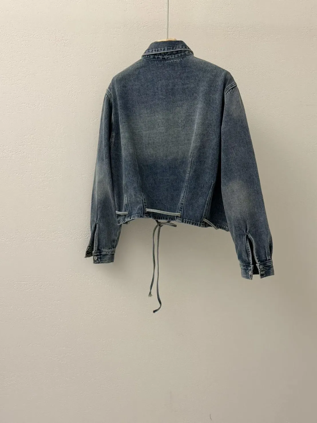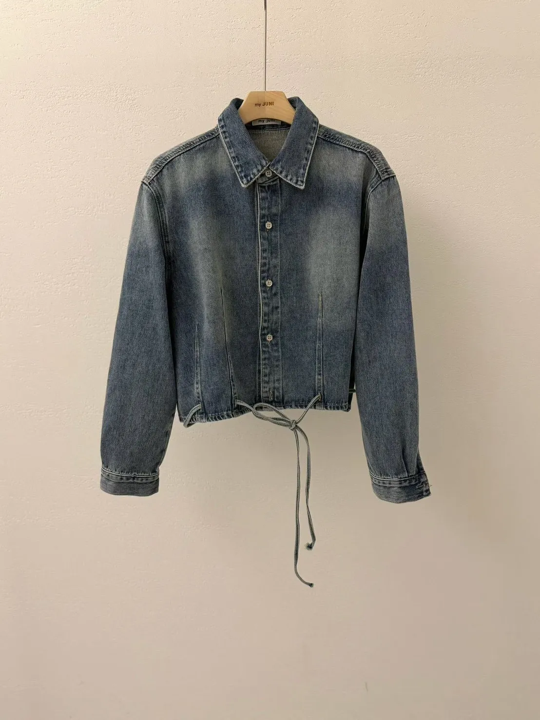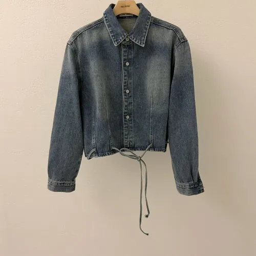 B1104 洗舊色設計感綁帶牛仔襯衫