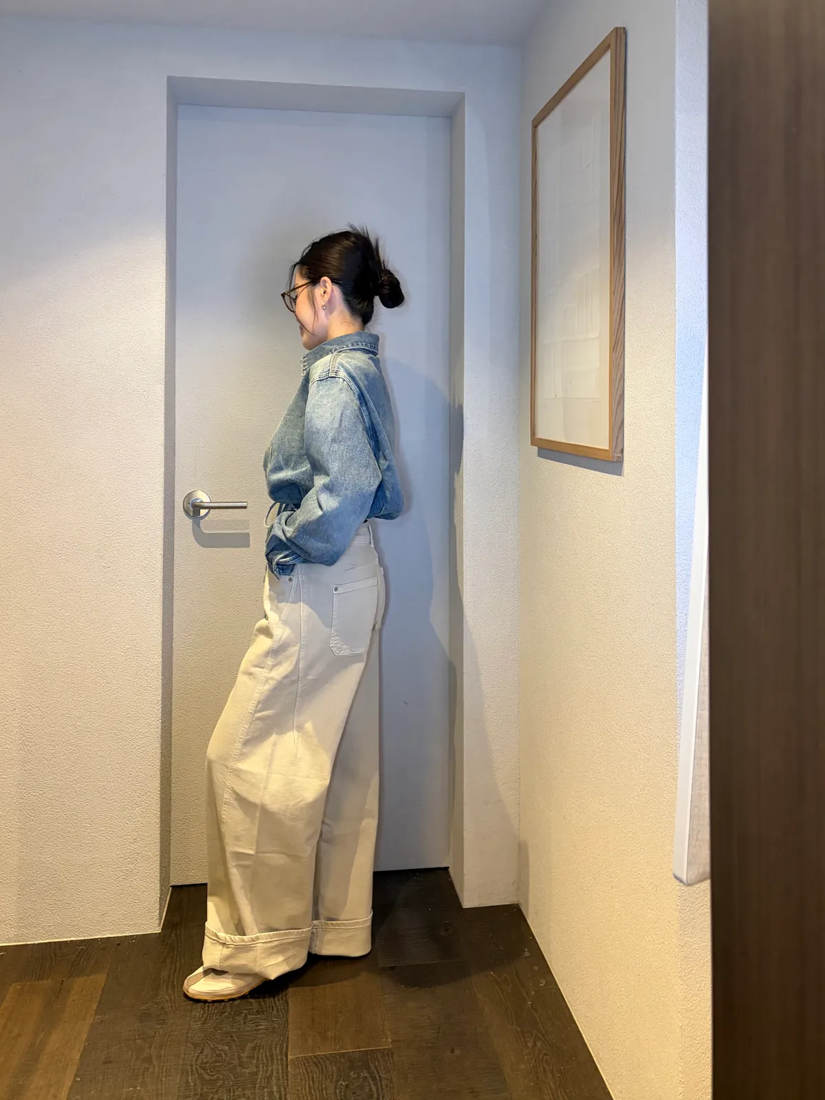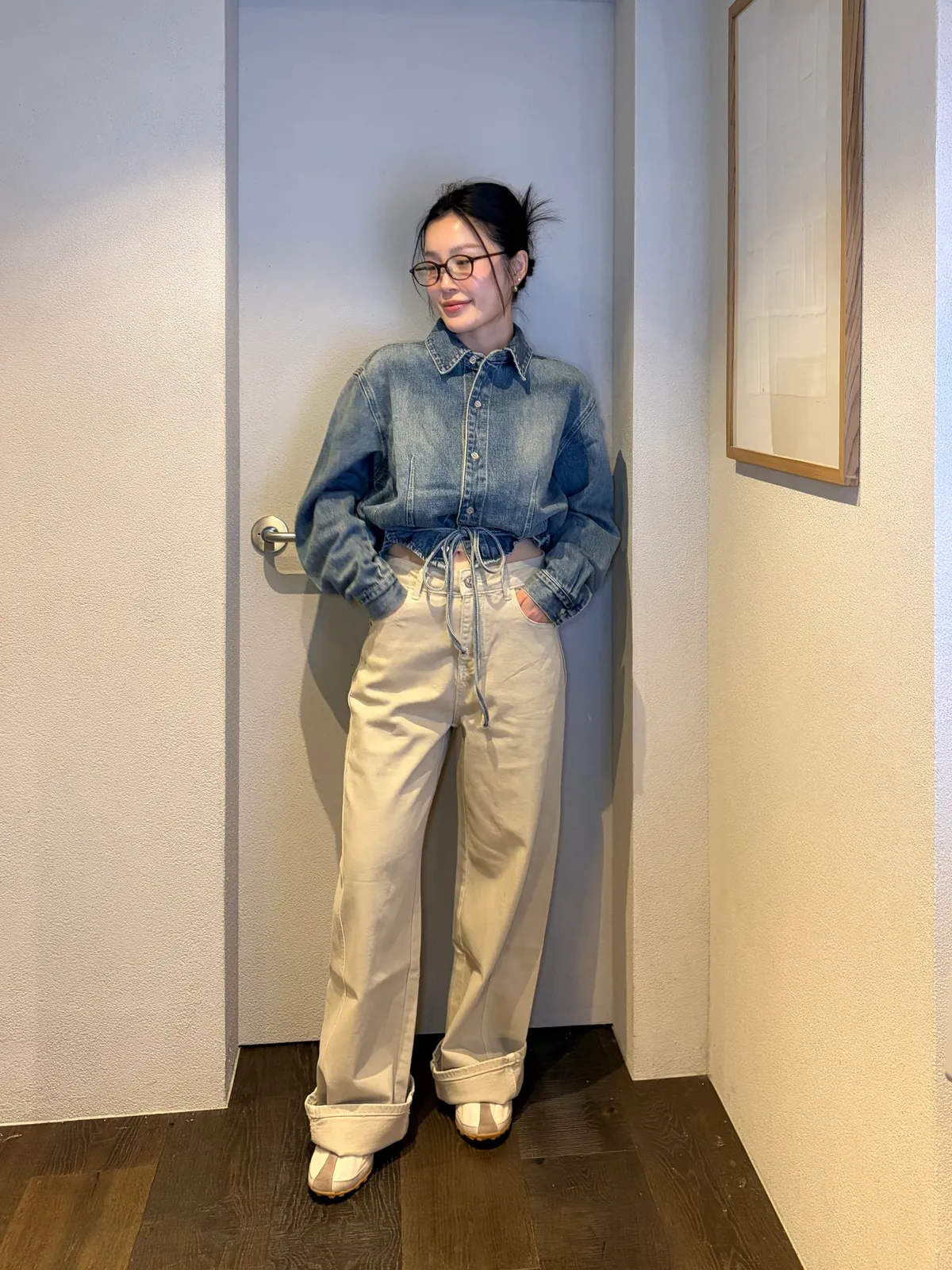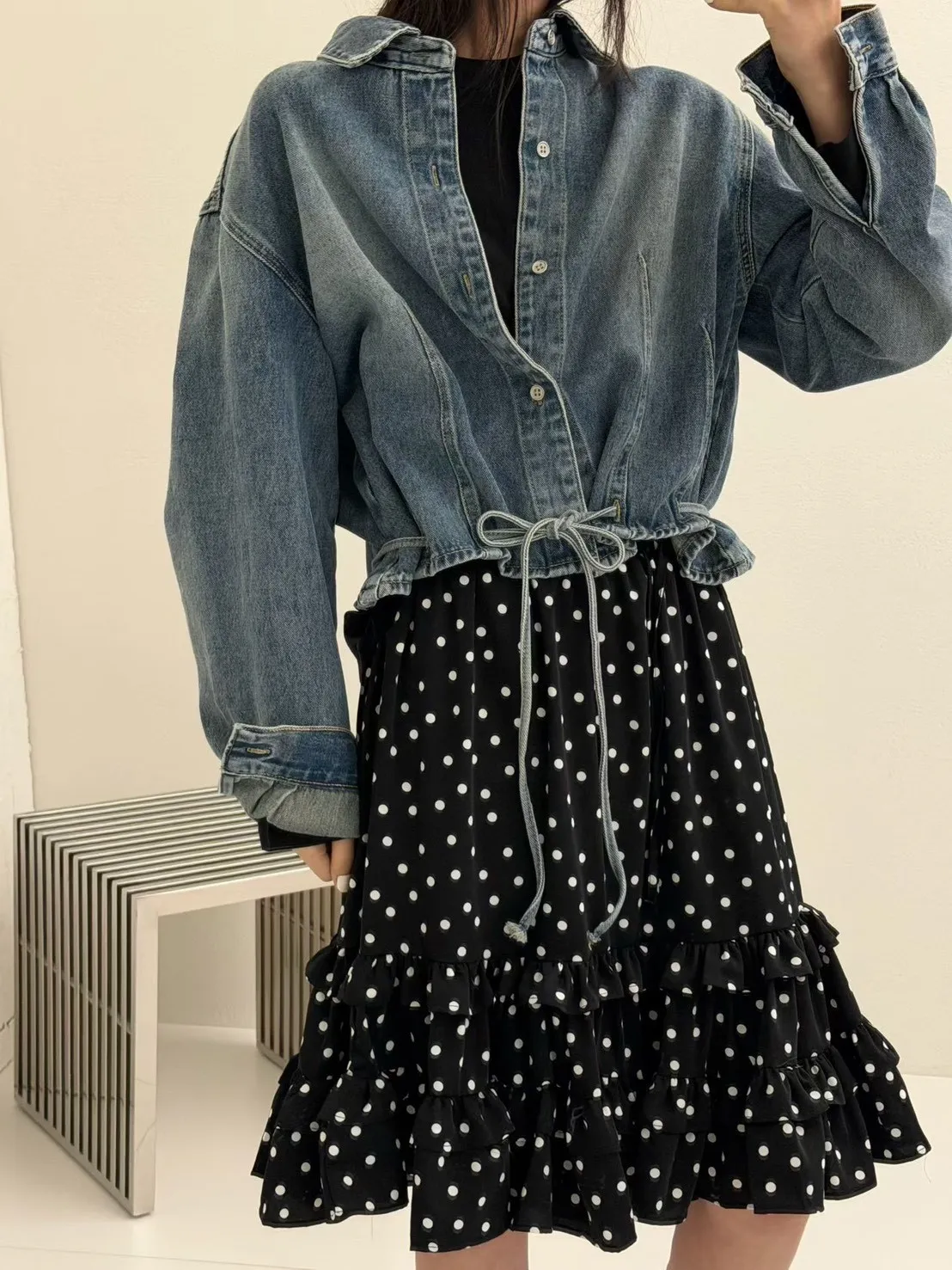 B1104 洗舊色設計感綁帶牛仔襯衫
