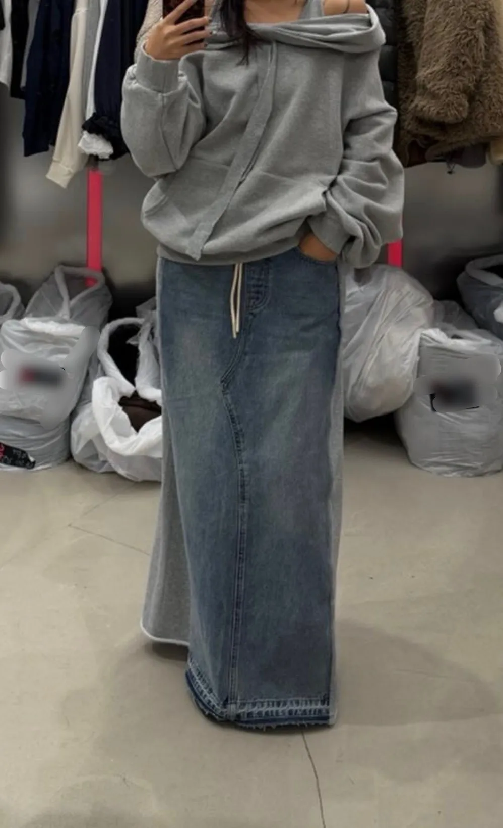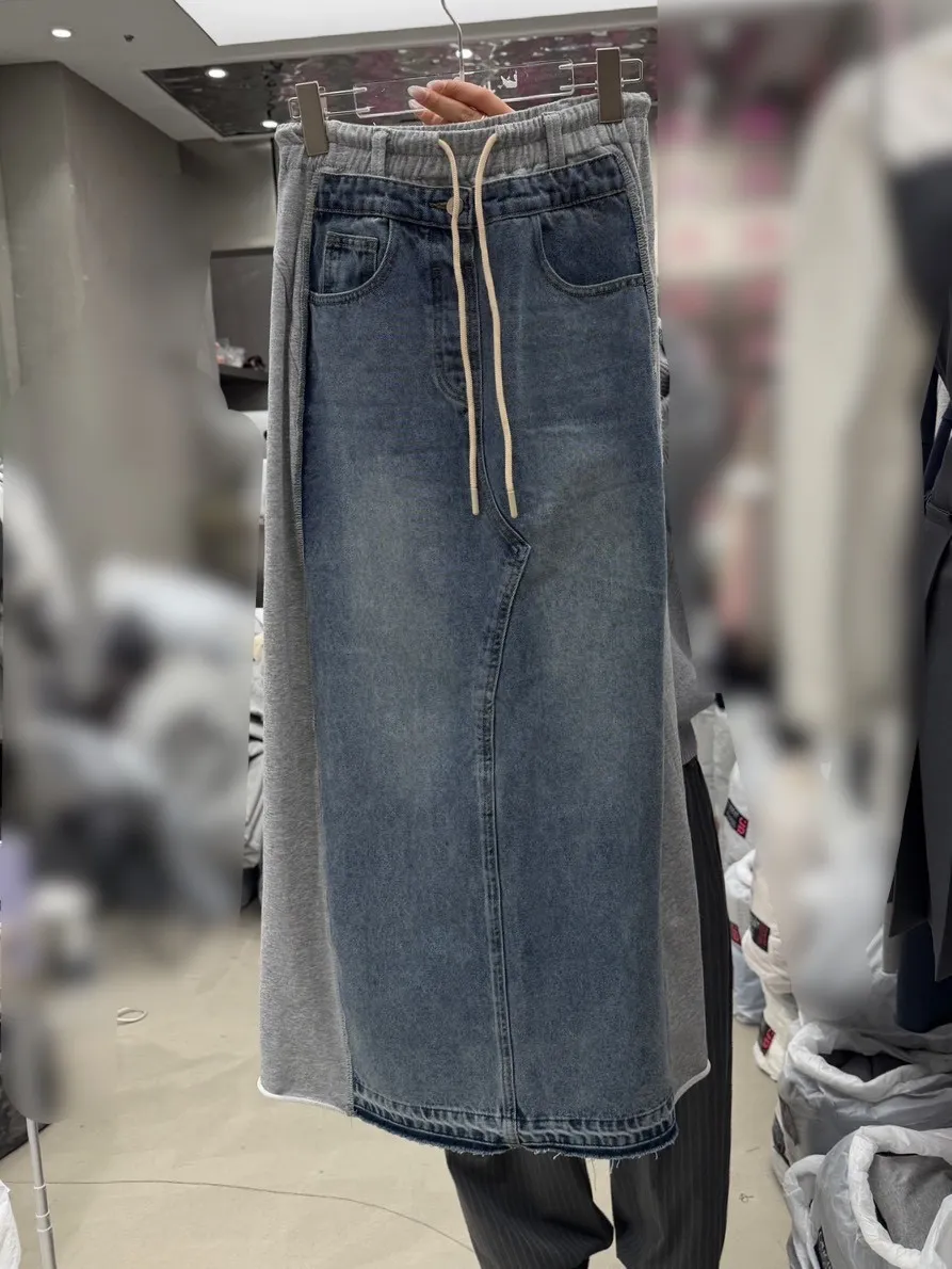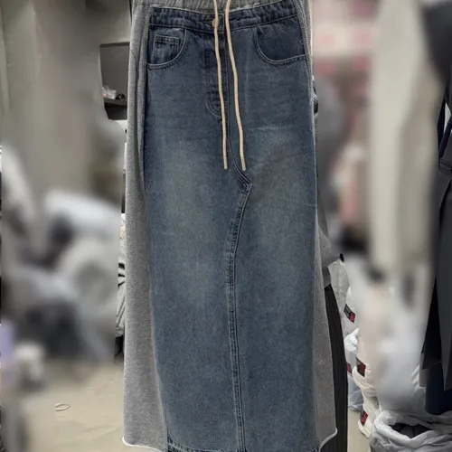 B1118 拼棉料牛仔裙