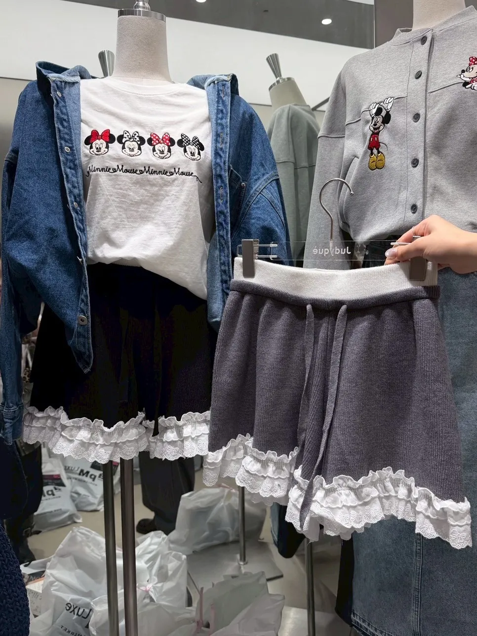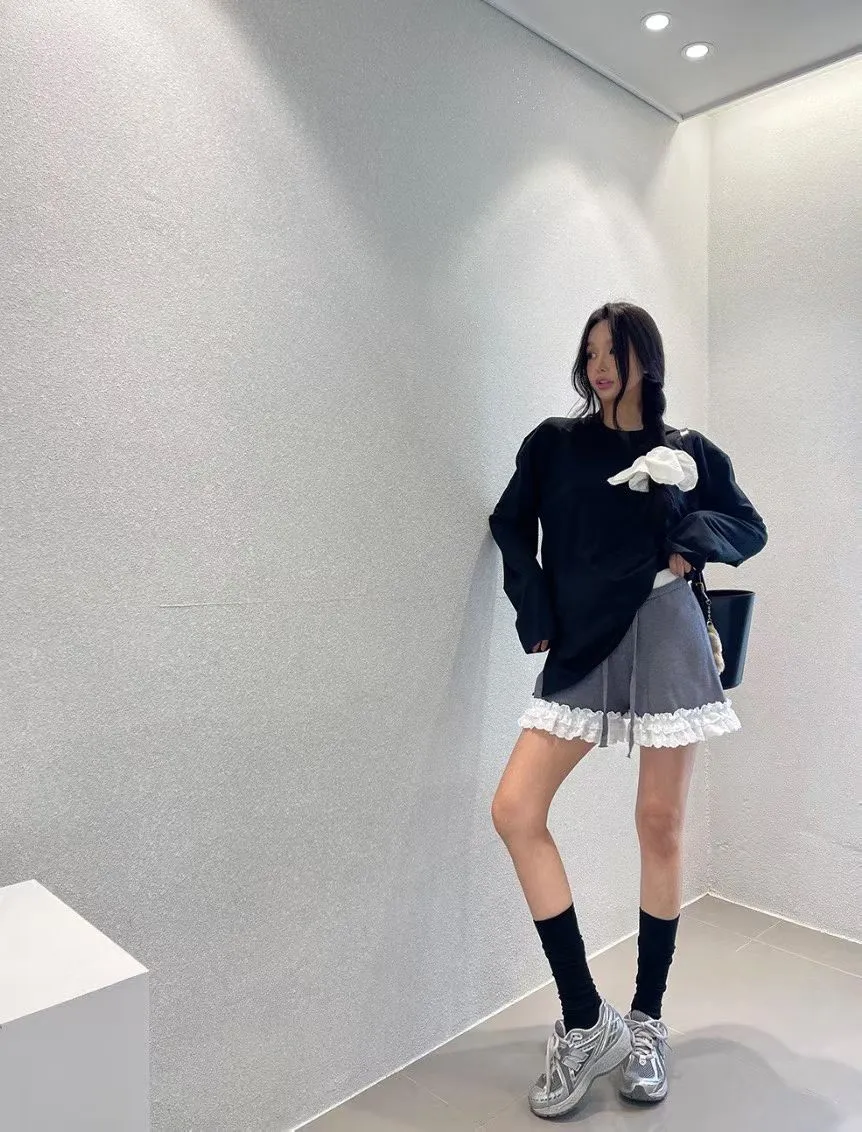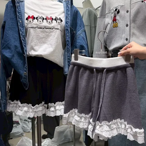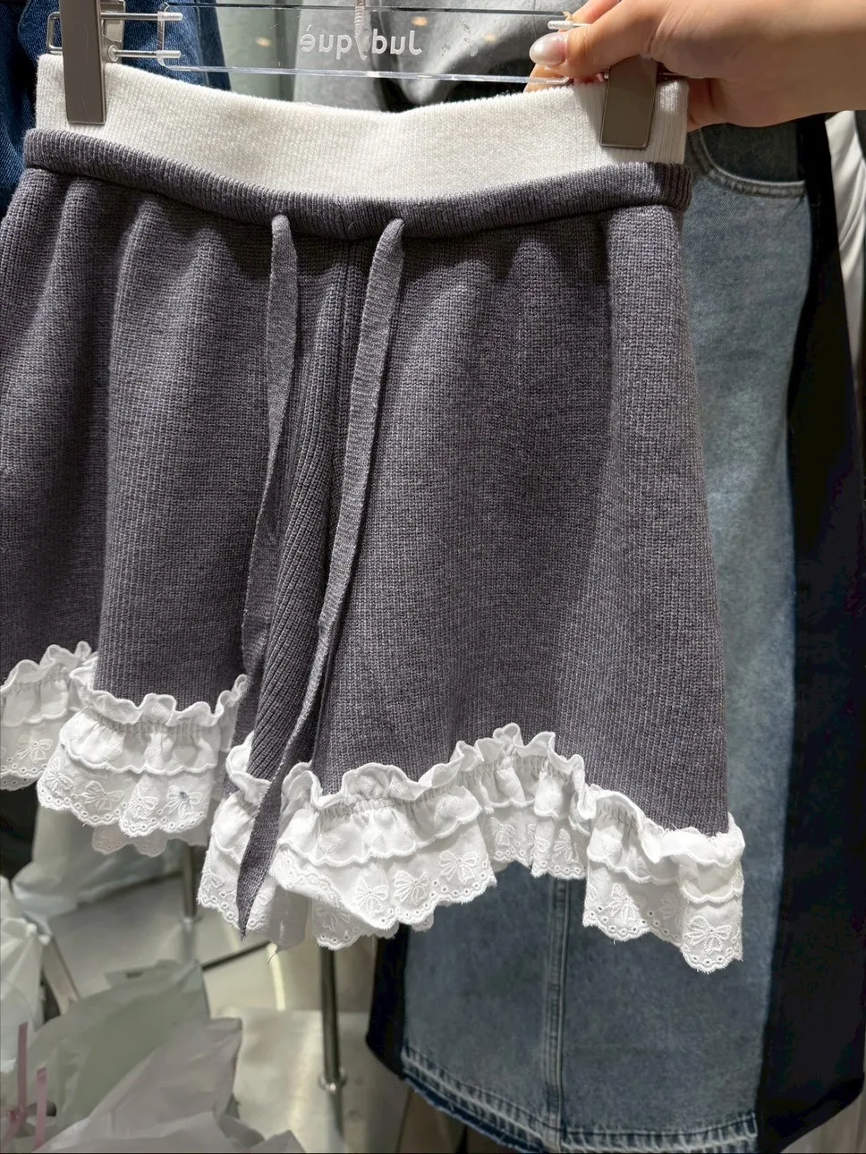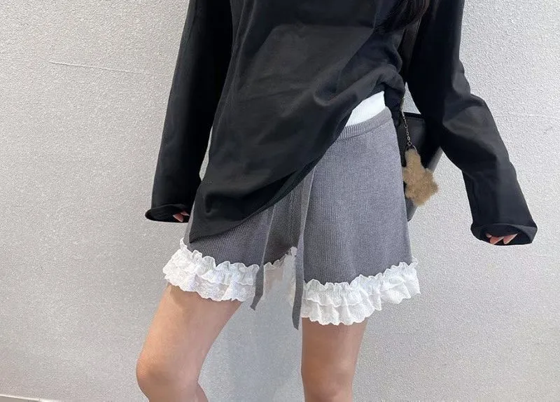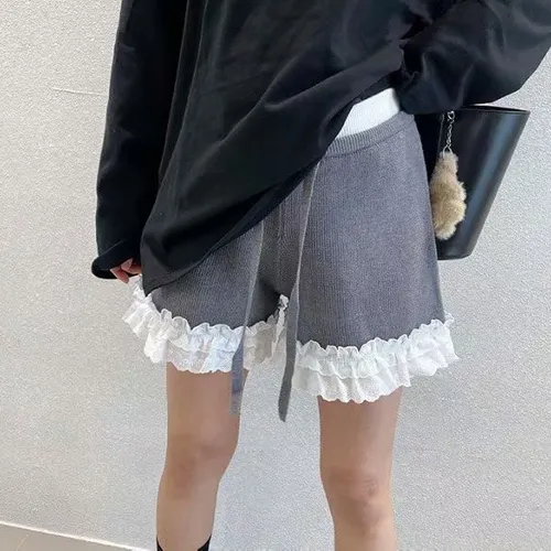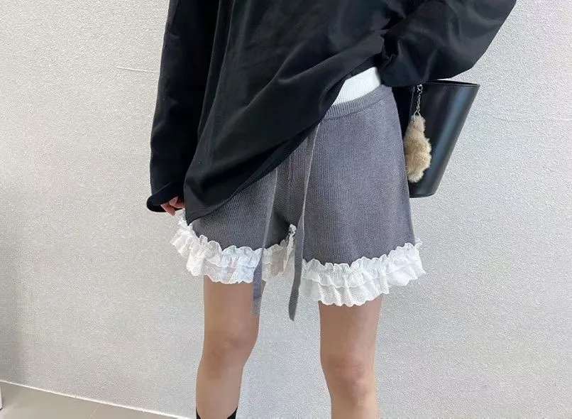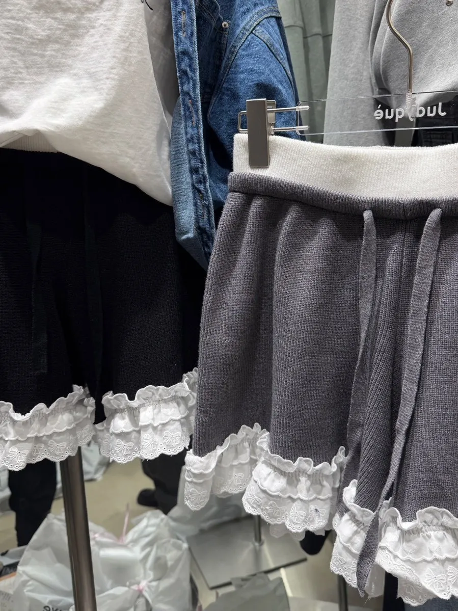 B1122 拼接蕾絲蝴蝶結針織褲