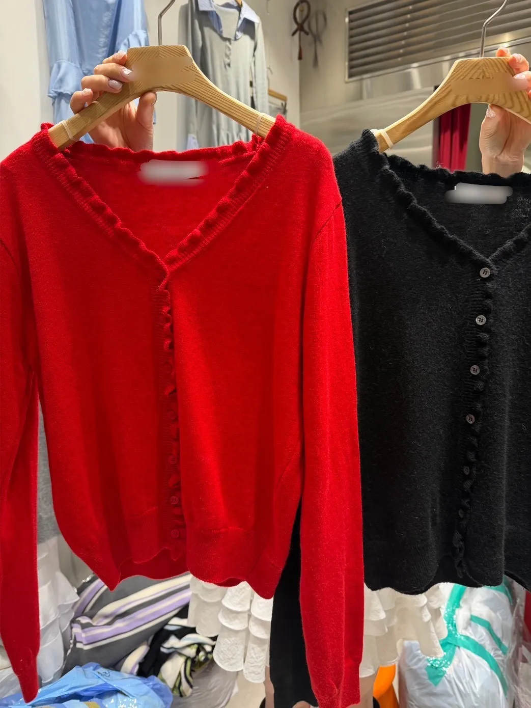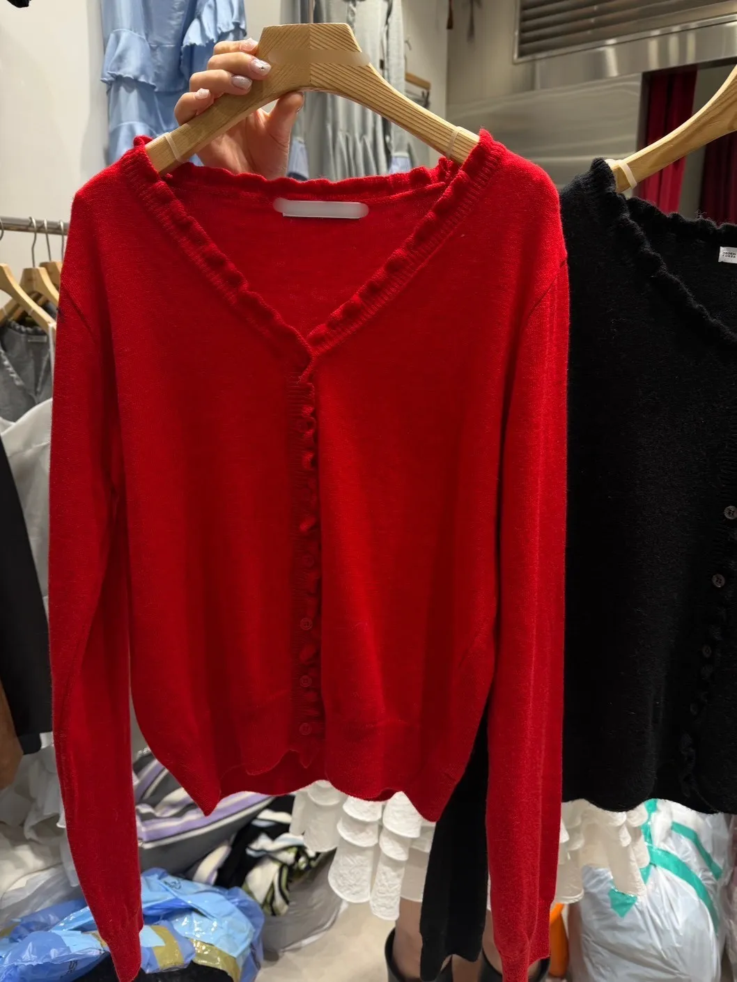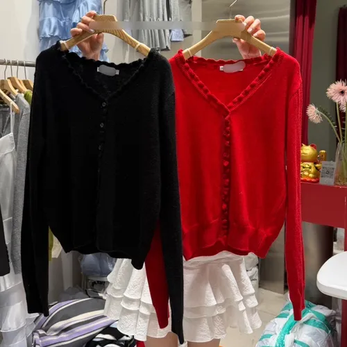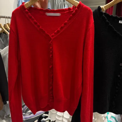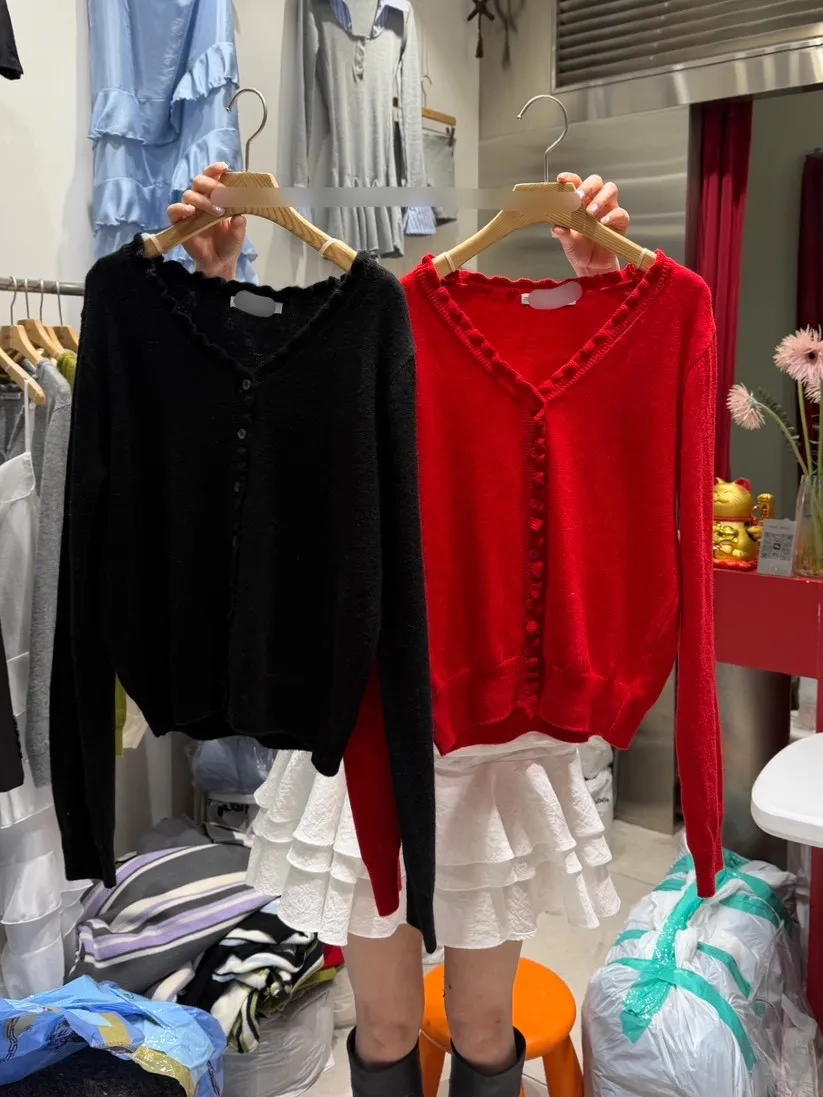 B1134 木耳滾邊排釦針織開襟小外套