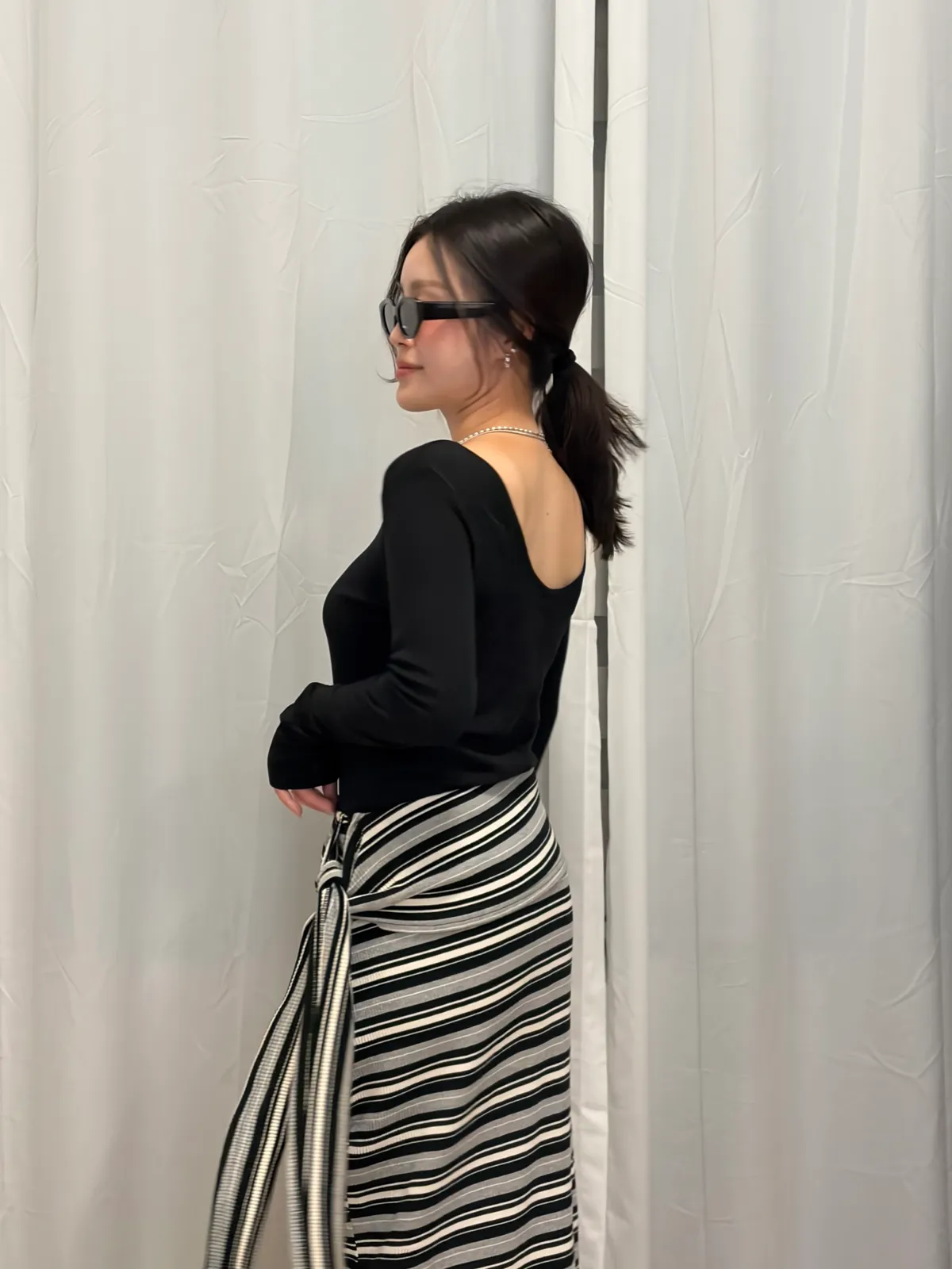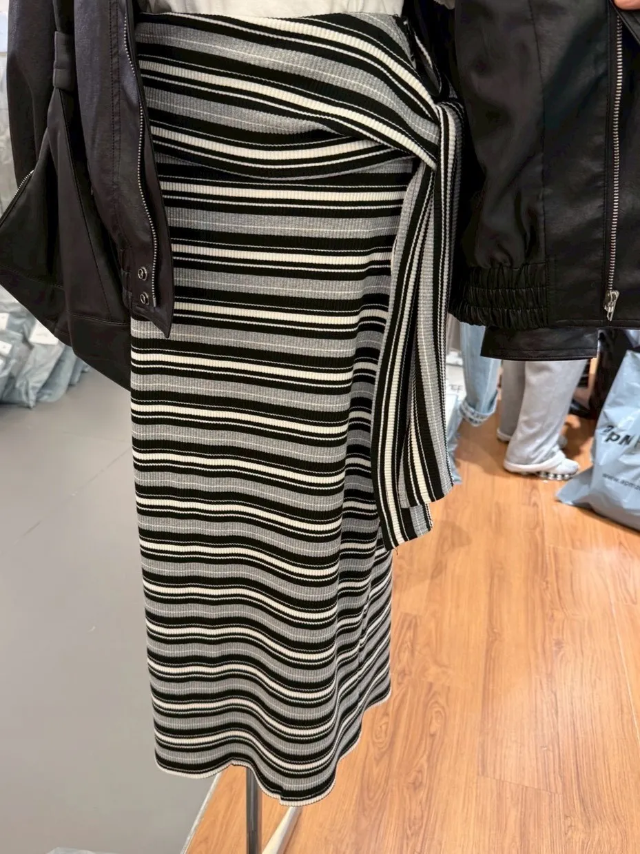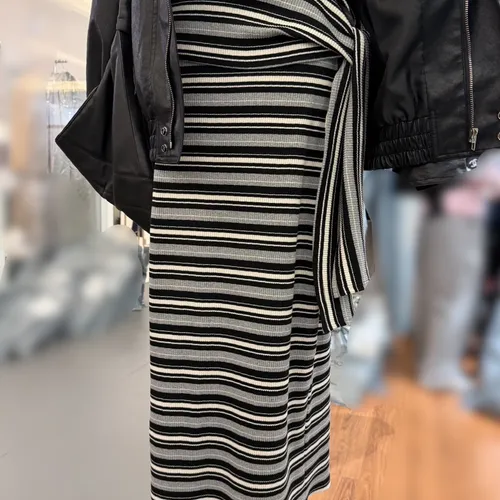 B3012 彈性條紋綁帶棉裙